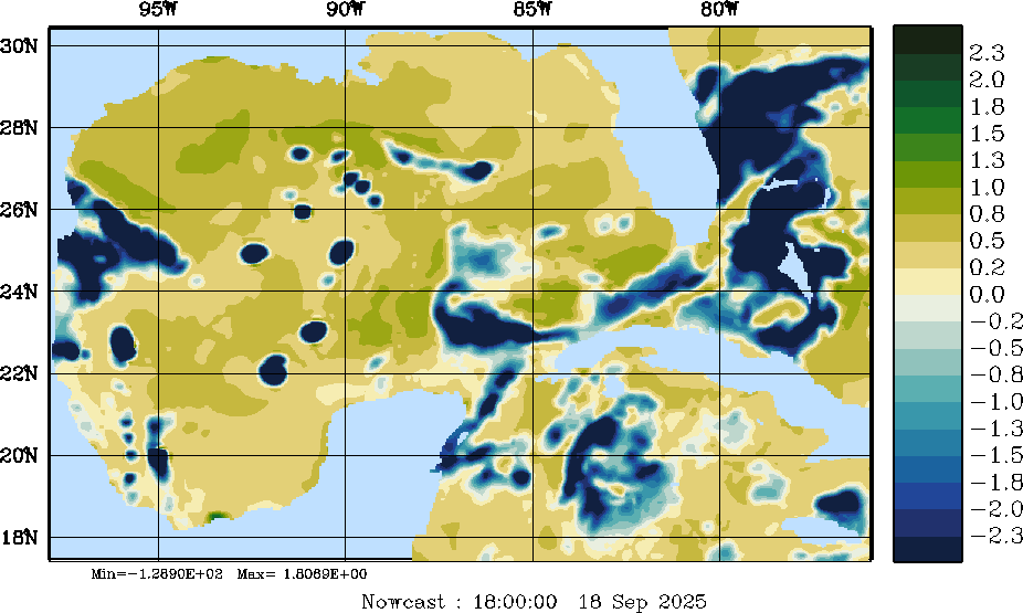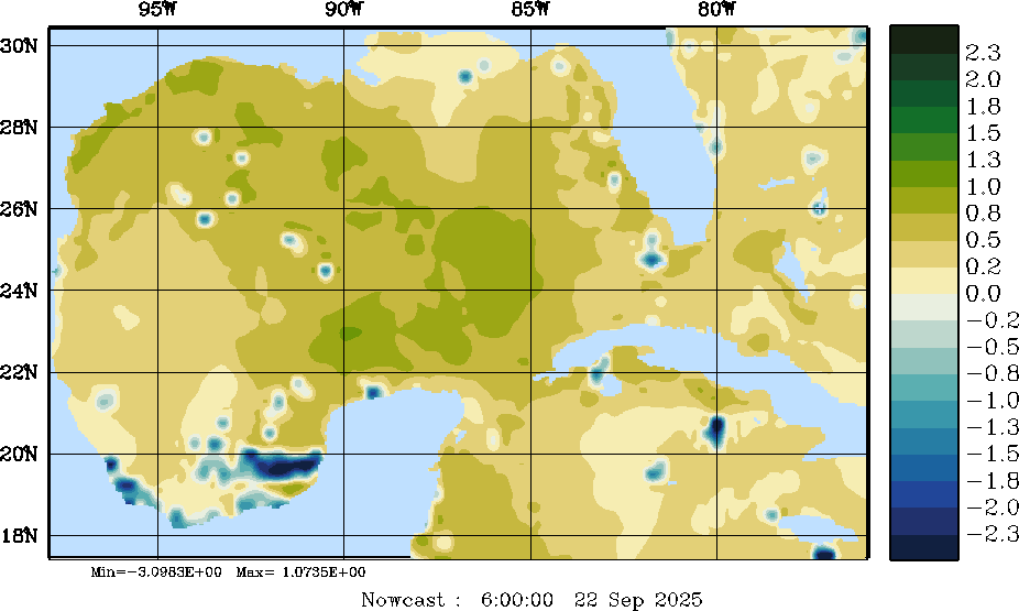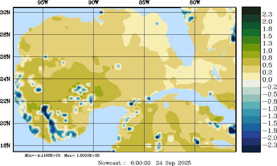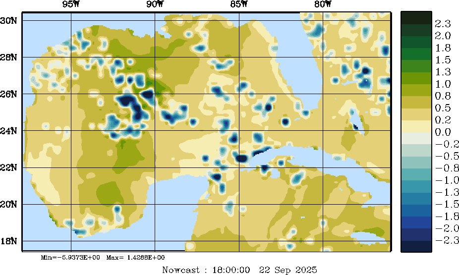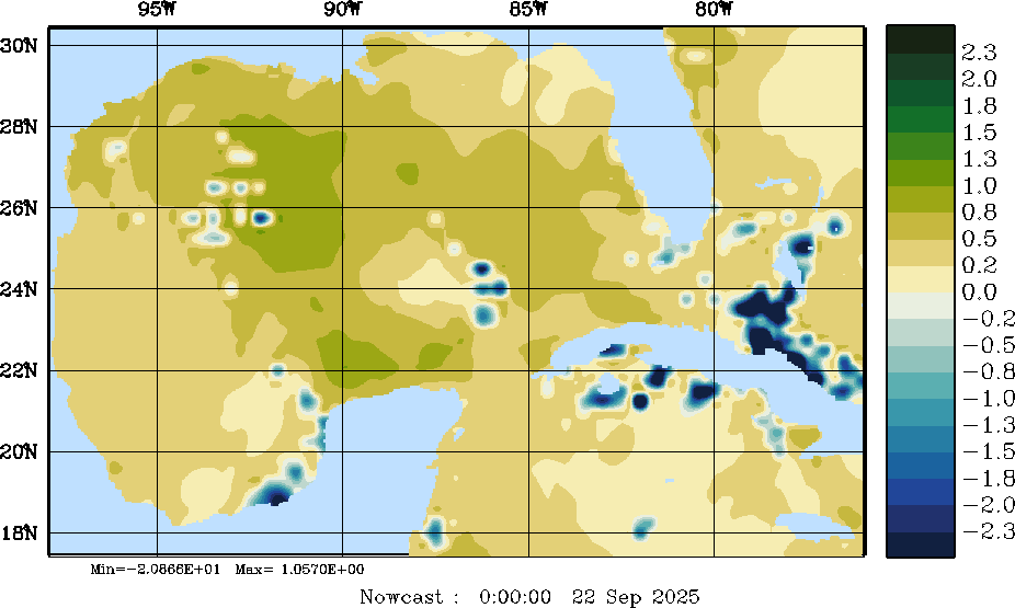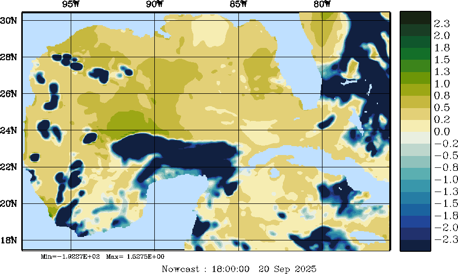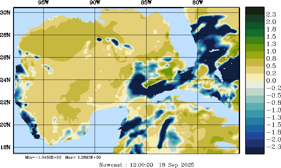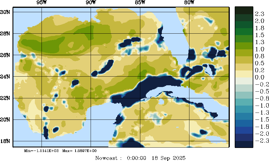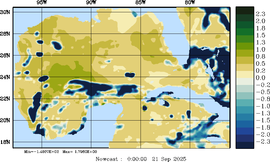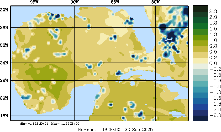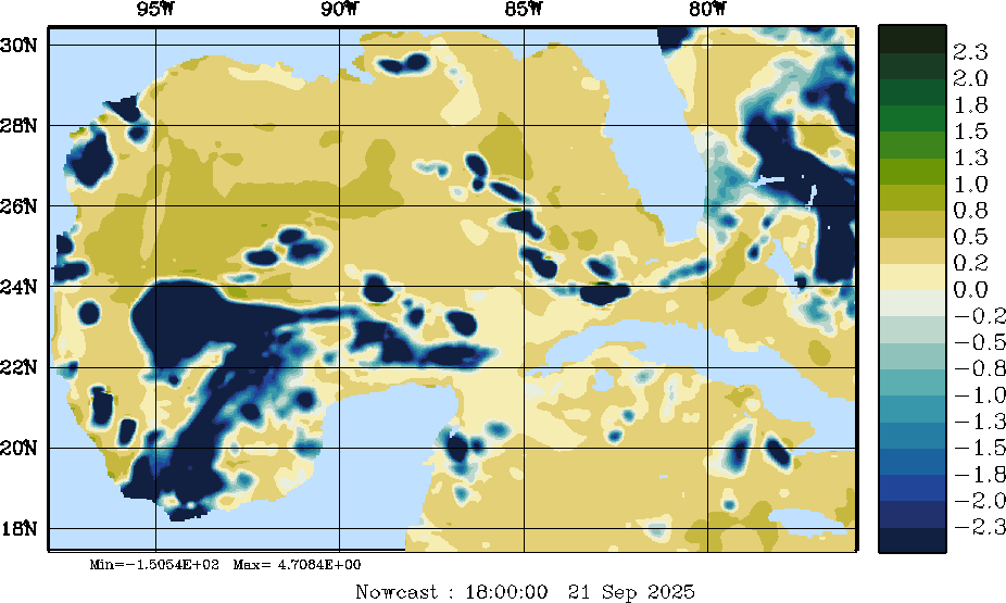 | E - P Snapshots (cm/day); processed by MSEAS from merged NCEP fields |