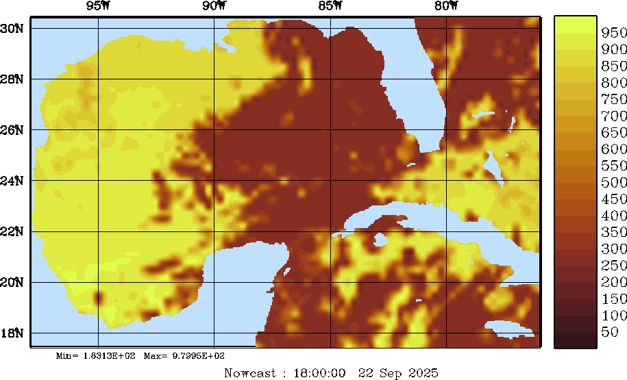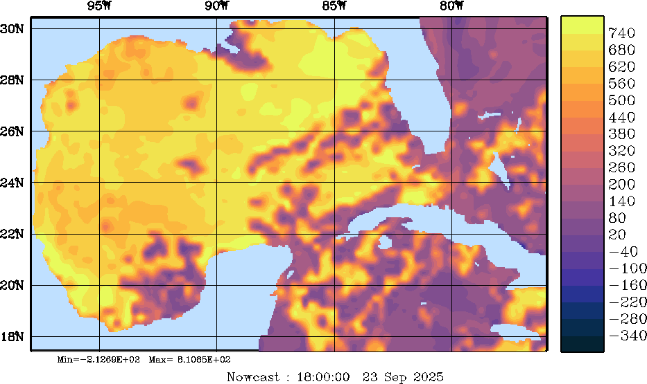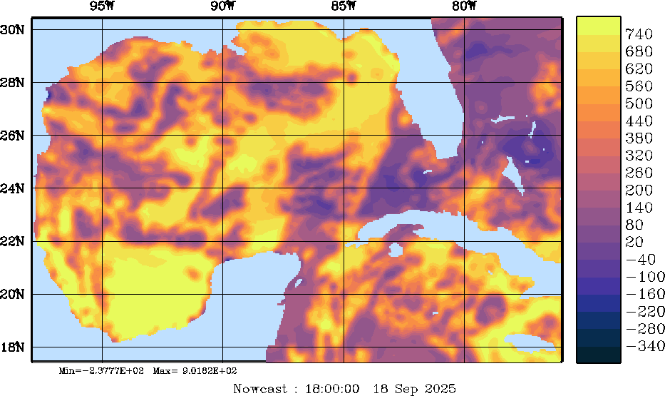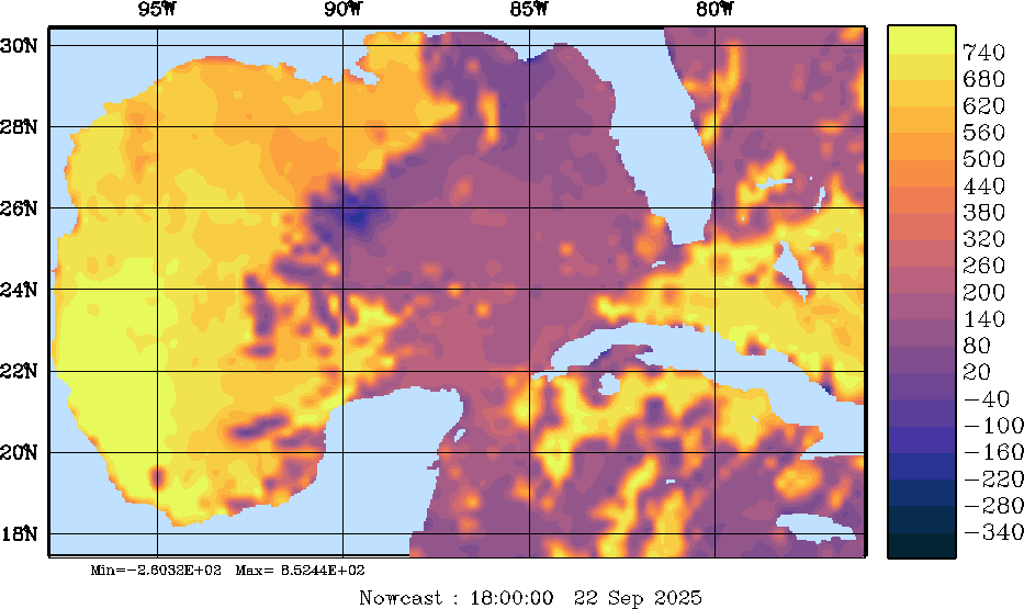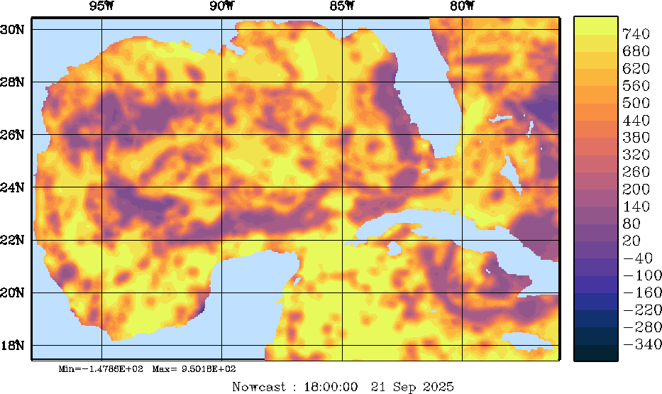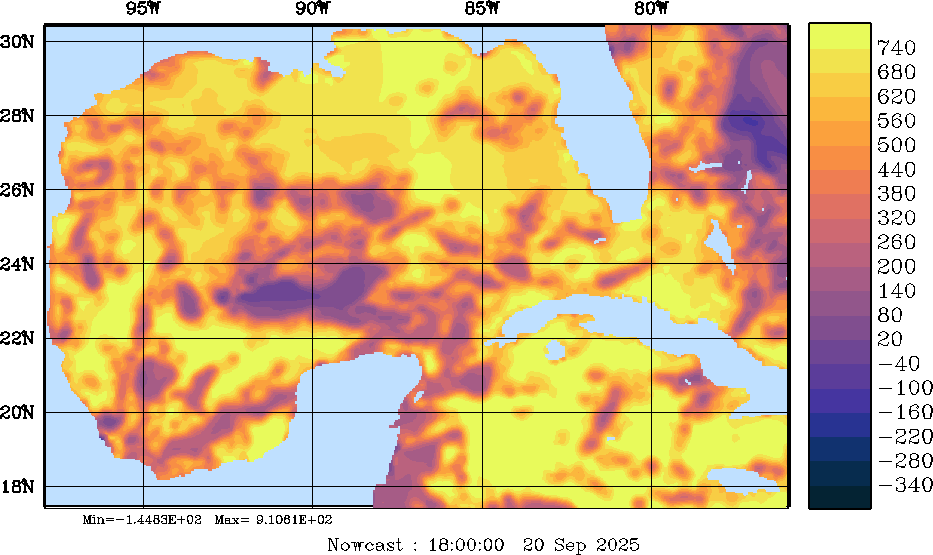 | SW Radiation Snapshots (W/m2); processed by MSEAS from merged NCEP fields |
