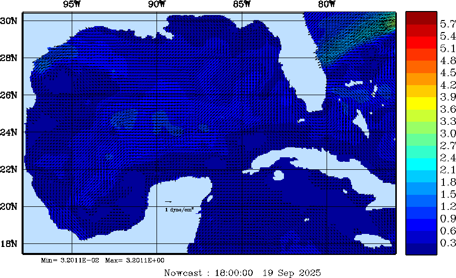 | Wind Stress Snapshots (dynes/cm2); processed by MSEAS from merged NCEP fields |