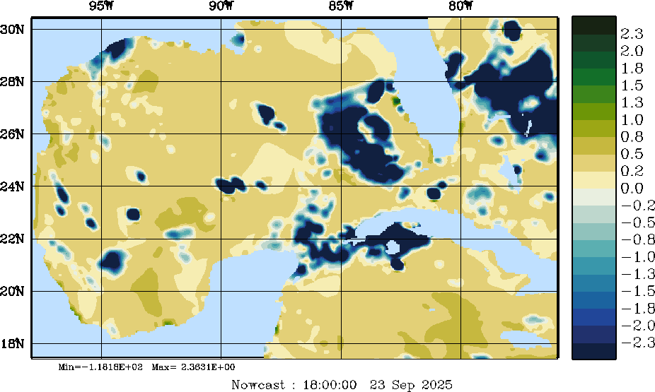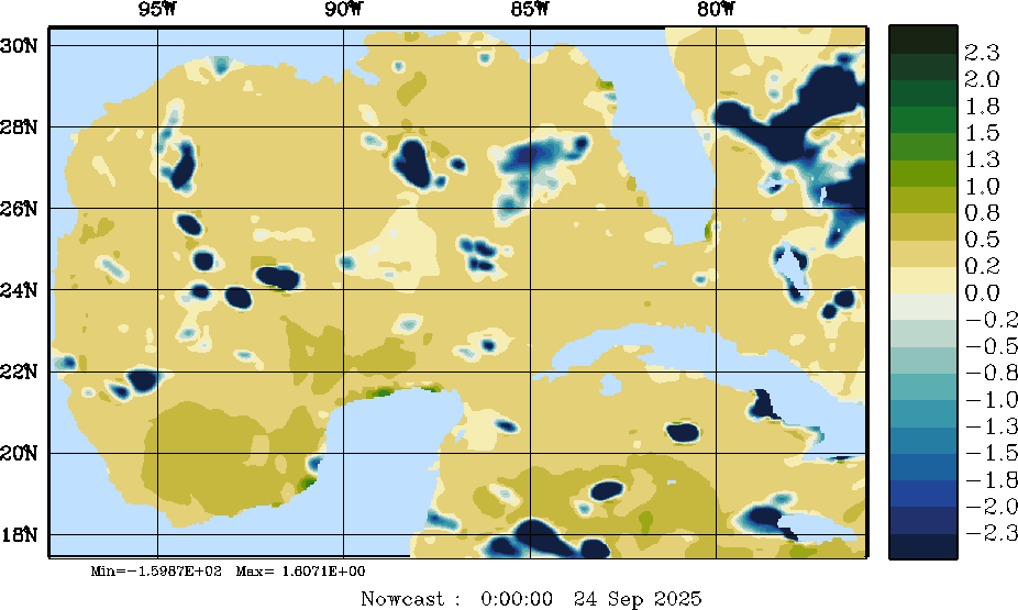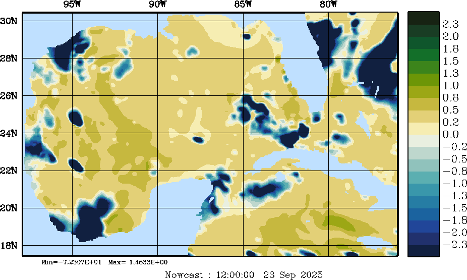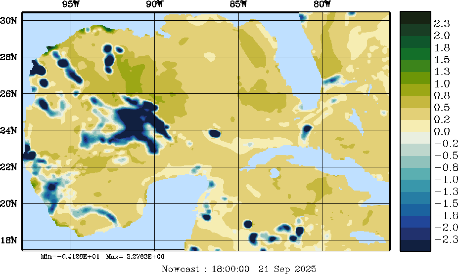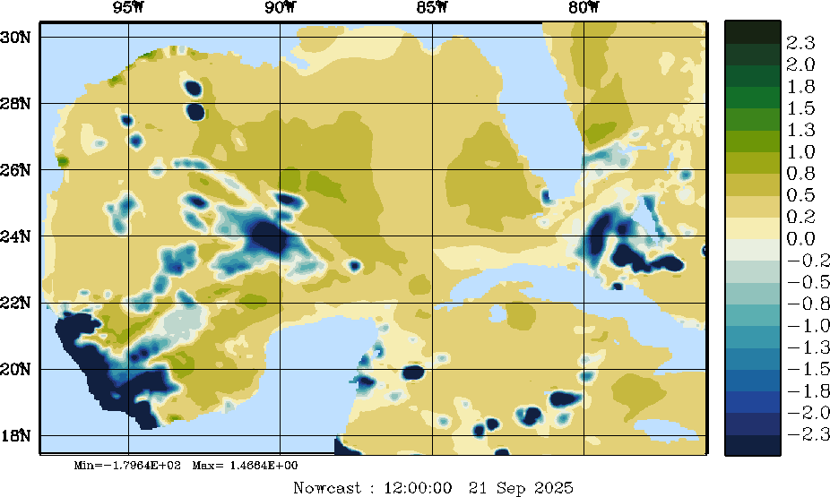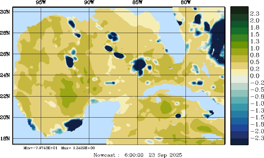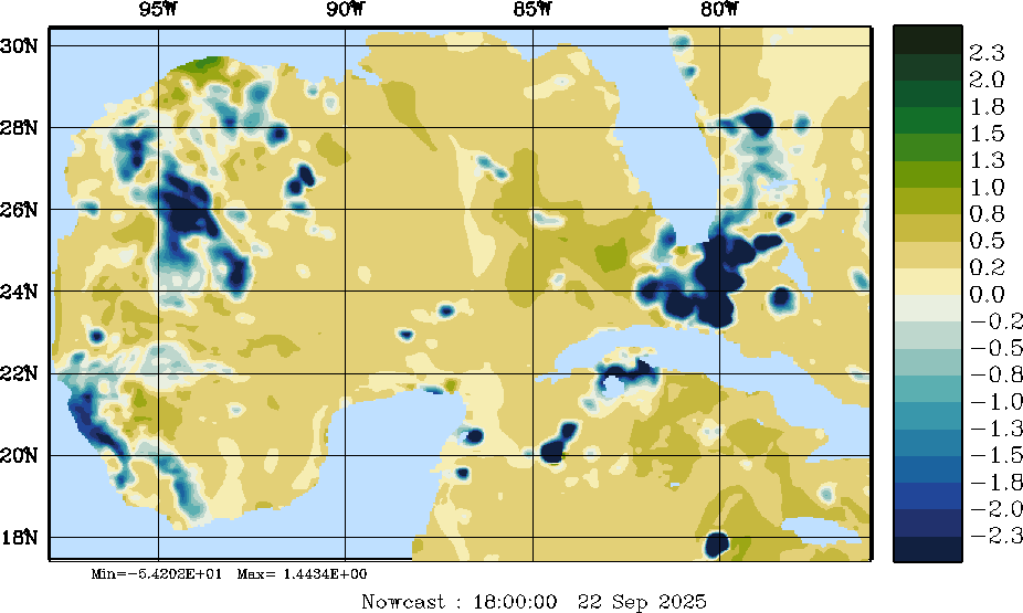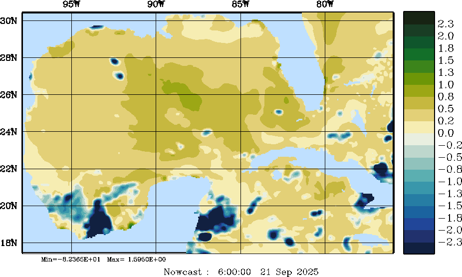 | E - P Snapshots (cm/day); processed by MSEAS from merged NCEP fields |