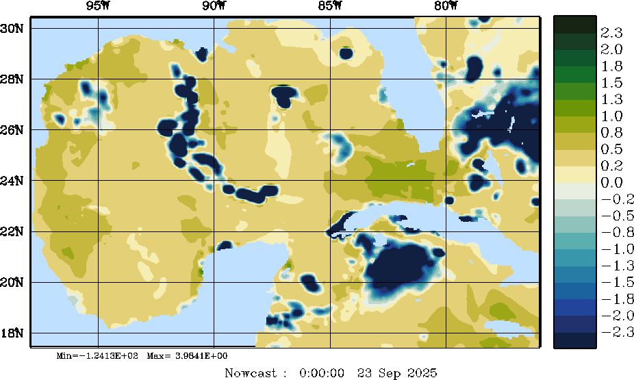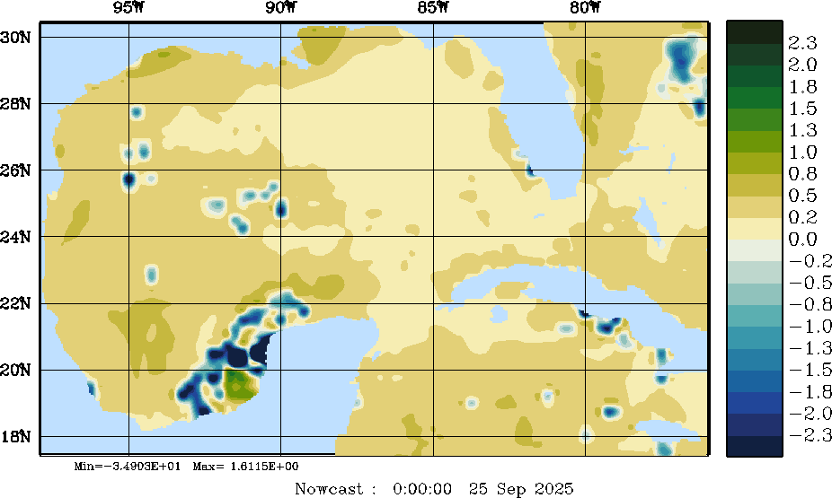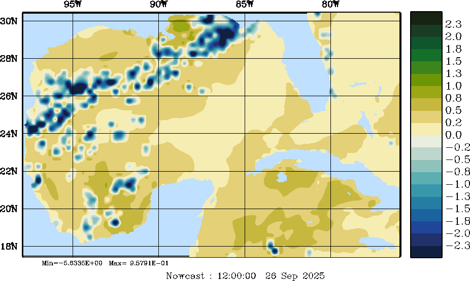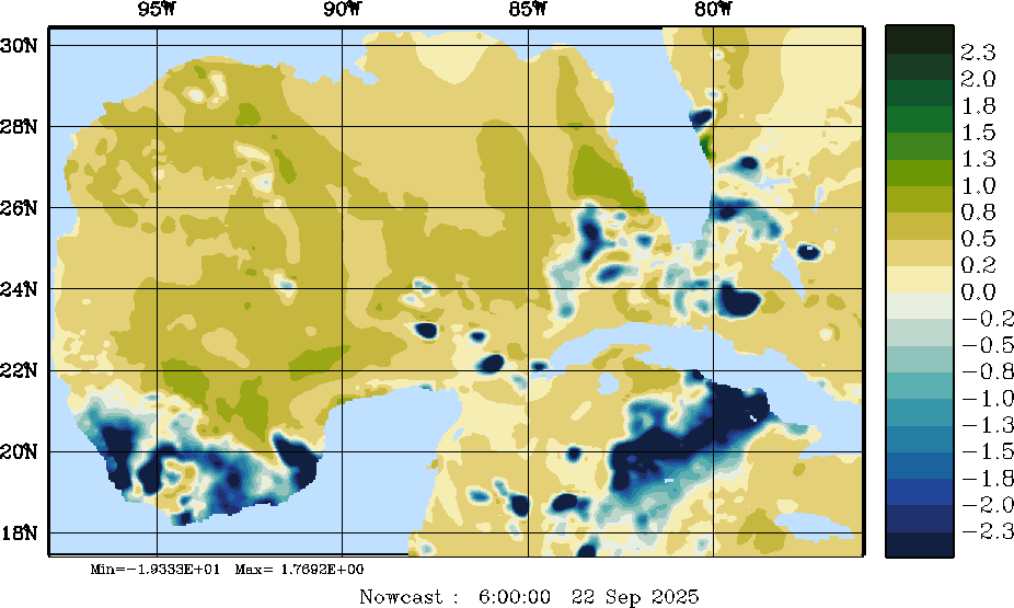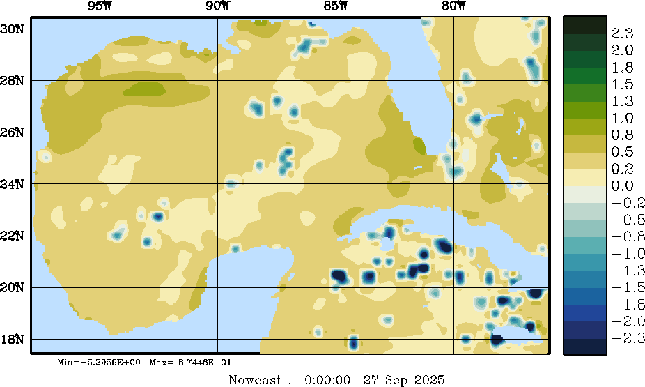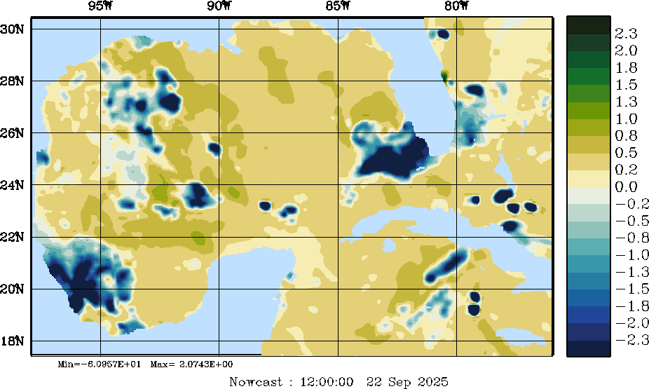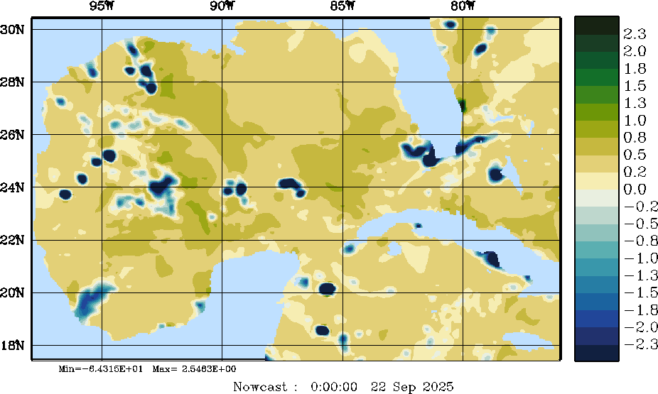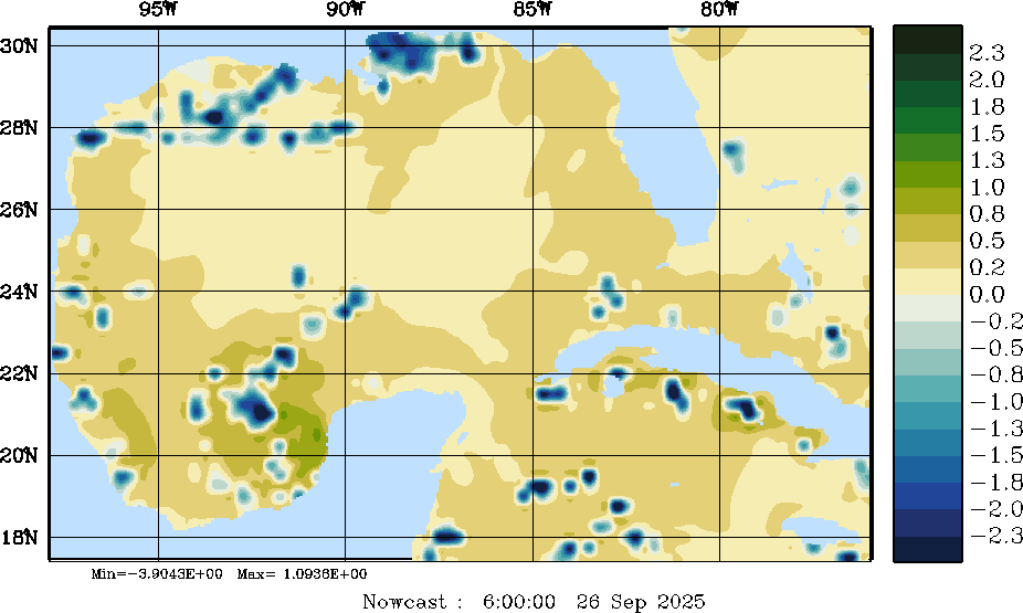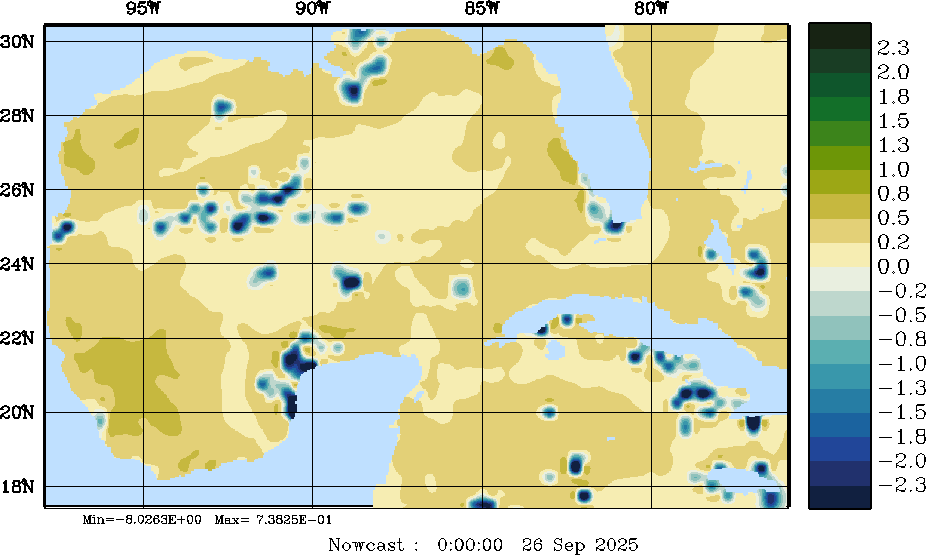 | E - P Snapshots (cm/day); processed by MSEAS from merged NCEP fields |