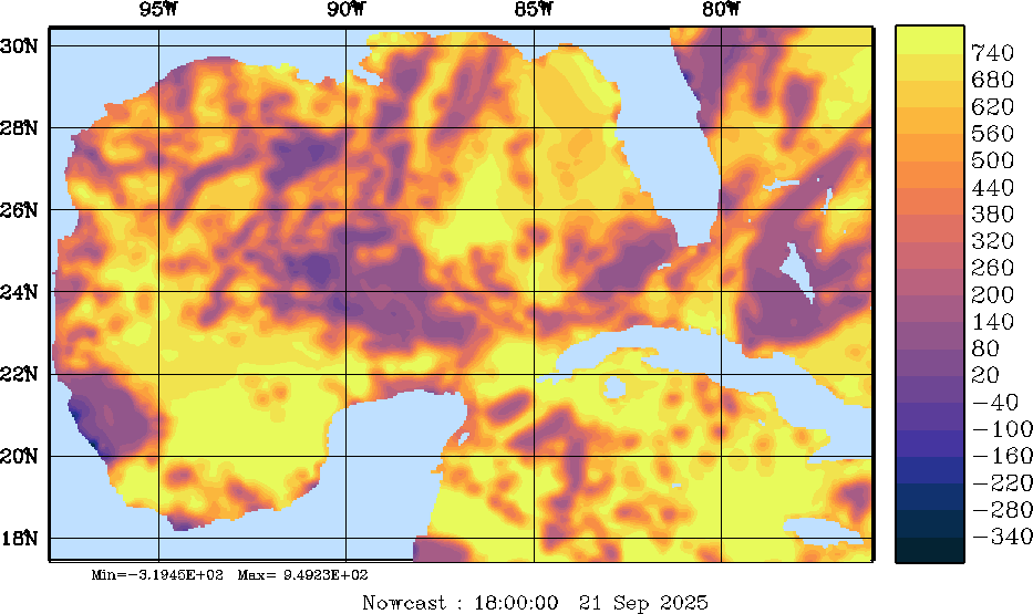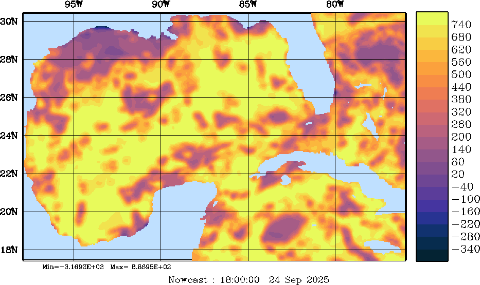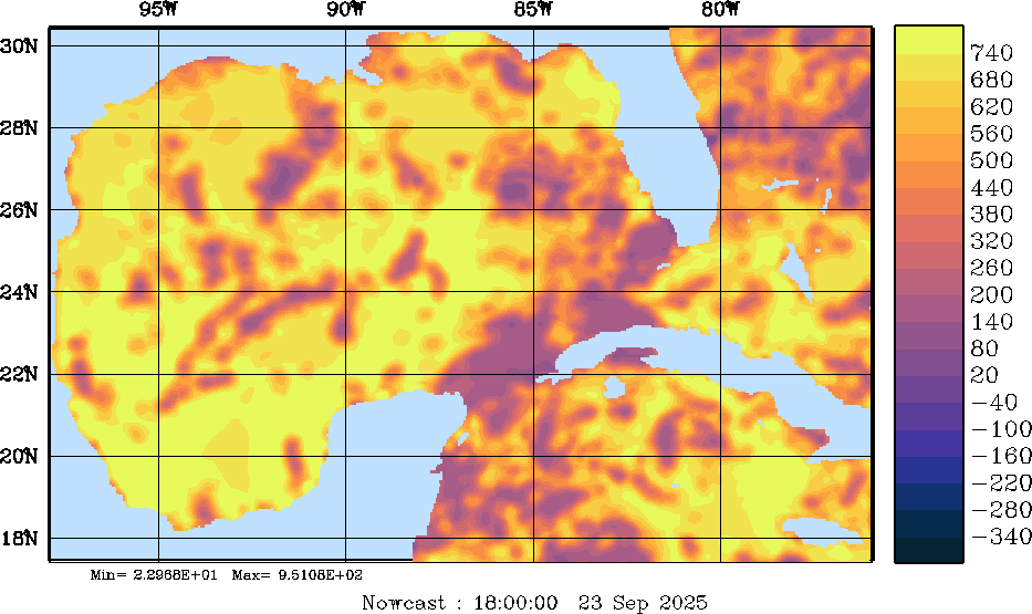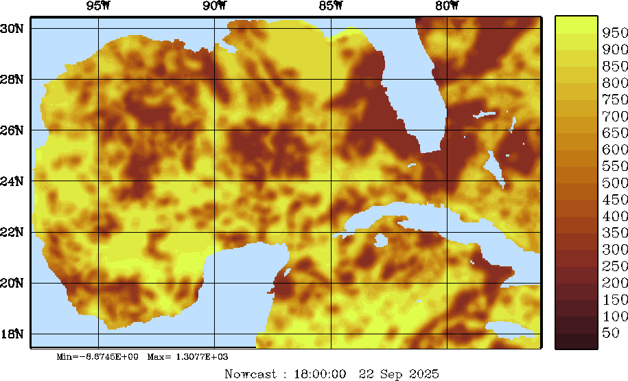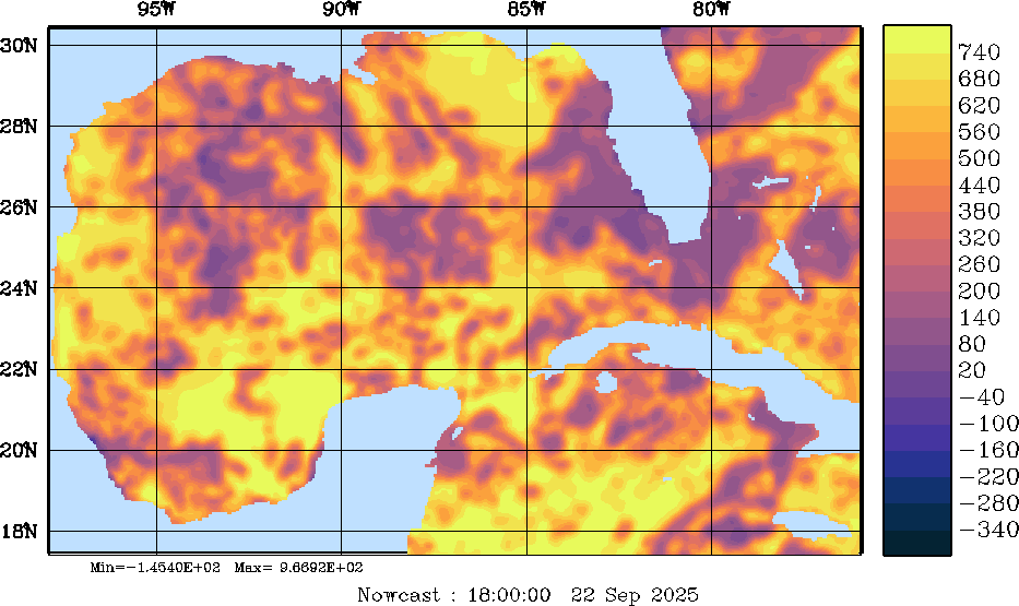 | SW Radiation Snapshots (W/m2); processed by MSEAS from merged NCEP fields |