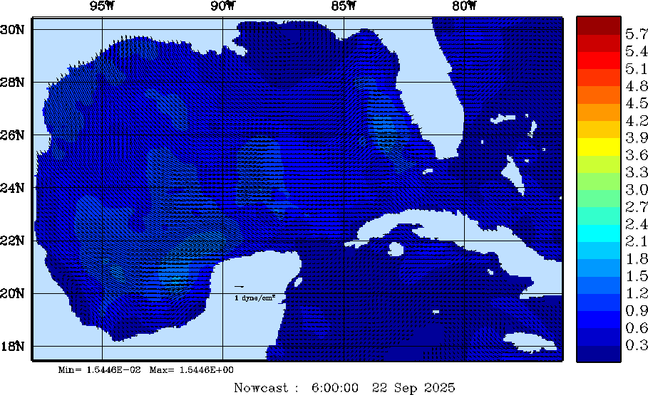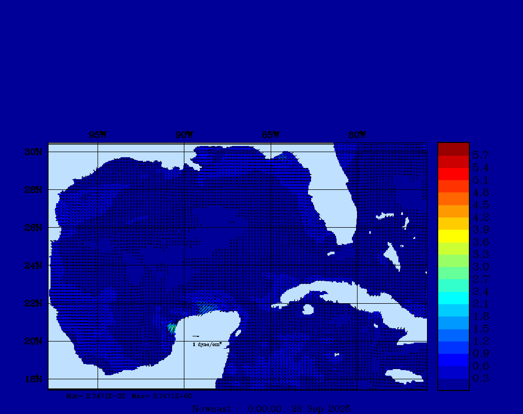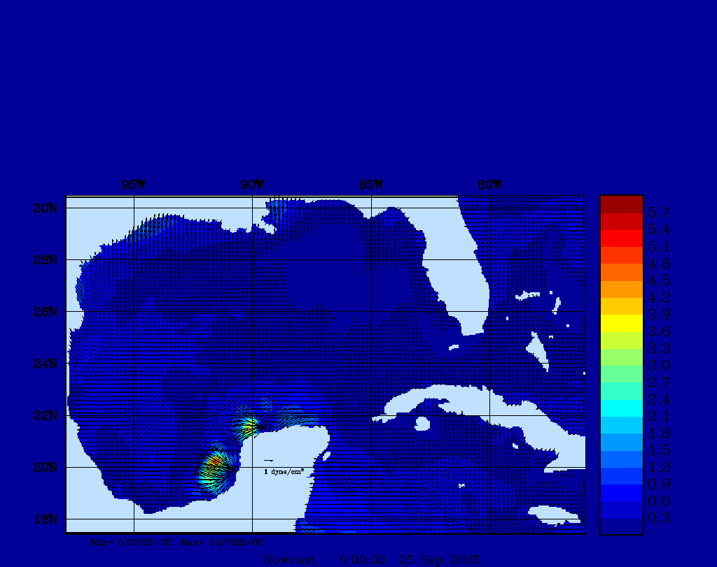 | Wind Stress Snapshots (dynes/cm2); processed by MSEAS from merged NCEP fields |