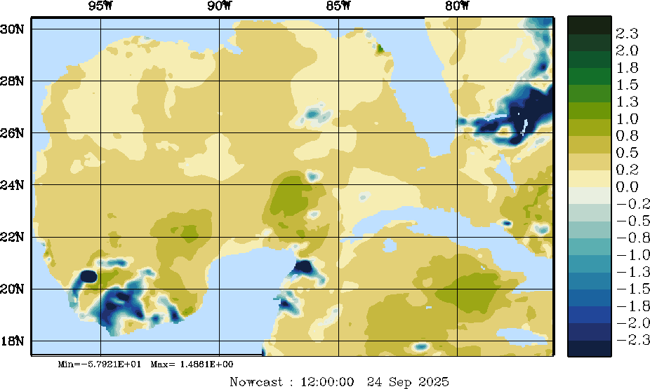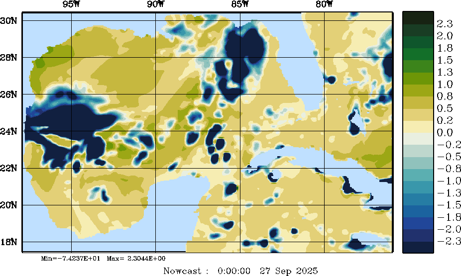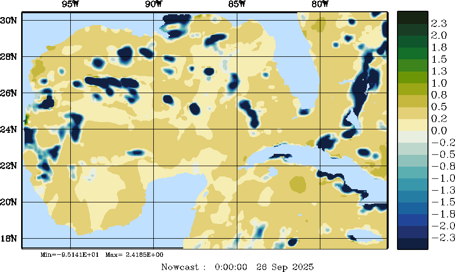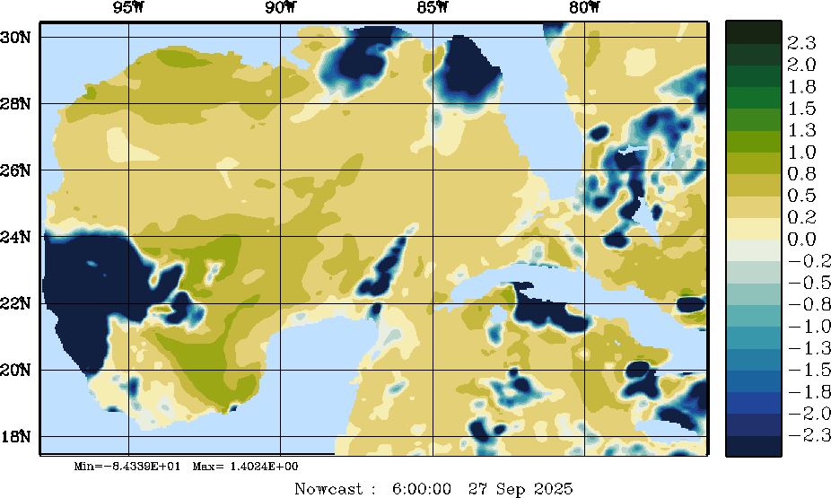 | E - P Snapshots (cm/day); processed by MSEAS from merged NCEP fields |