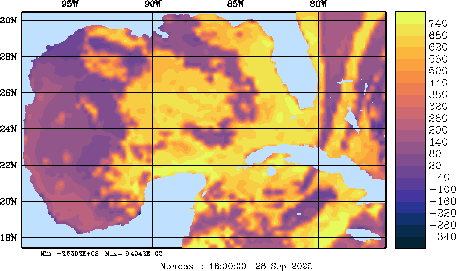 | SW Radiation Snapshots (W/m2); processed by MSEAS from merged NCEP fields |