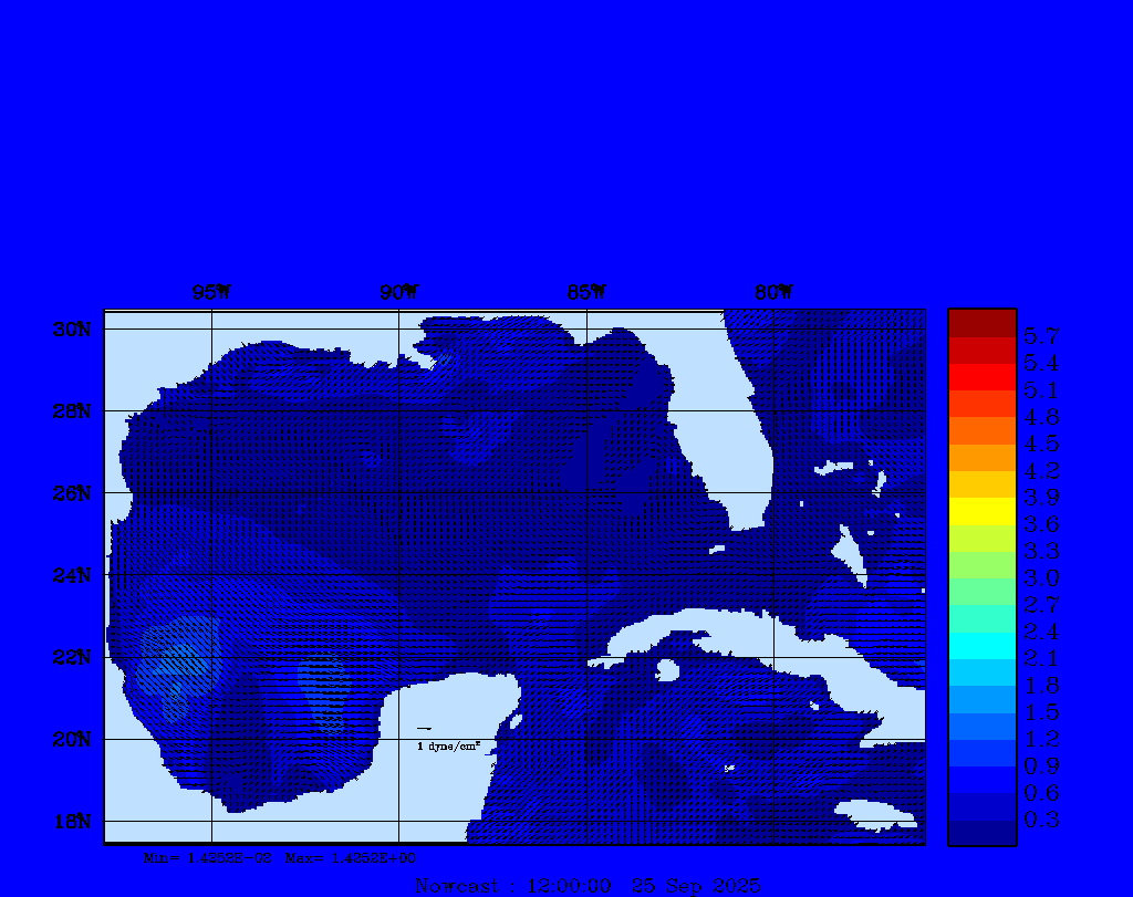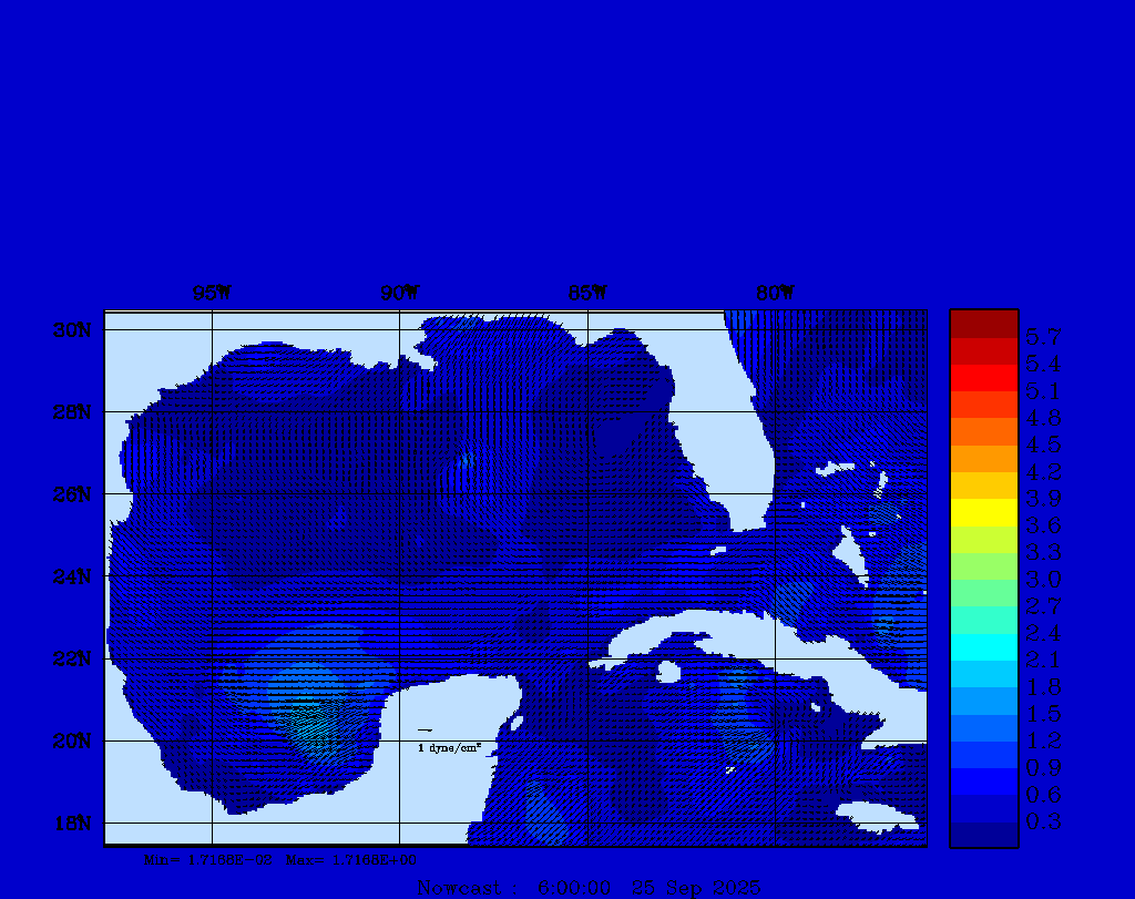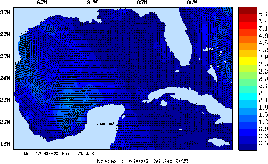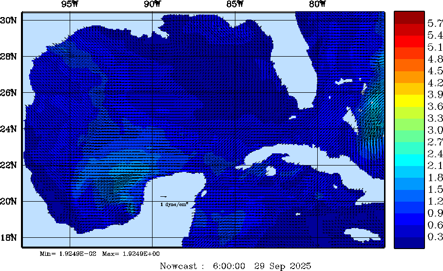 | Wind Stress Snapshots (dynes/cm2); processed by MSEAS from merged NCEP fields |