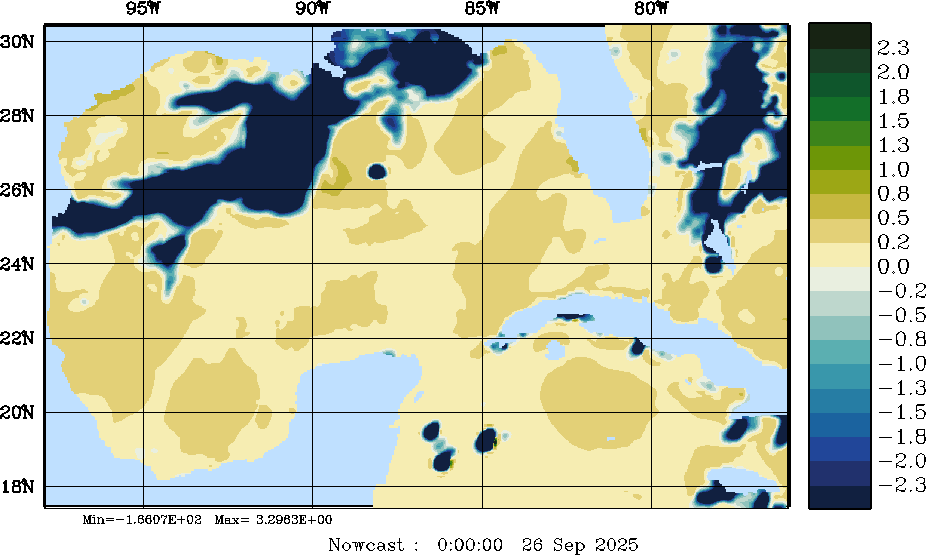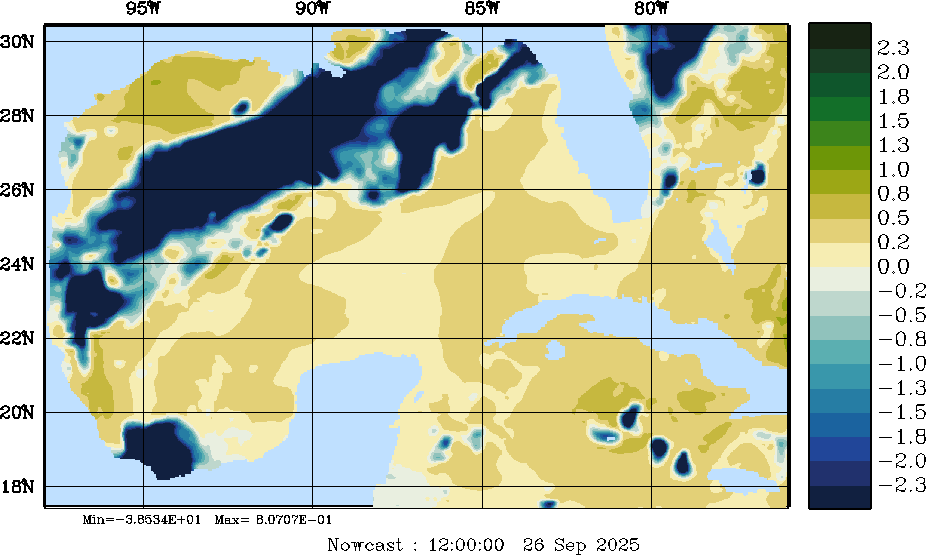 | E - P Snapshots (cm/day); processed by MSEAS from merged NCEP fields |