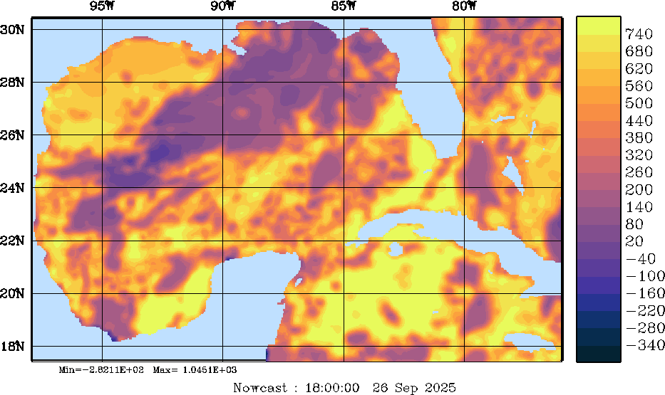 | SW Radiation Snapshots (W/m2); processed by MSEAS from merged NCEP fields |