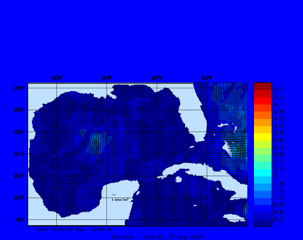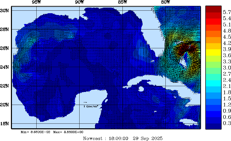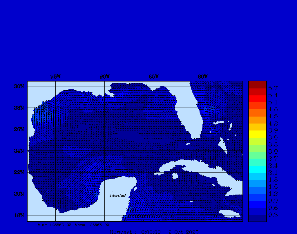 | Wind Stress Snapshots (dynes/cm2); processed by MSEAS from merged NCEP fields |