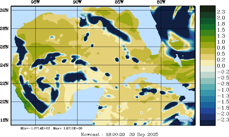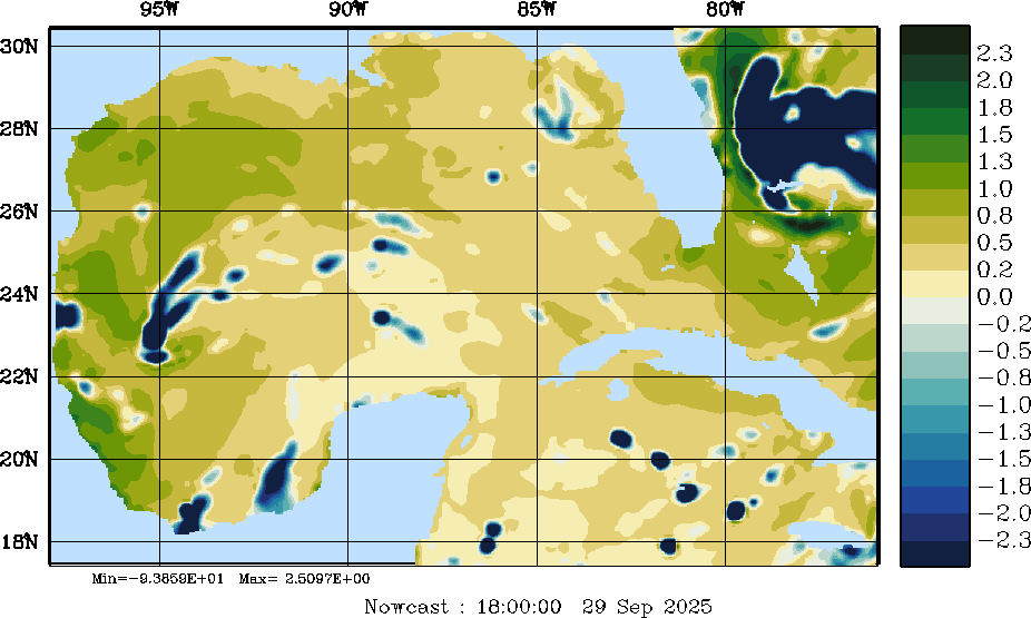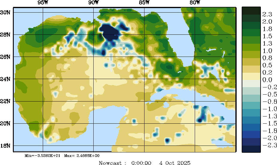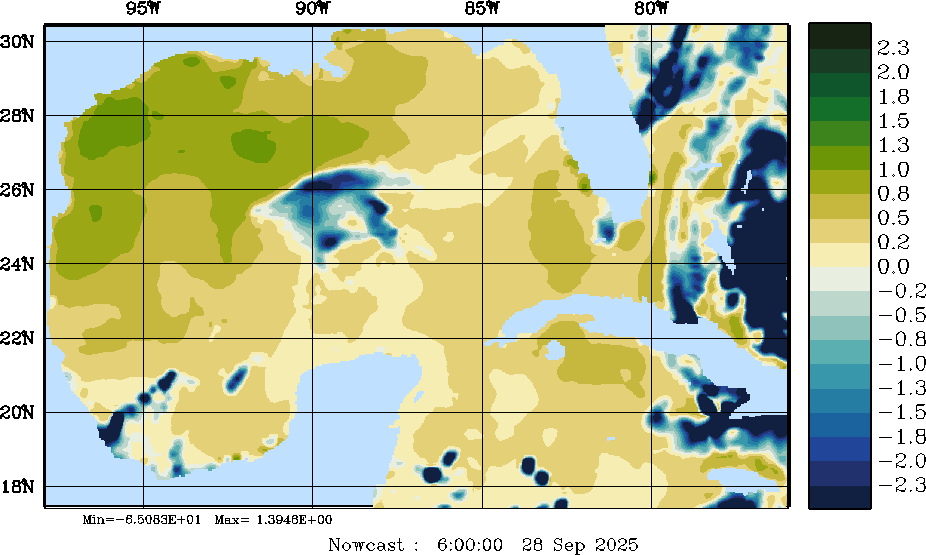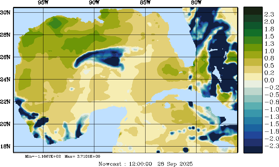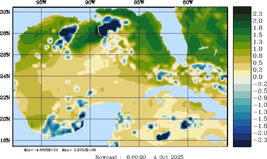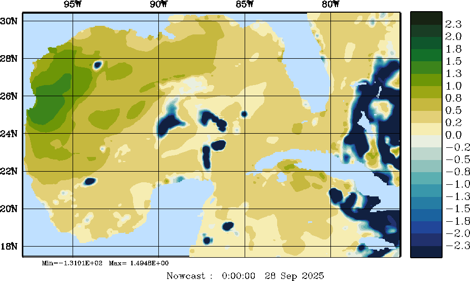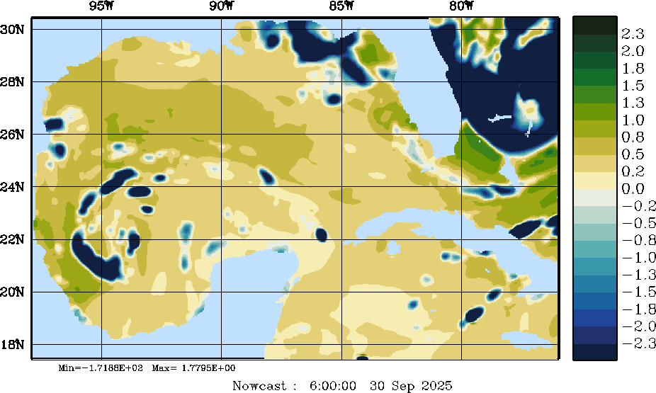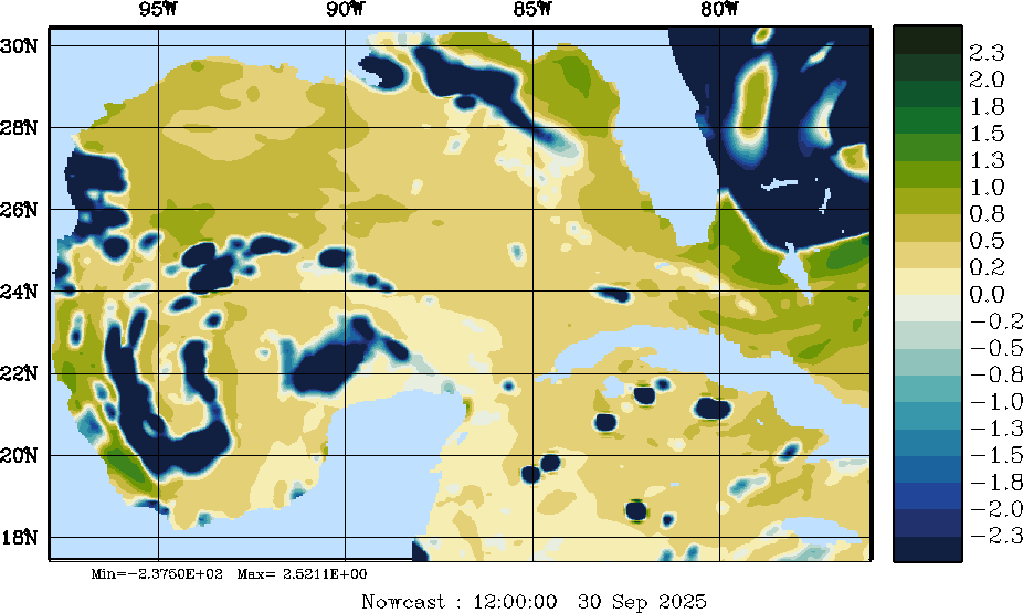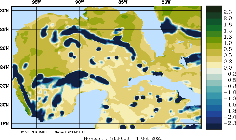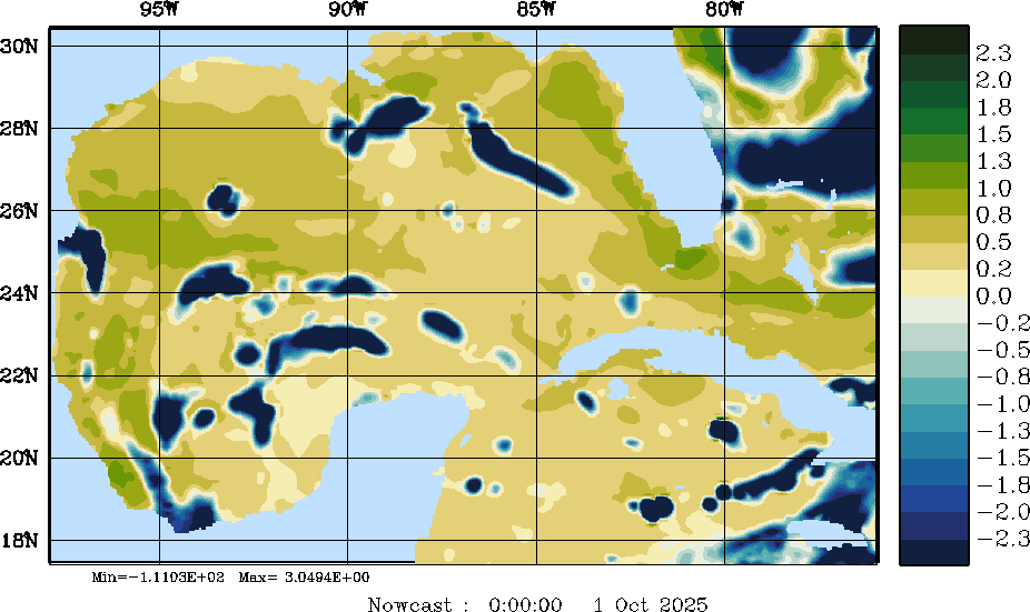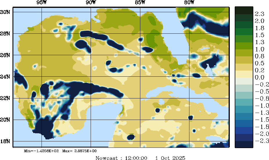 E - P Snapshots (cm/day); processed by MSEAS from merged NCEP fields |