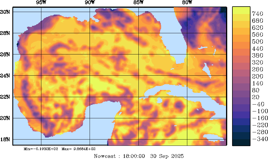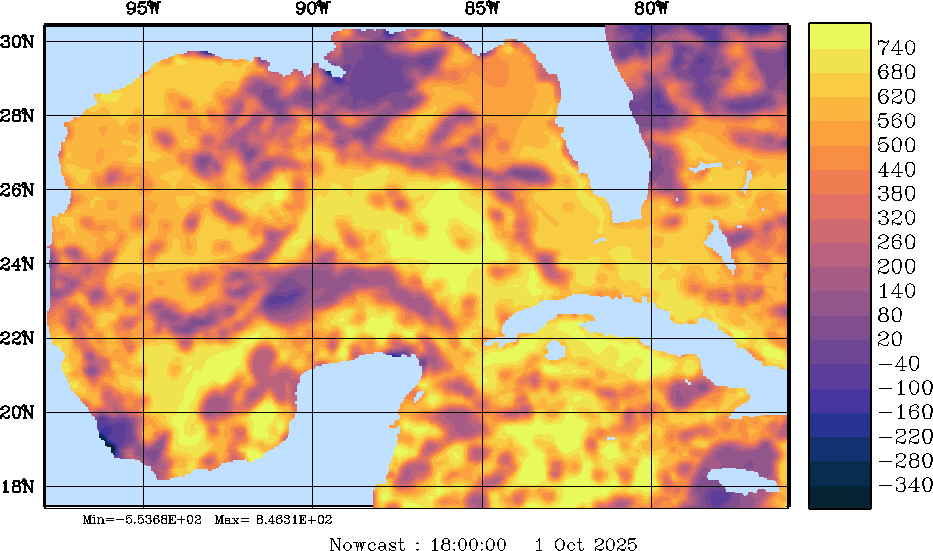 Net Heat Flux Snapshots (W/m2); processed by MSEAS from merged NCEP fields |