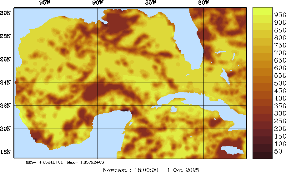 SW Radiation Snapshots (W/m2); processed by MSEAS from merged NCEP fields |