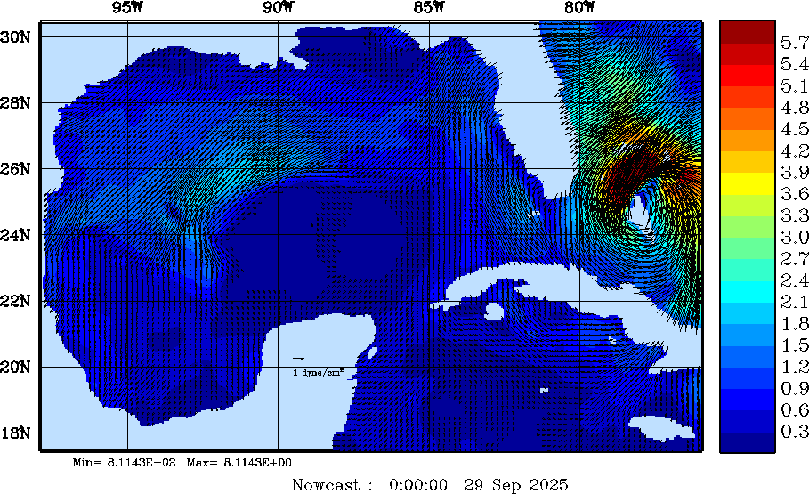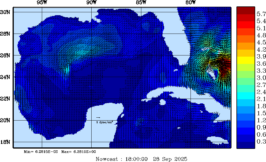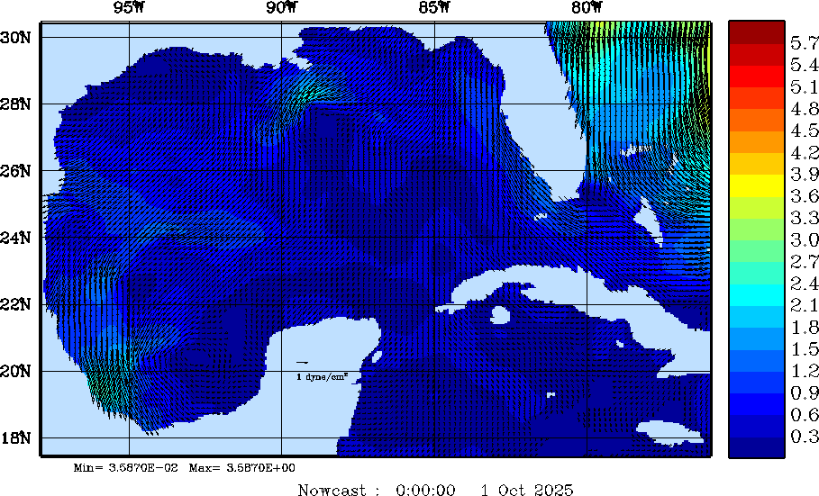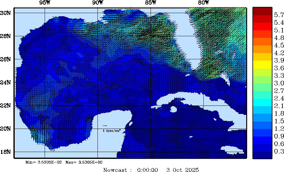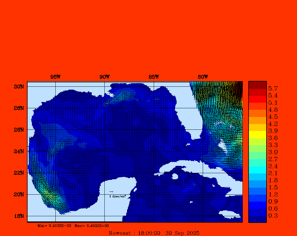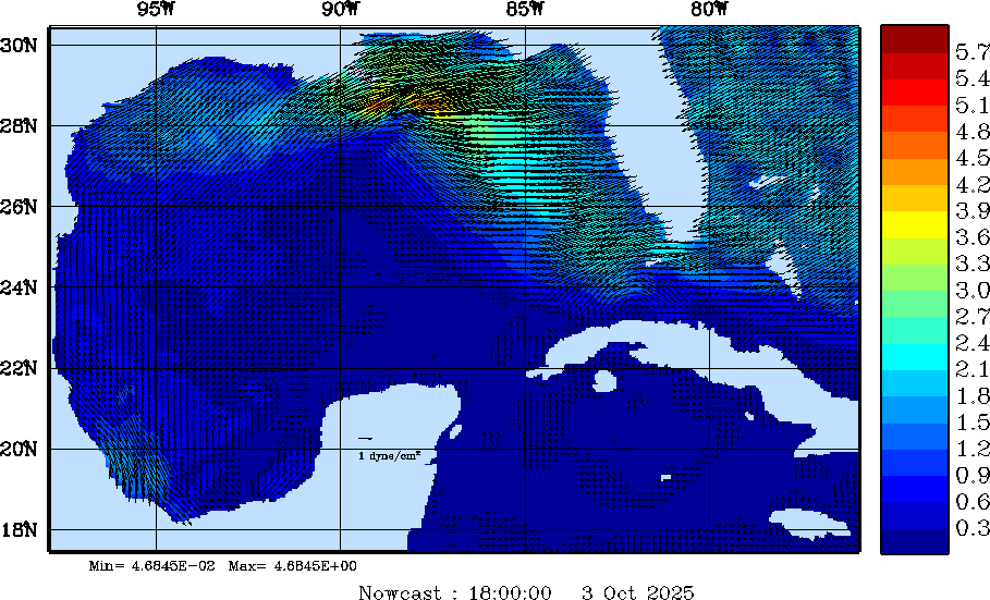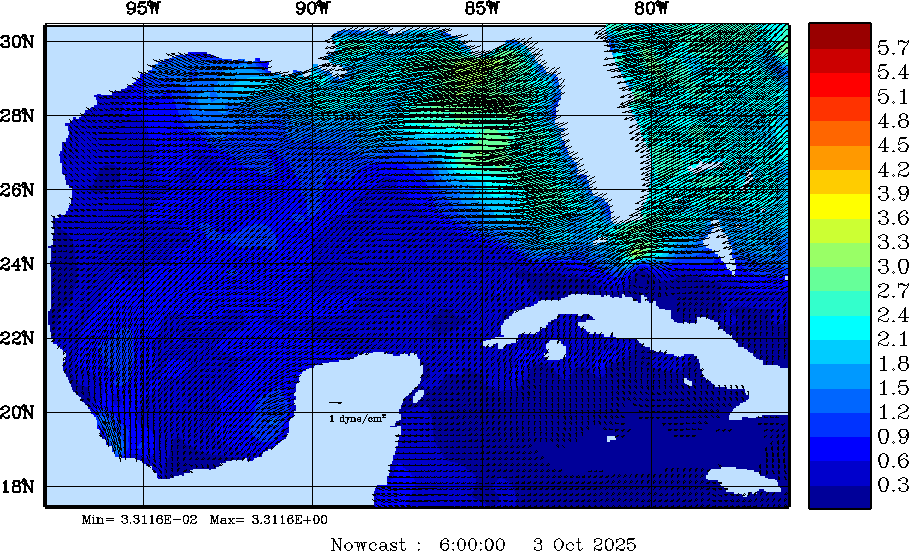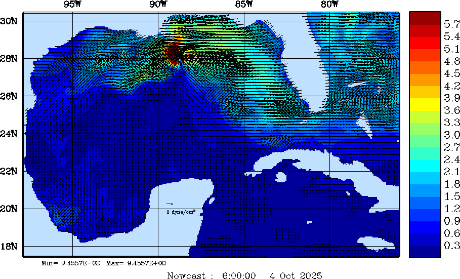 Wind Stress Snapshots (dynes/cm2); processed by MSEAS from merged NCEP fields |