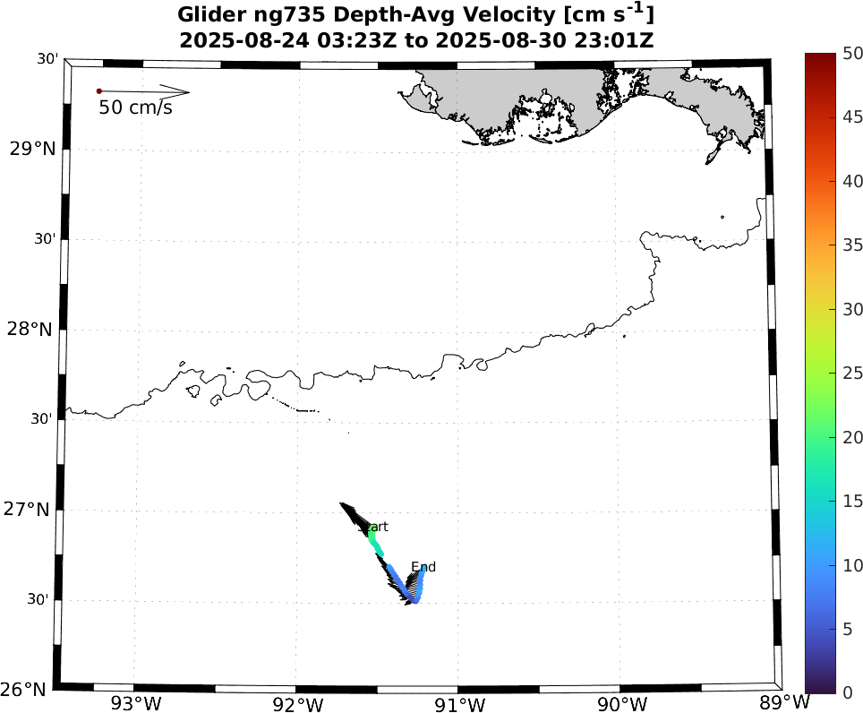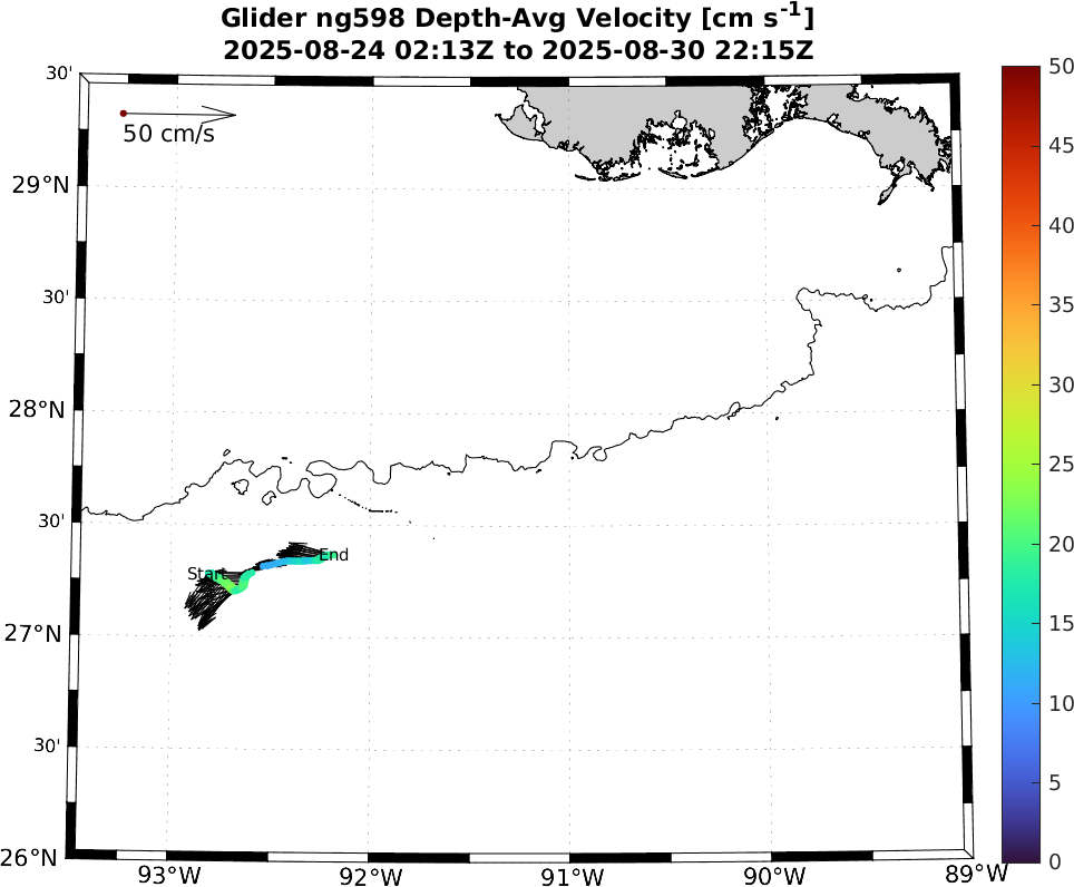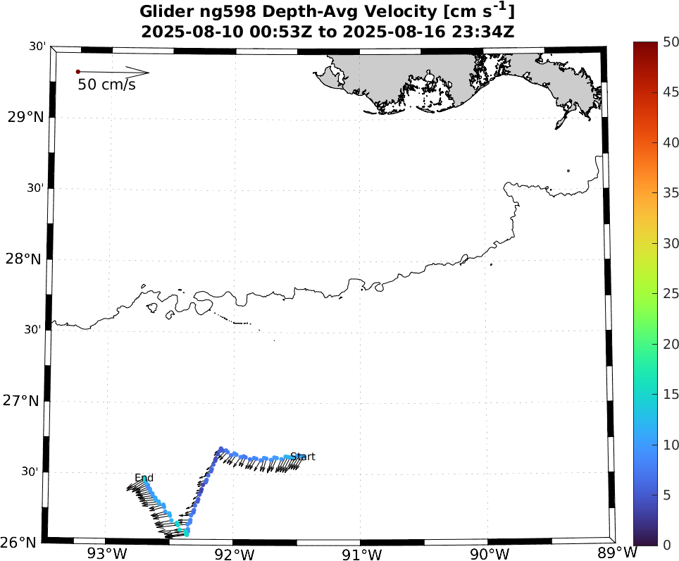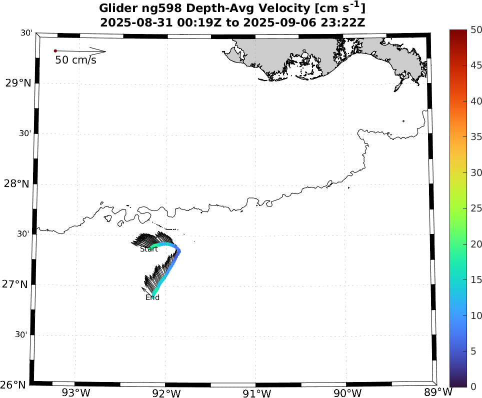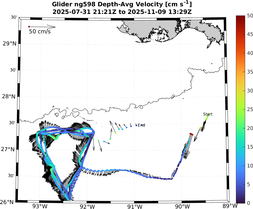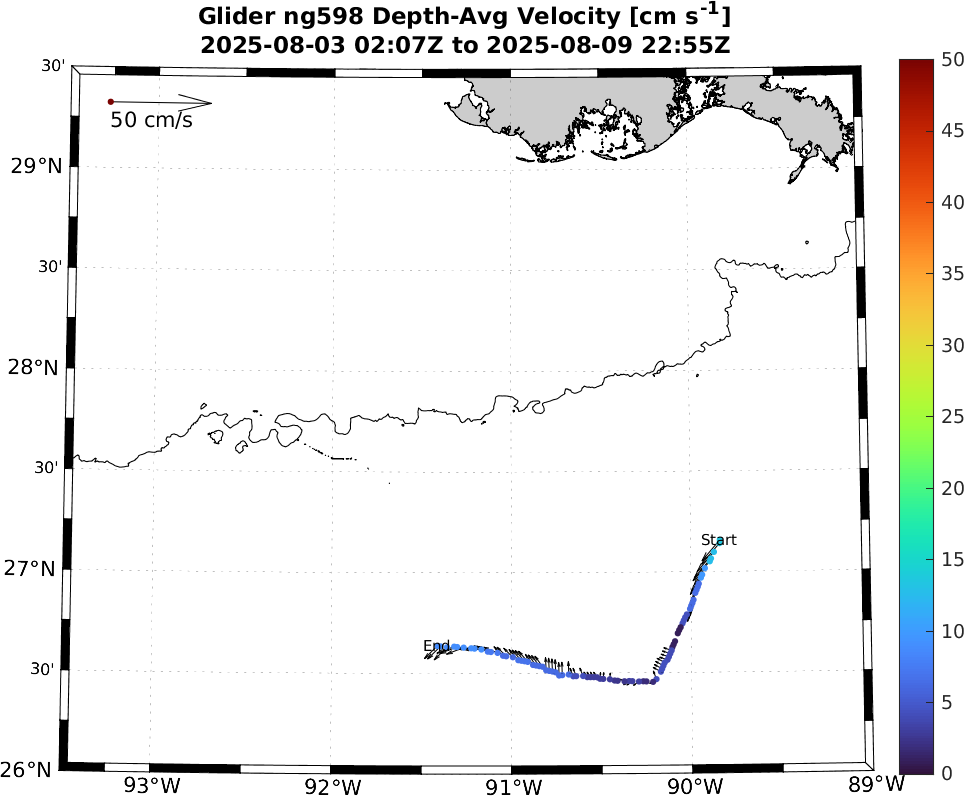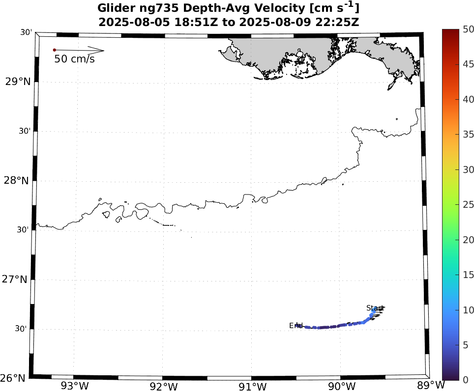 Here we show the depth-averaged velocities (cm/s) for each active glider in the GRASE region. We thank the GRASE glider teams (Rutgers, TAMU, CICESE, etc.) for their glider data.