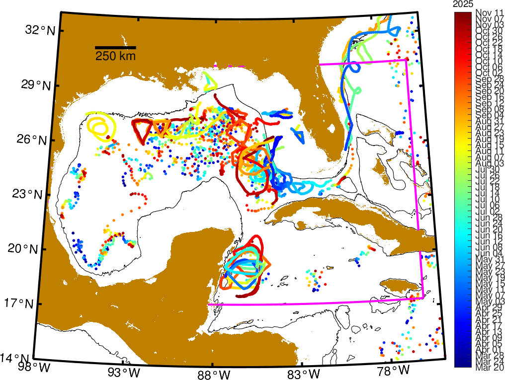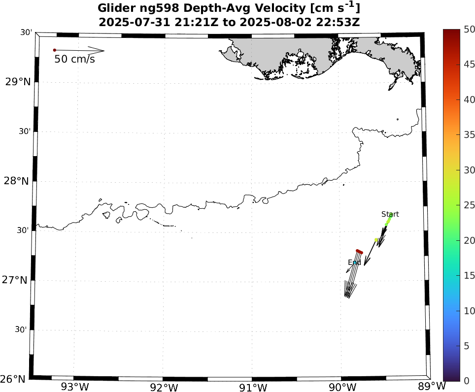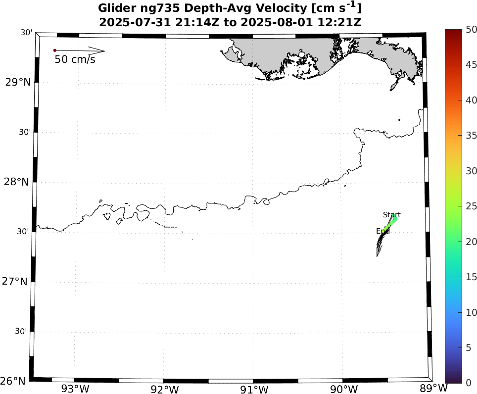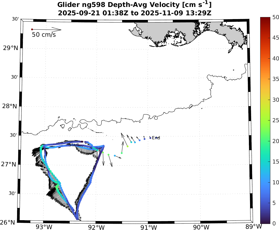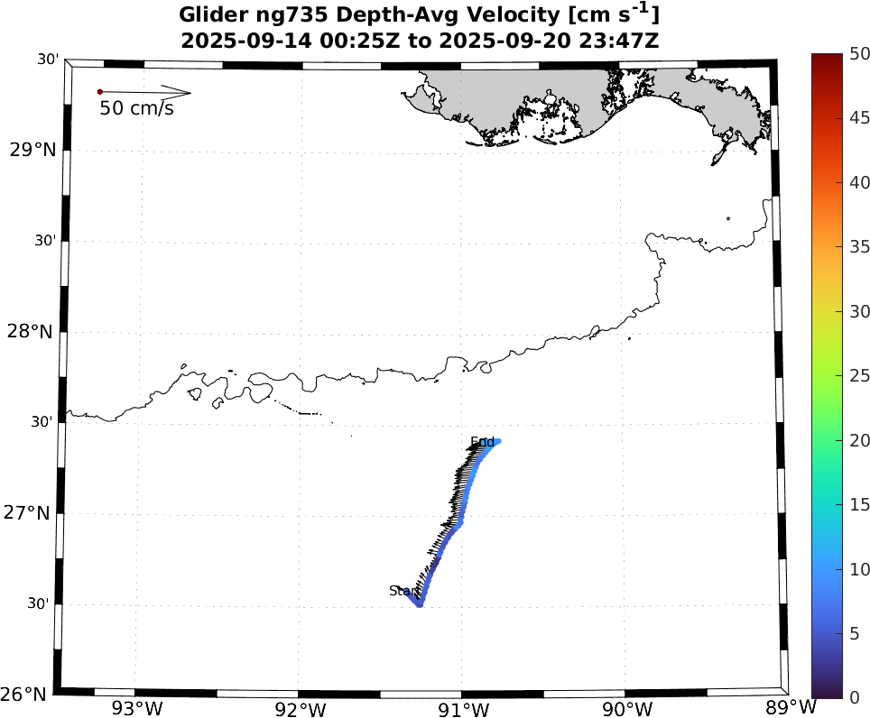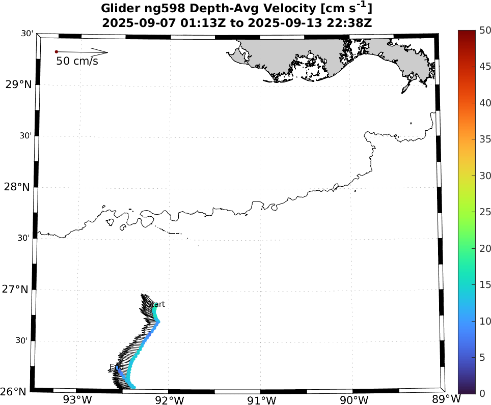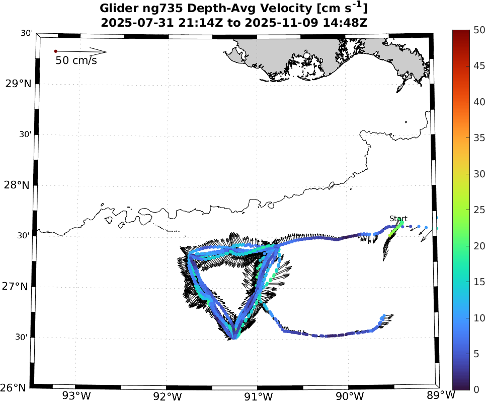 Here we show the depth-averaged velocities (cm/s) for each active glider in the GRASE region. We thank the GRASE glider teams (Rutgers, TAMU, CICESE, etc.) for their glider data.