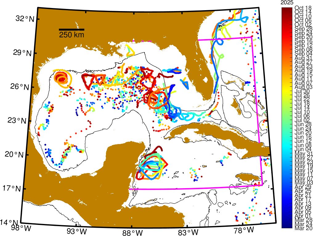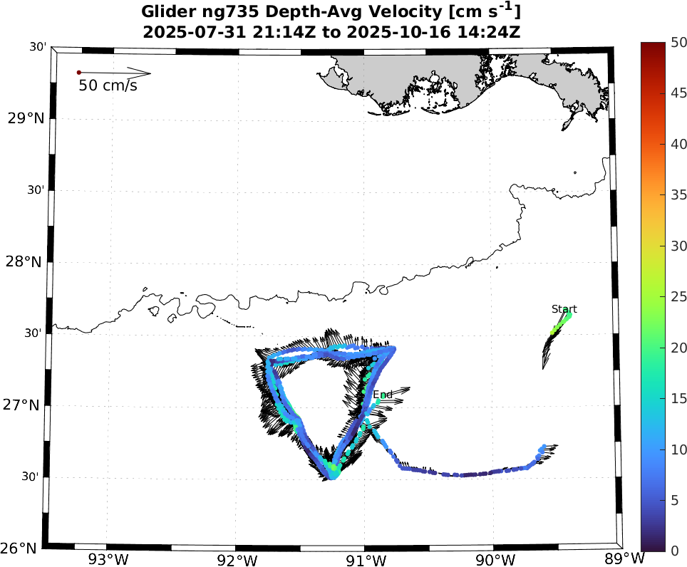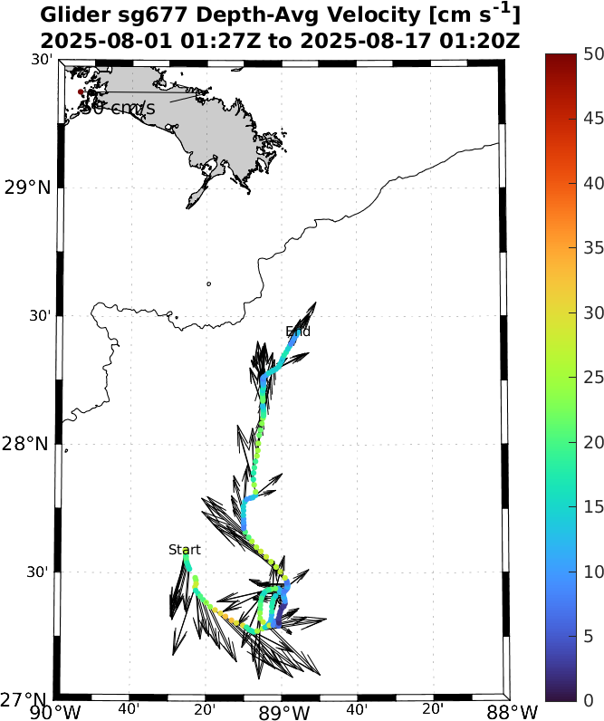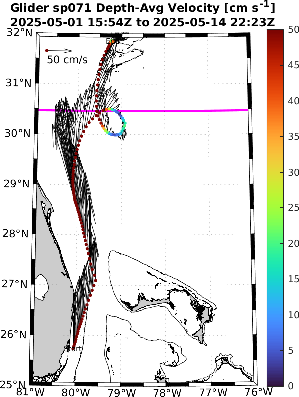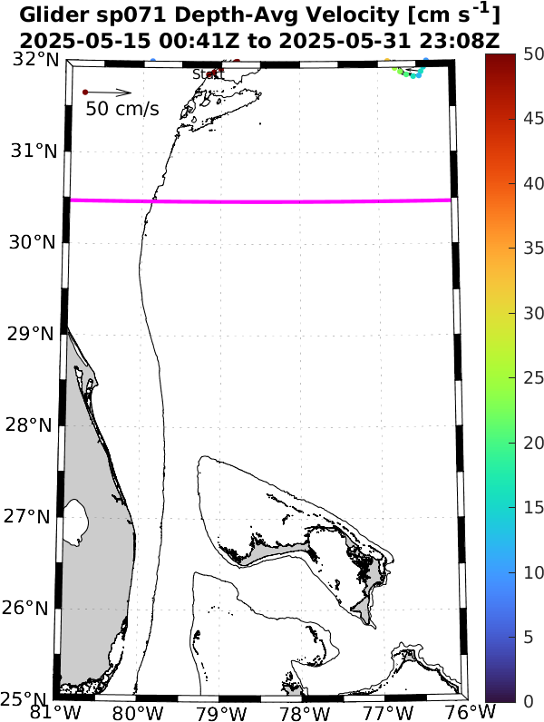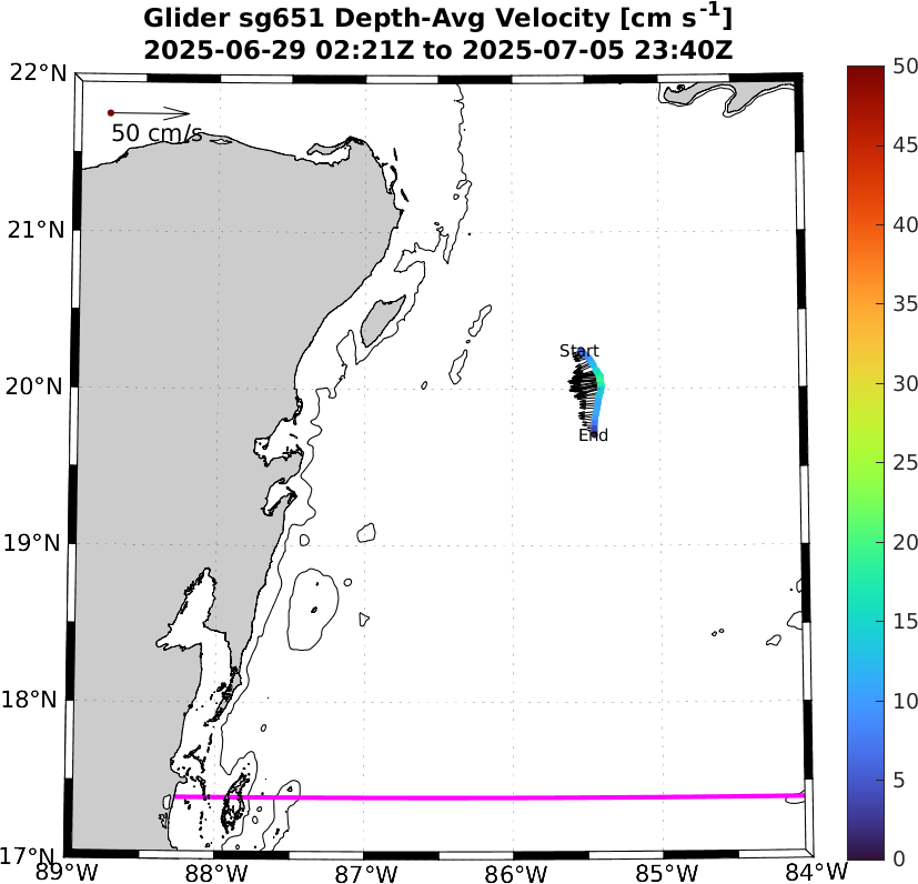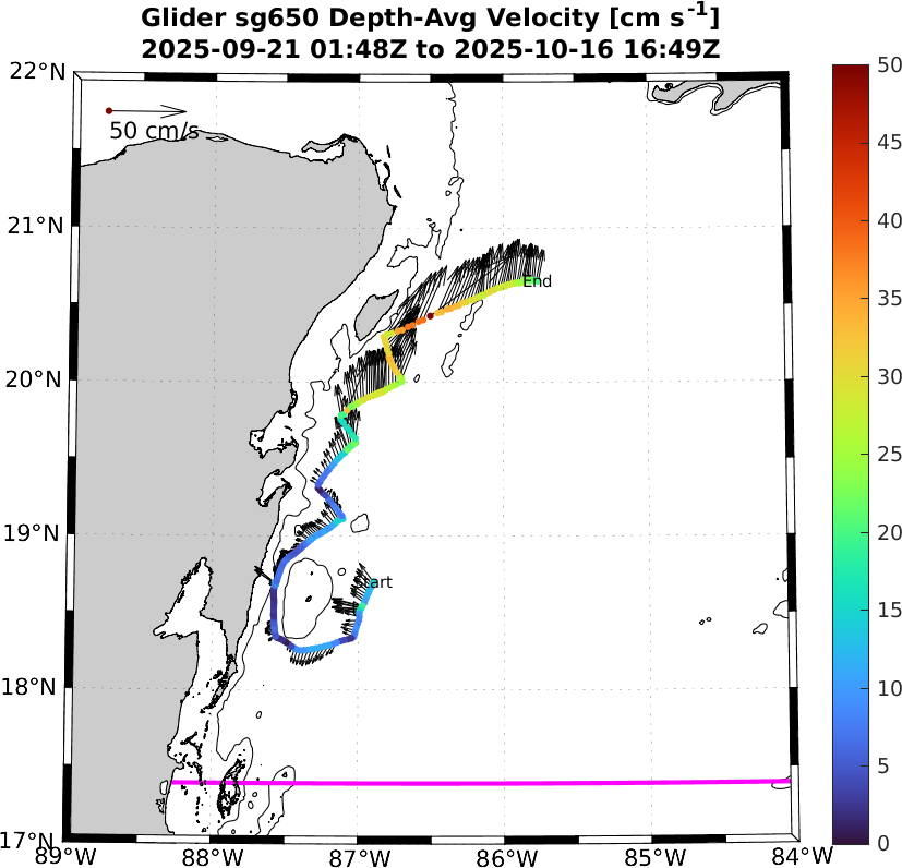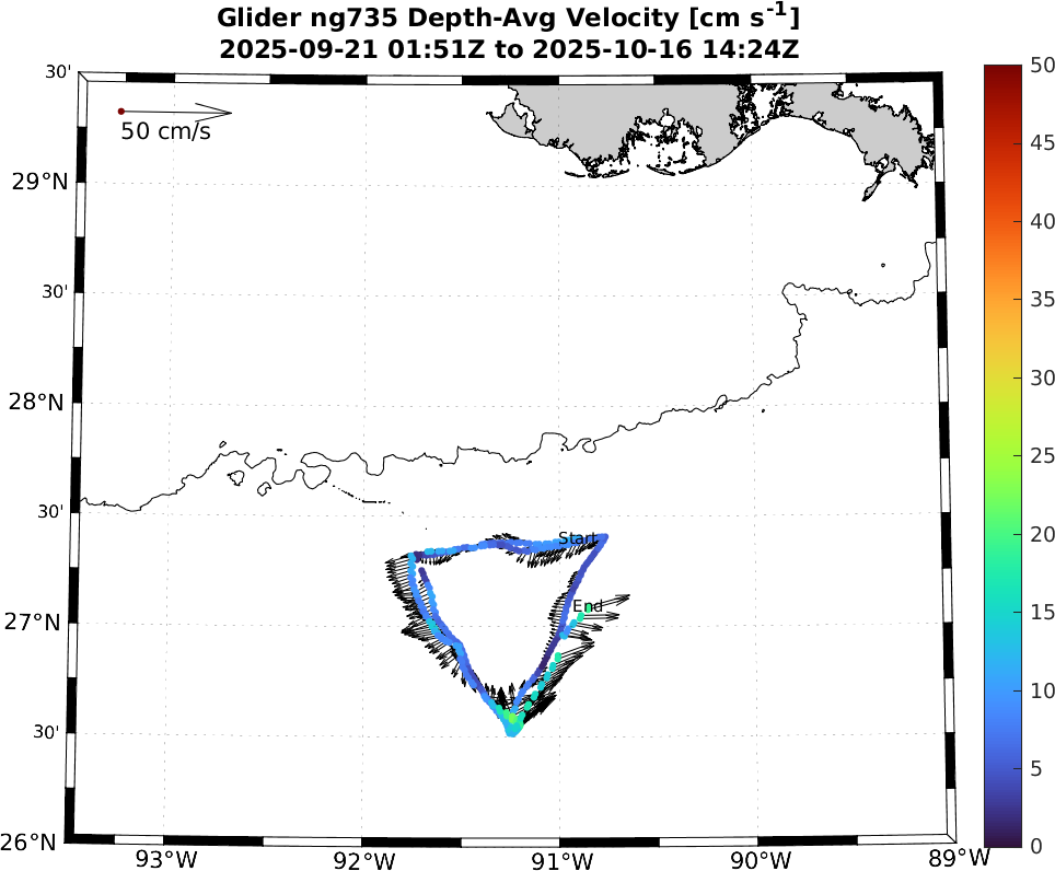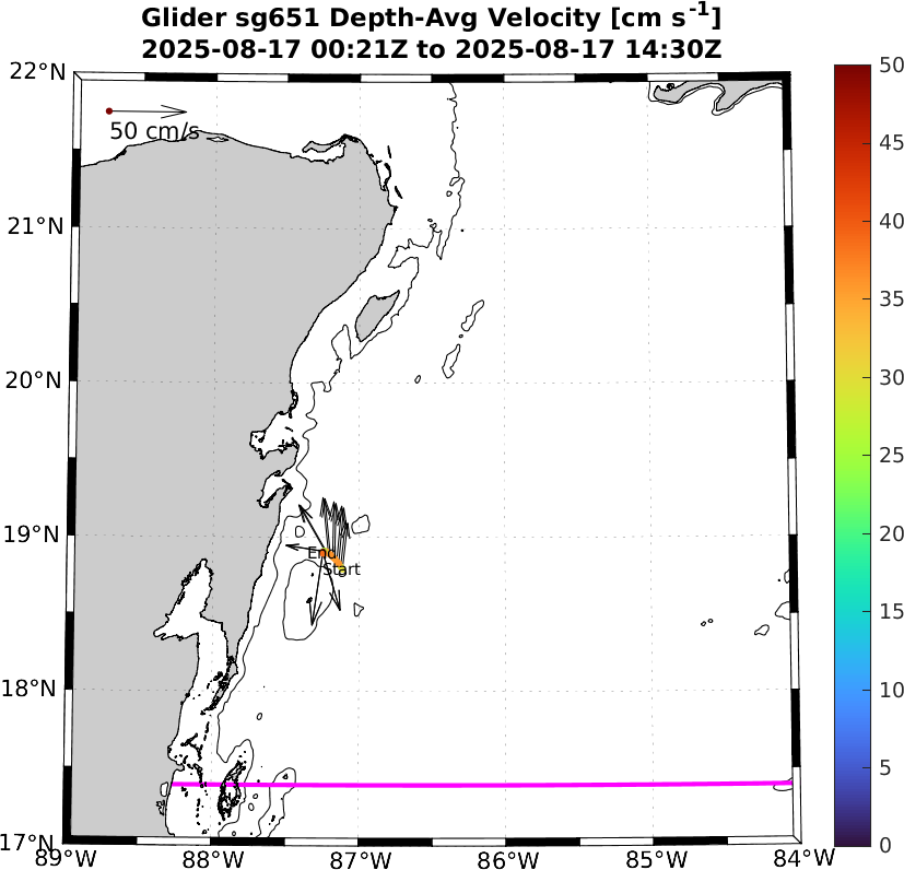 Here we show the depth-averaged velocities (cm/s) for all gliders in the GRASE region. We thank the GRASE glider teams (Rutgers, TAMU, CICESE, etc.) for their glider data.