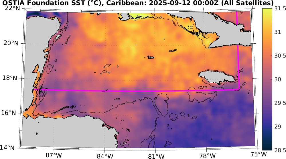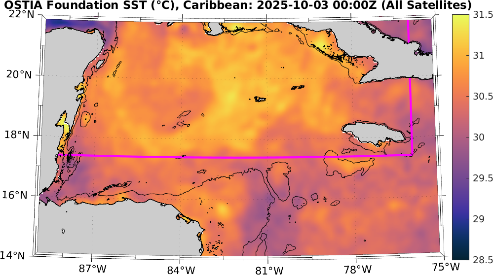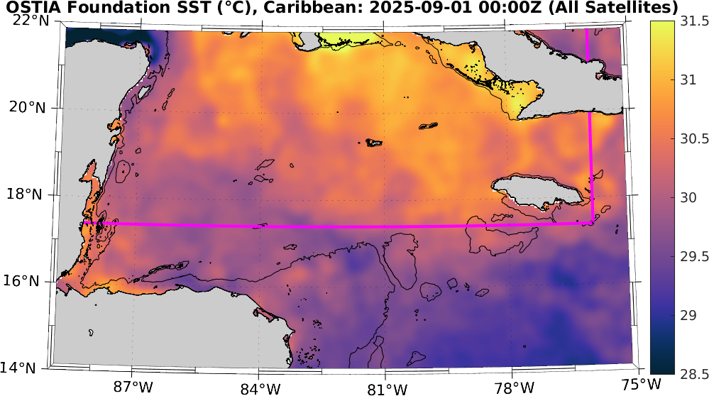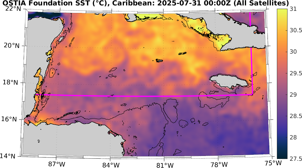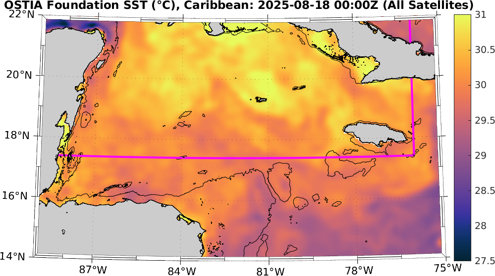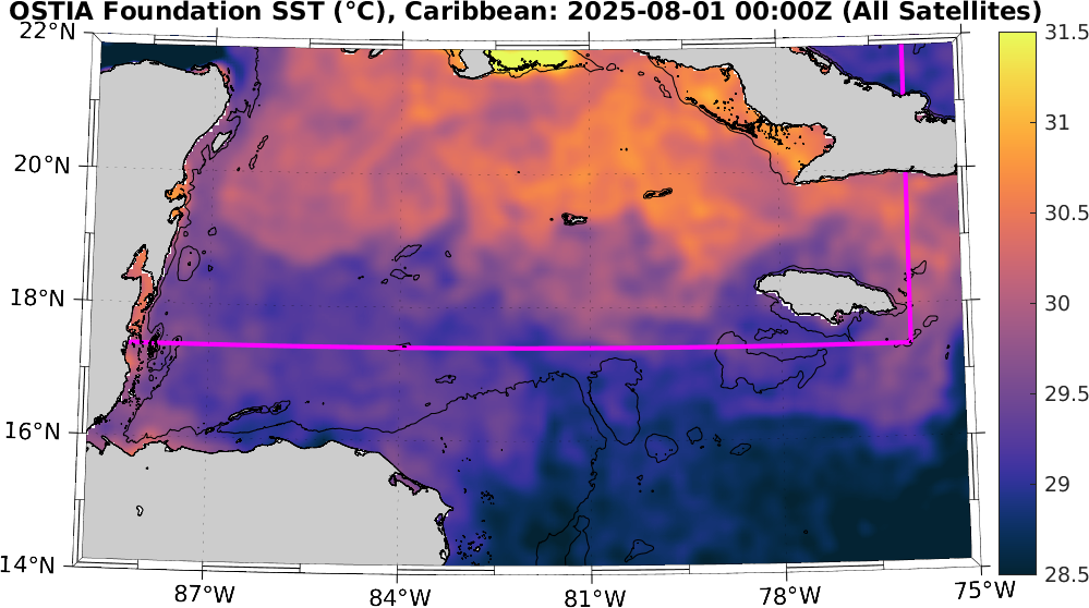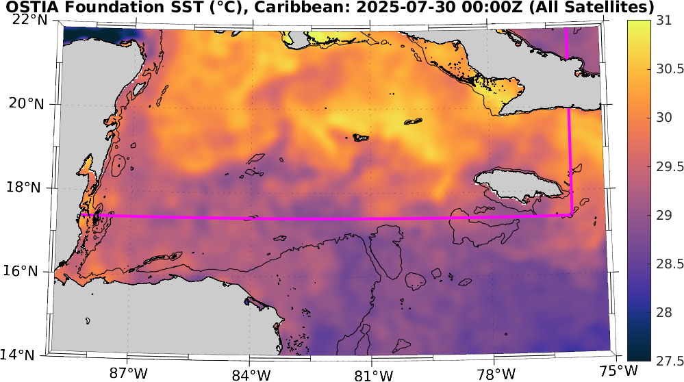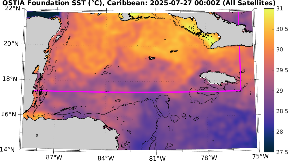 For a full product description, consult the Copernicus web site. Note that colorbar limits change on May10, May22, and Jun16 to account for seasonsal warming.