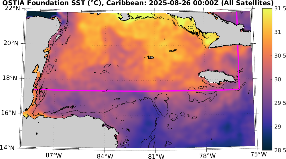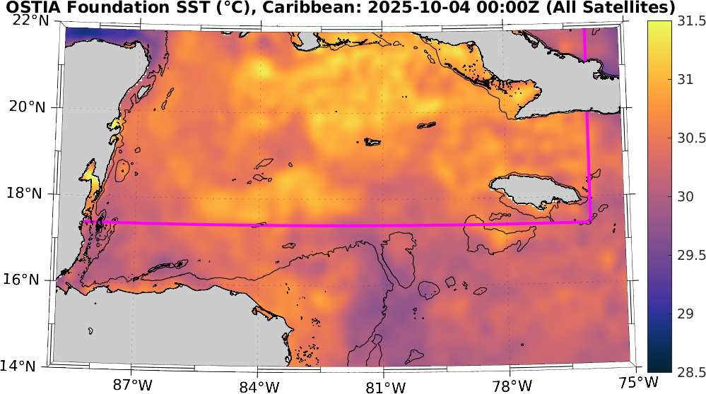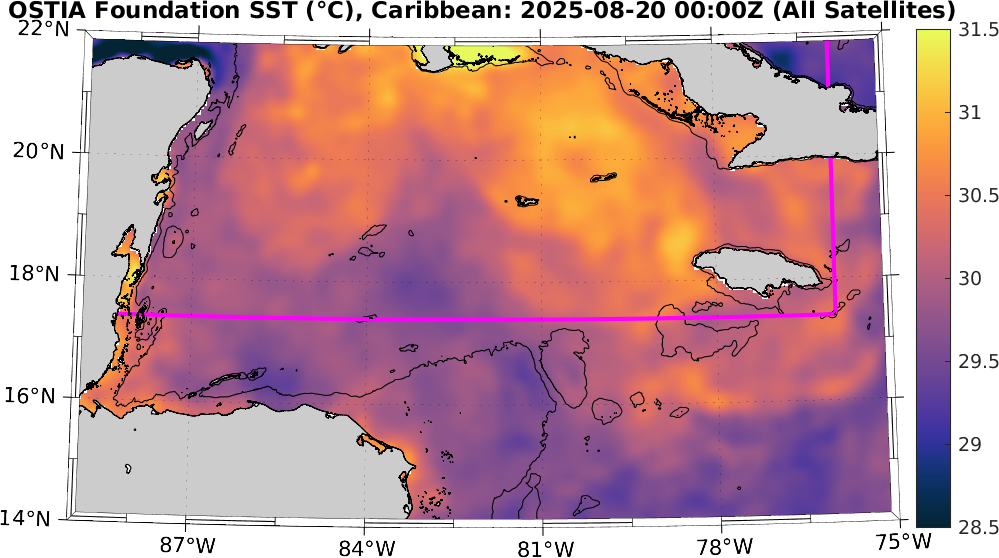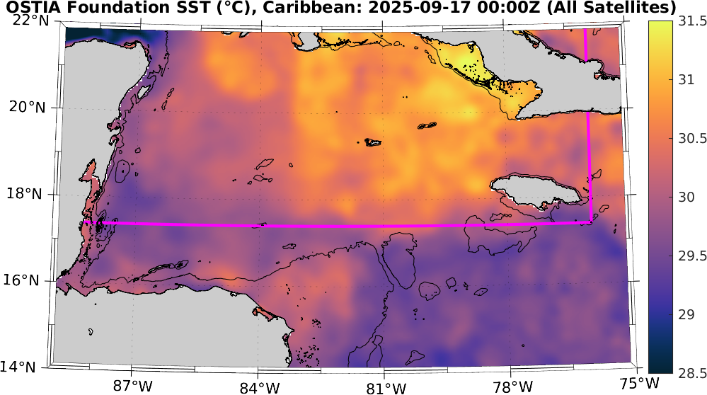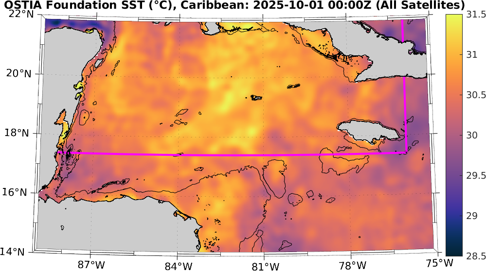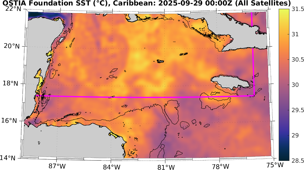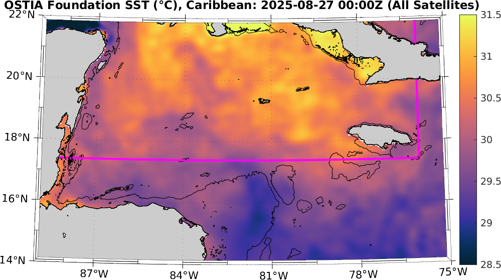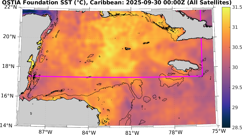 For a full product description, consult the Copernicus web site. Note that colorbar limits change on May10, May22, and Jun16 to account for seasonsal warming.