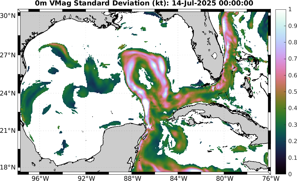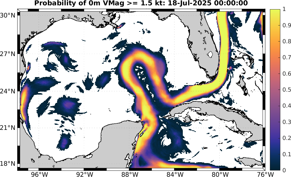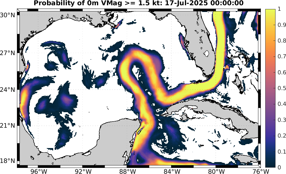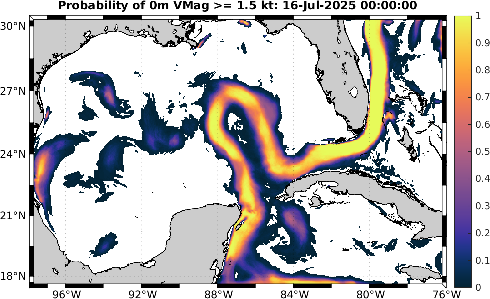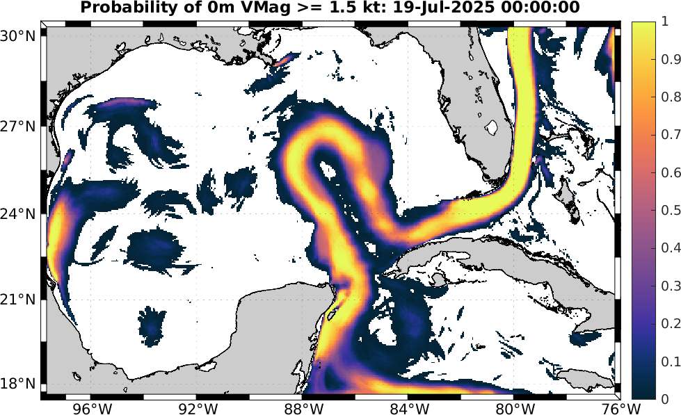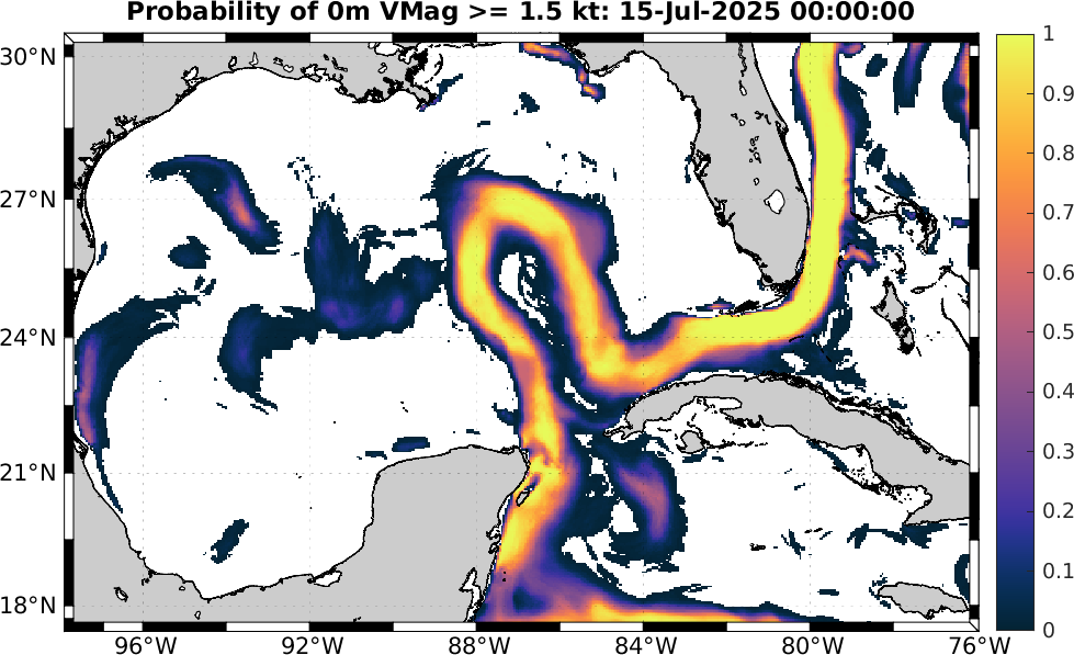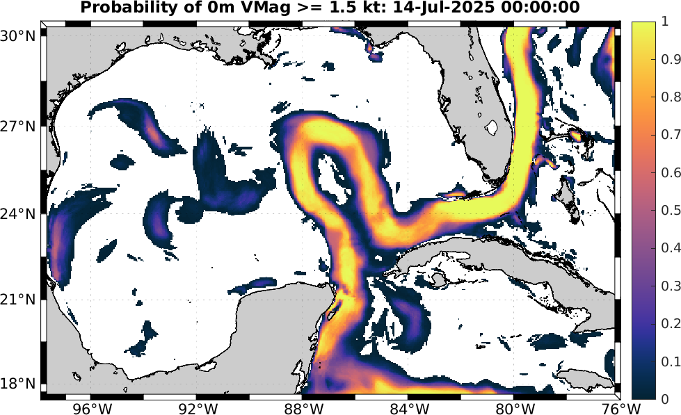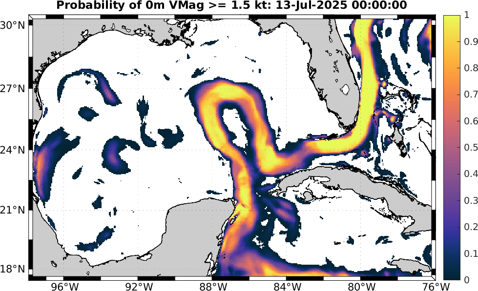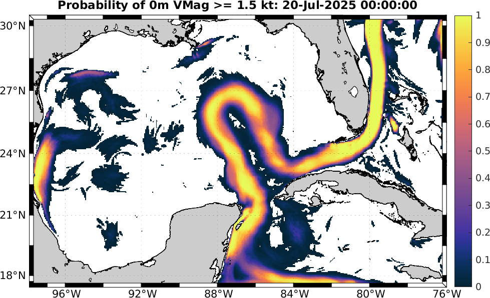 MSEAS Probabilistic Forecasts of Hazardous Velocities (Issued 13 Jul 2025):