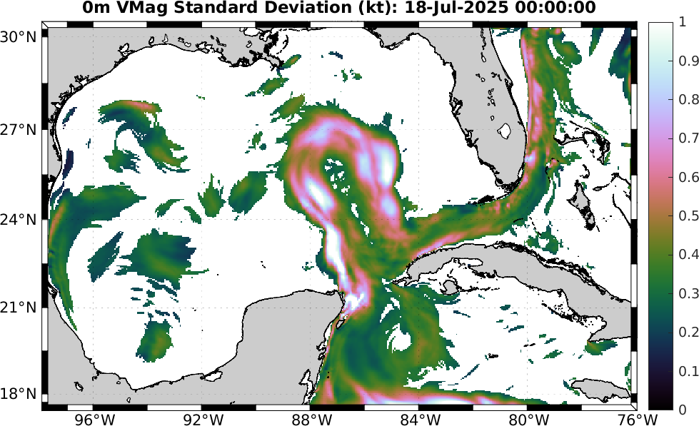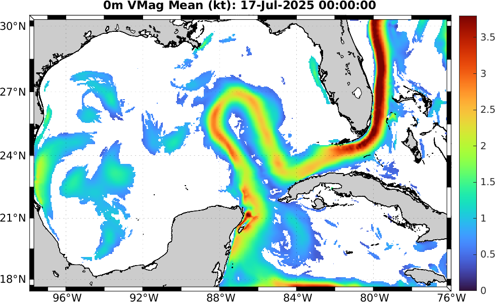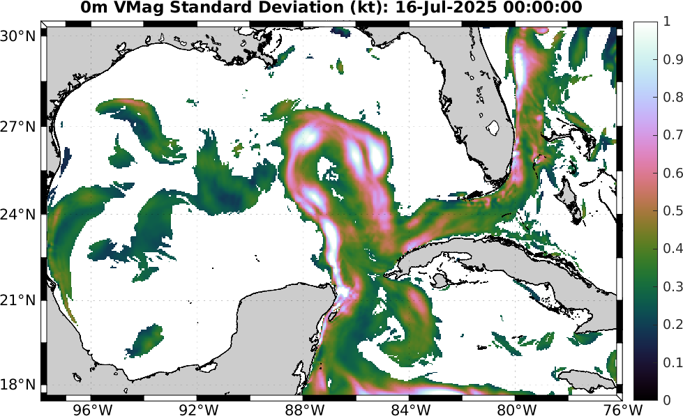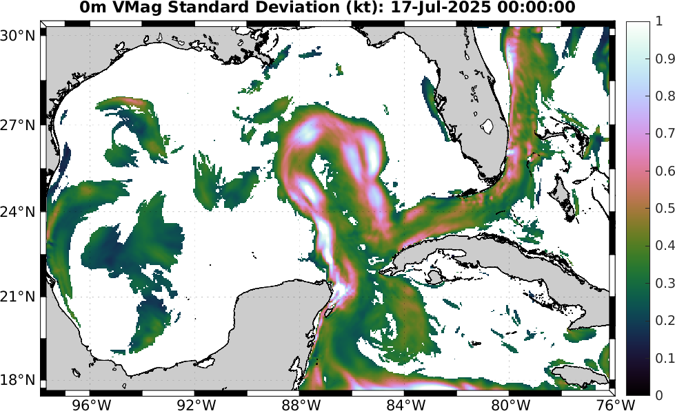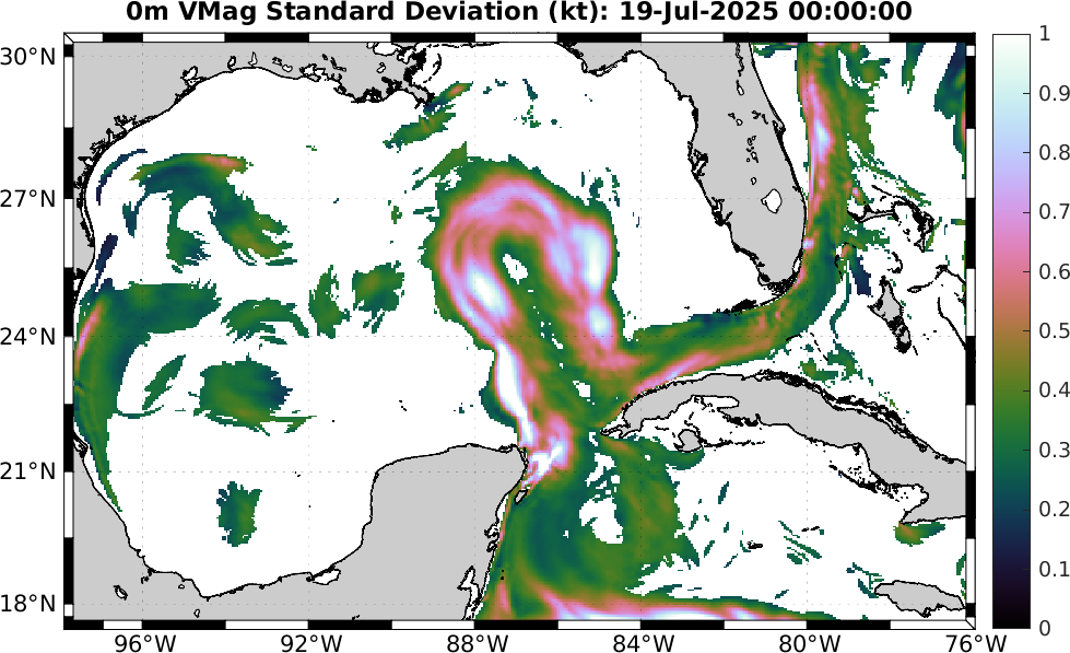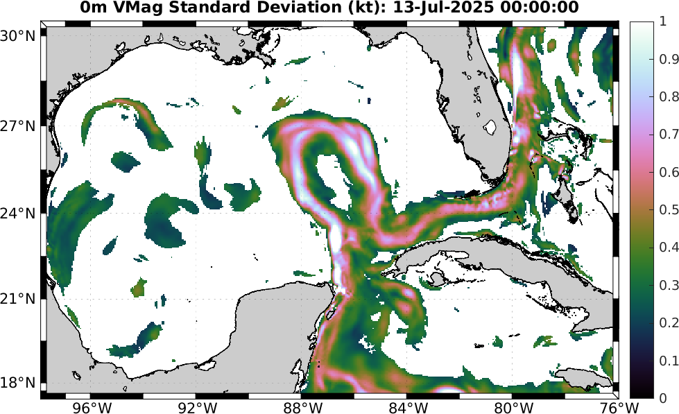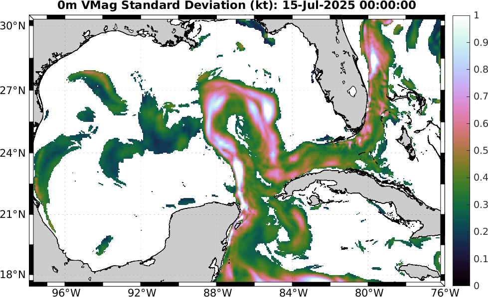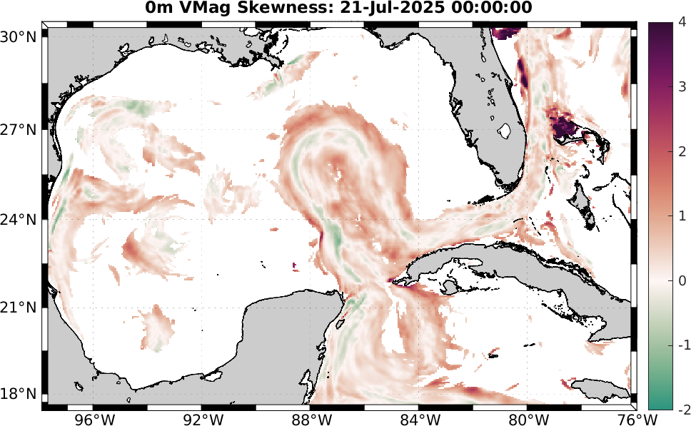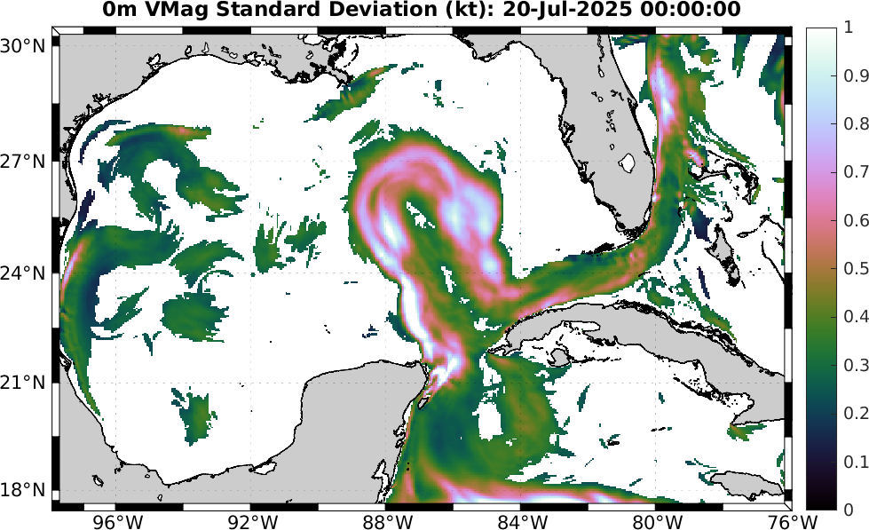 MSEAS Probabilistic Forecasts of Hazardous Velocities (Issued 13 Jul 2025):