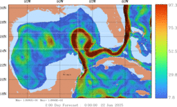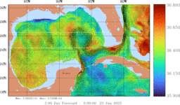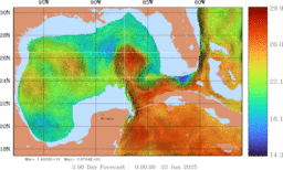 MSEAS 1/25° Probabilistic Ocean Forecasts (atmospheric and tidally-forced forecasts initialized from downscaled HYCOM)