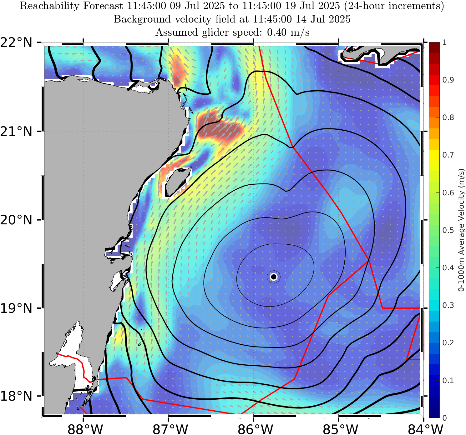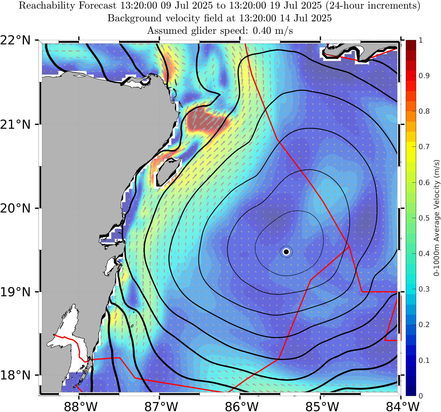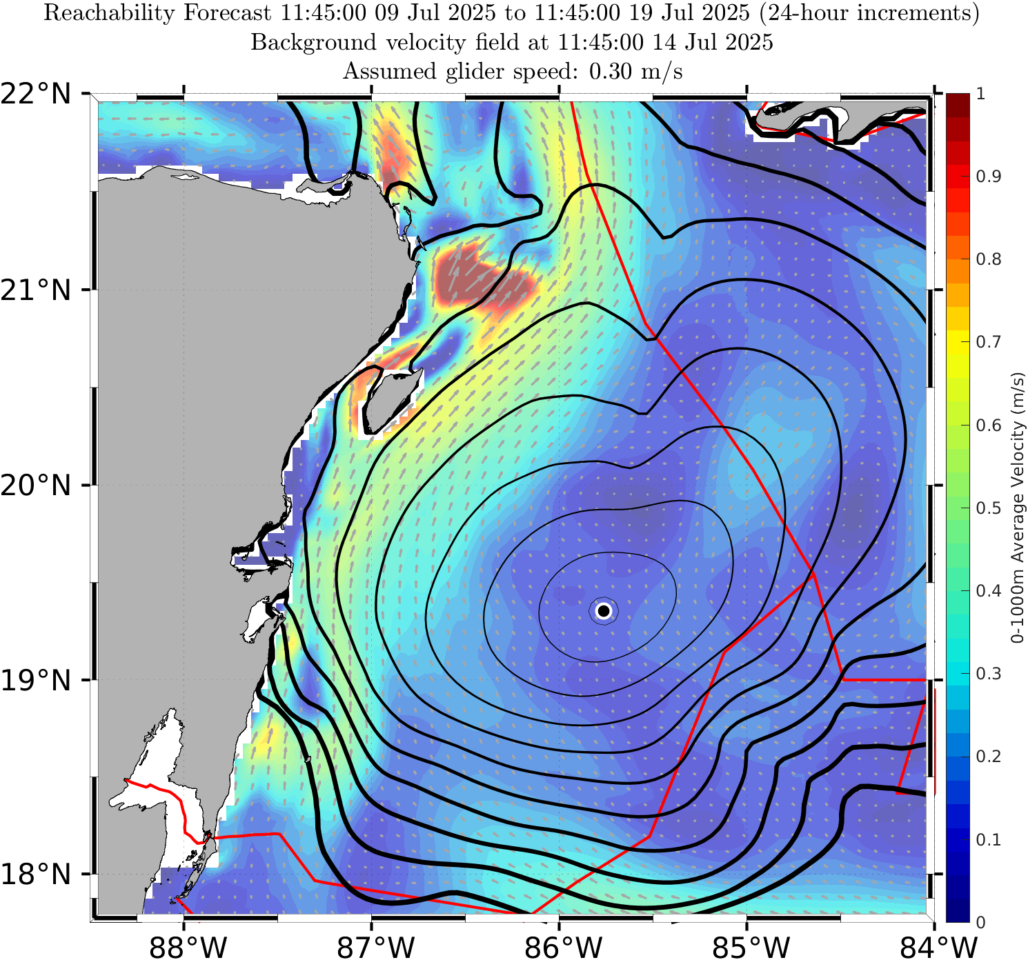 In this forecast, we consider the actual starting locations of the gliders at their last reported positions.