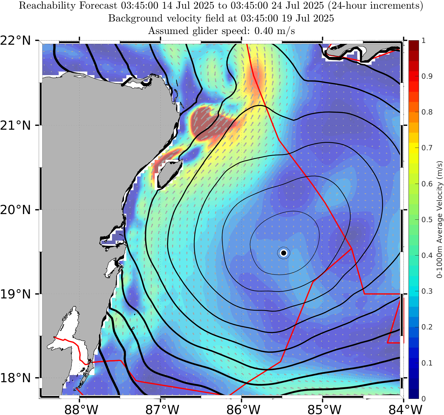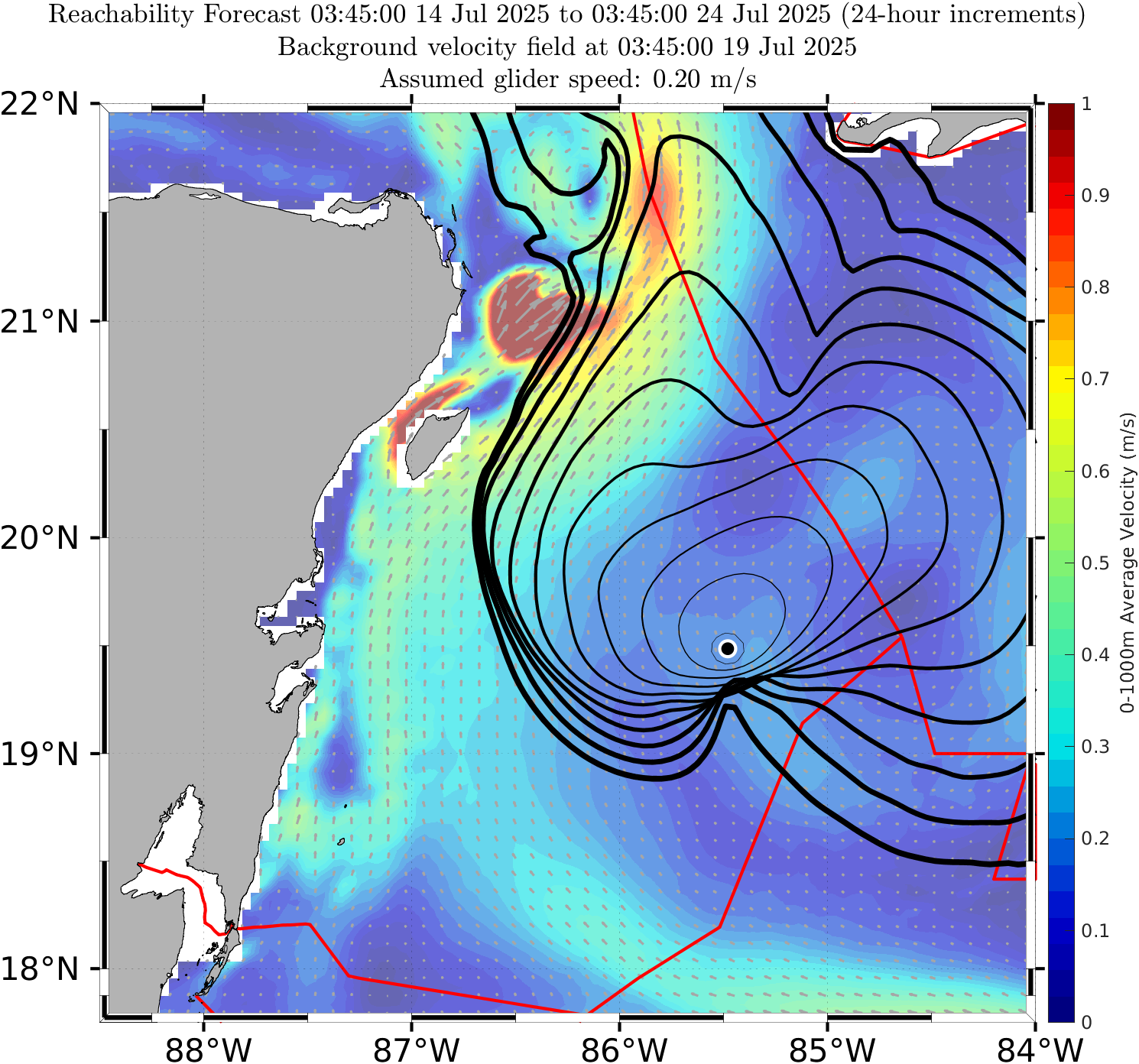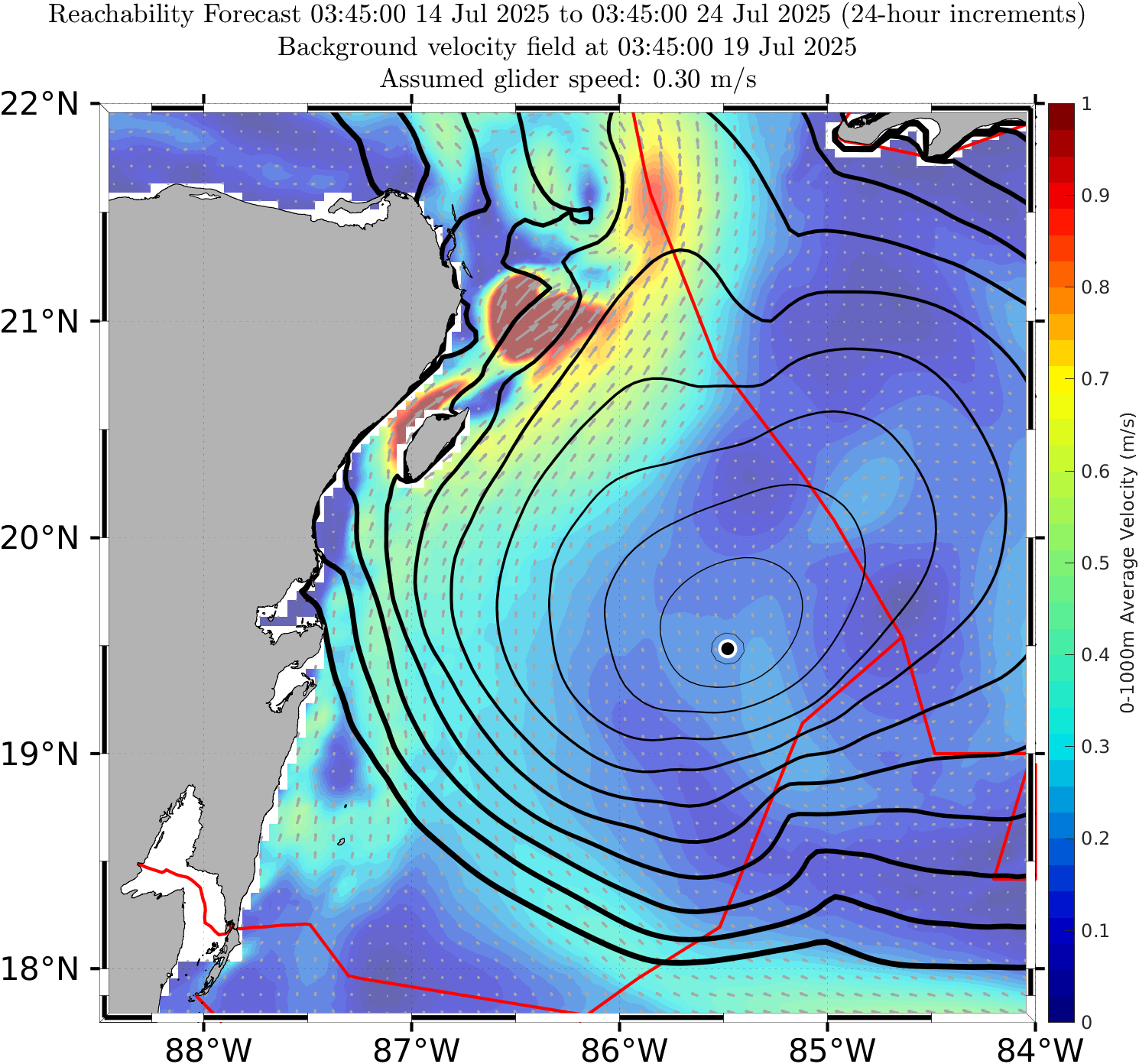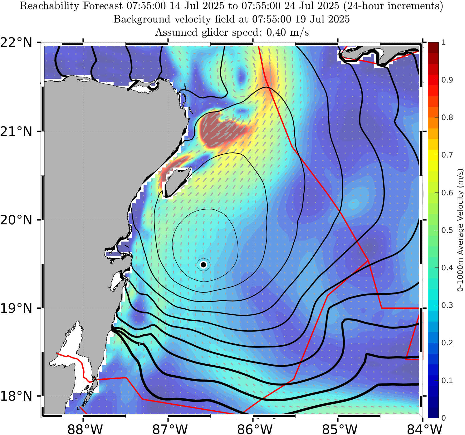 In this forecast, we consider the actual starting locations of the gliders at their last reported positions.