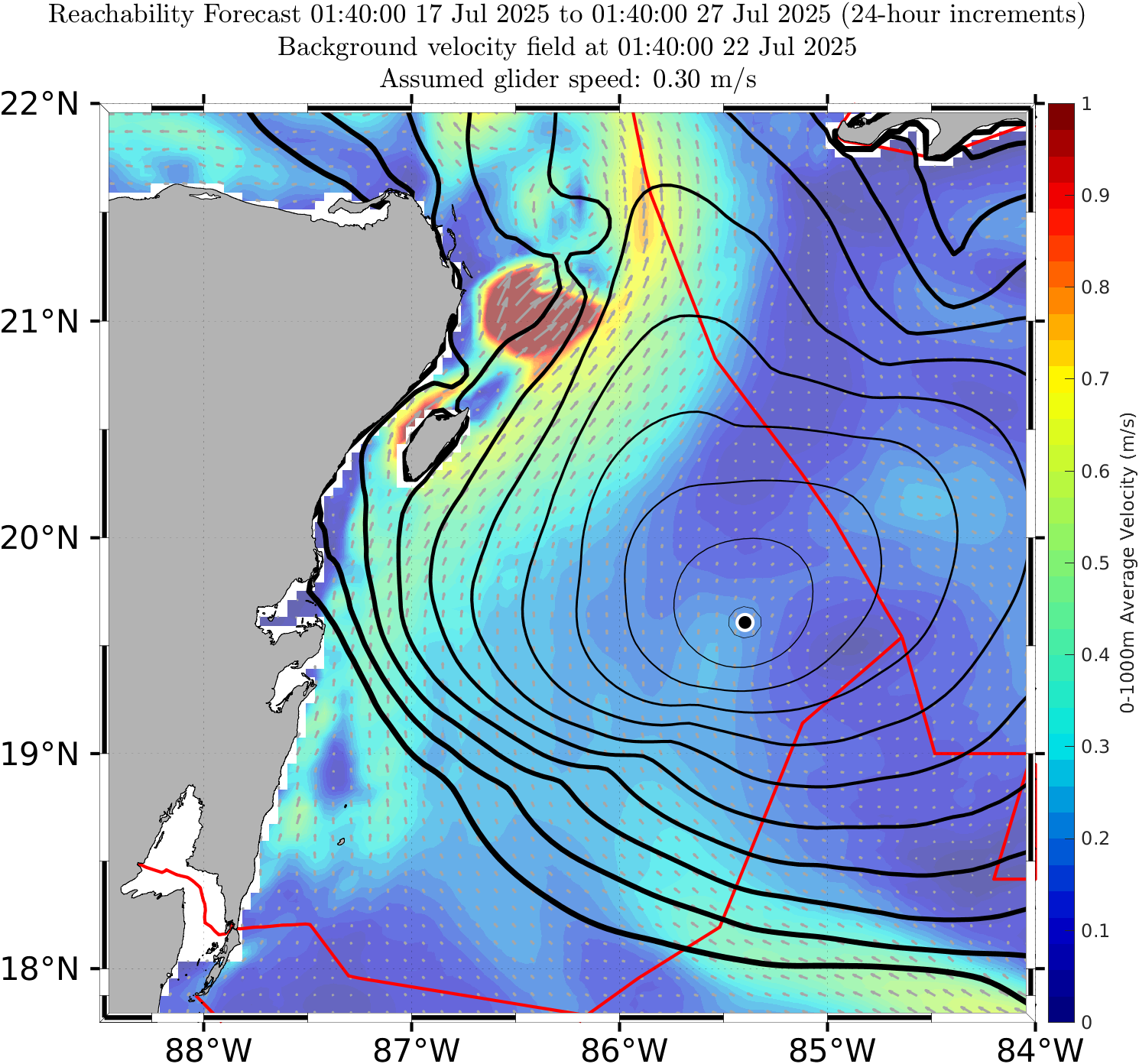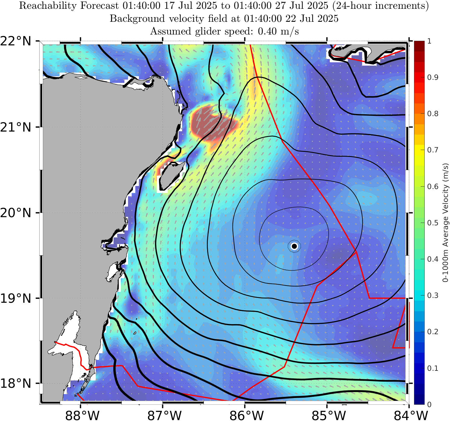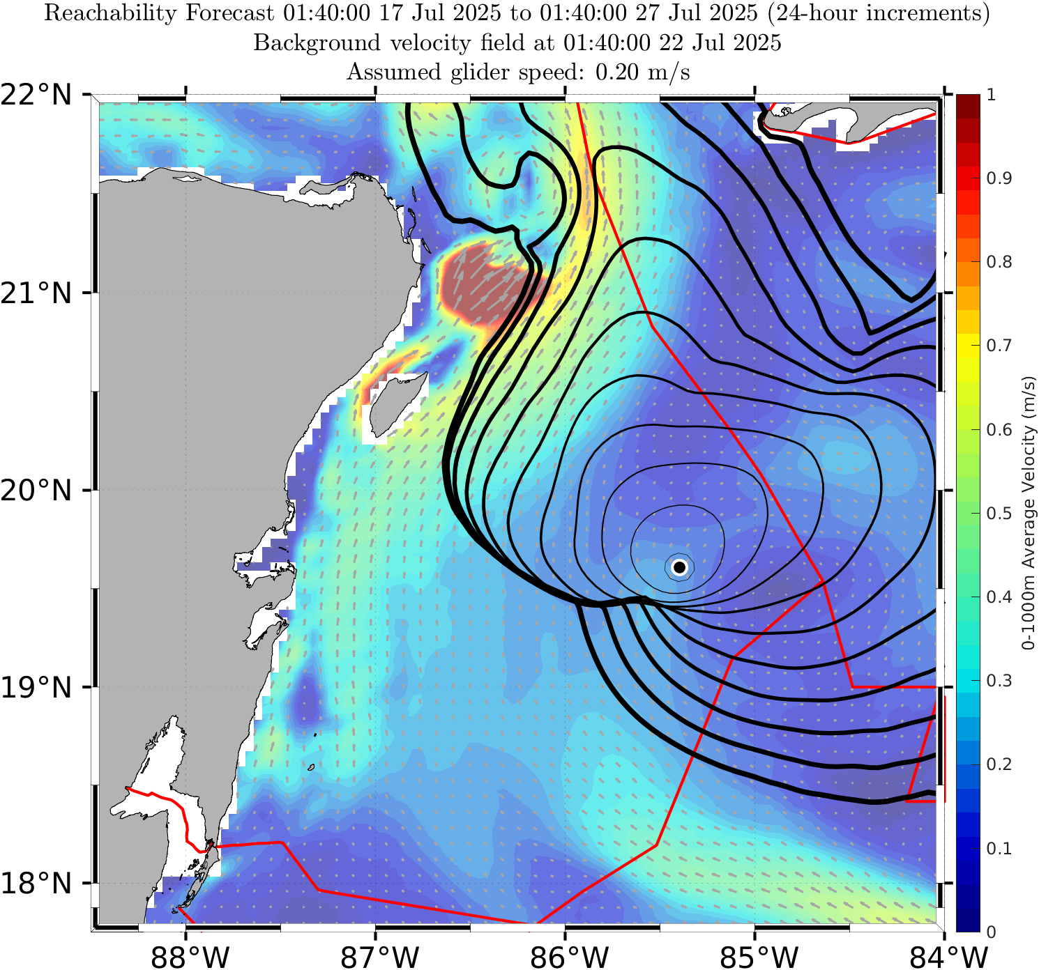 In this forecast, we consider the actual starting locations of the gliders at their last reported positions.