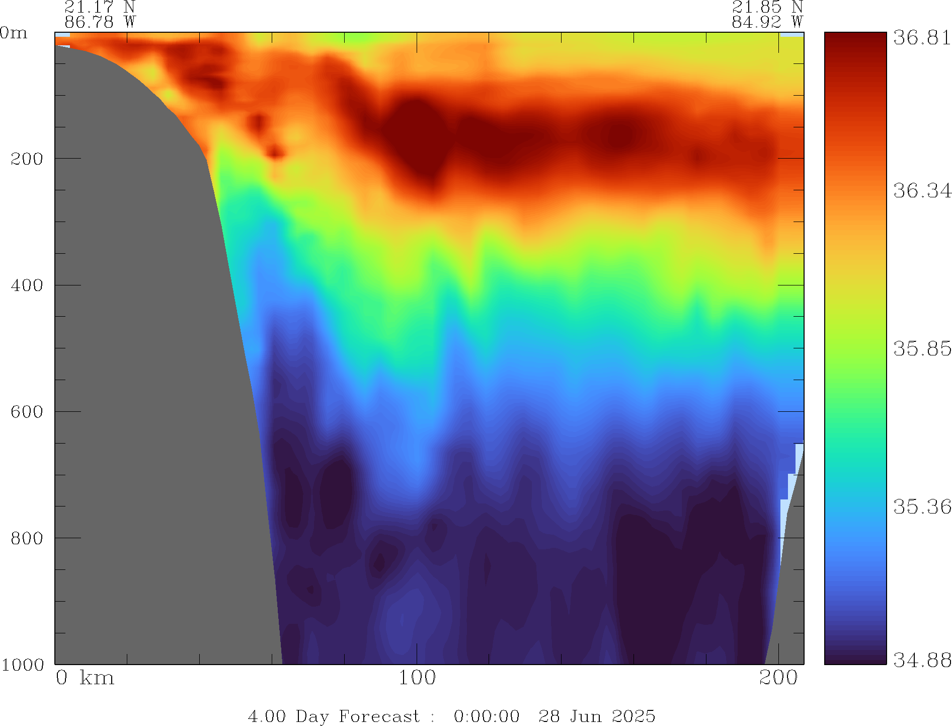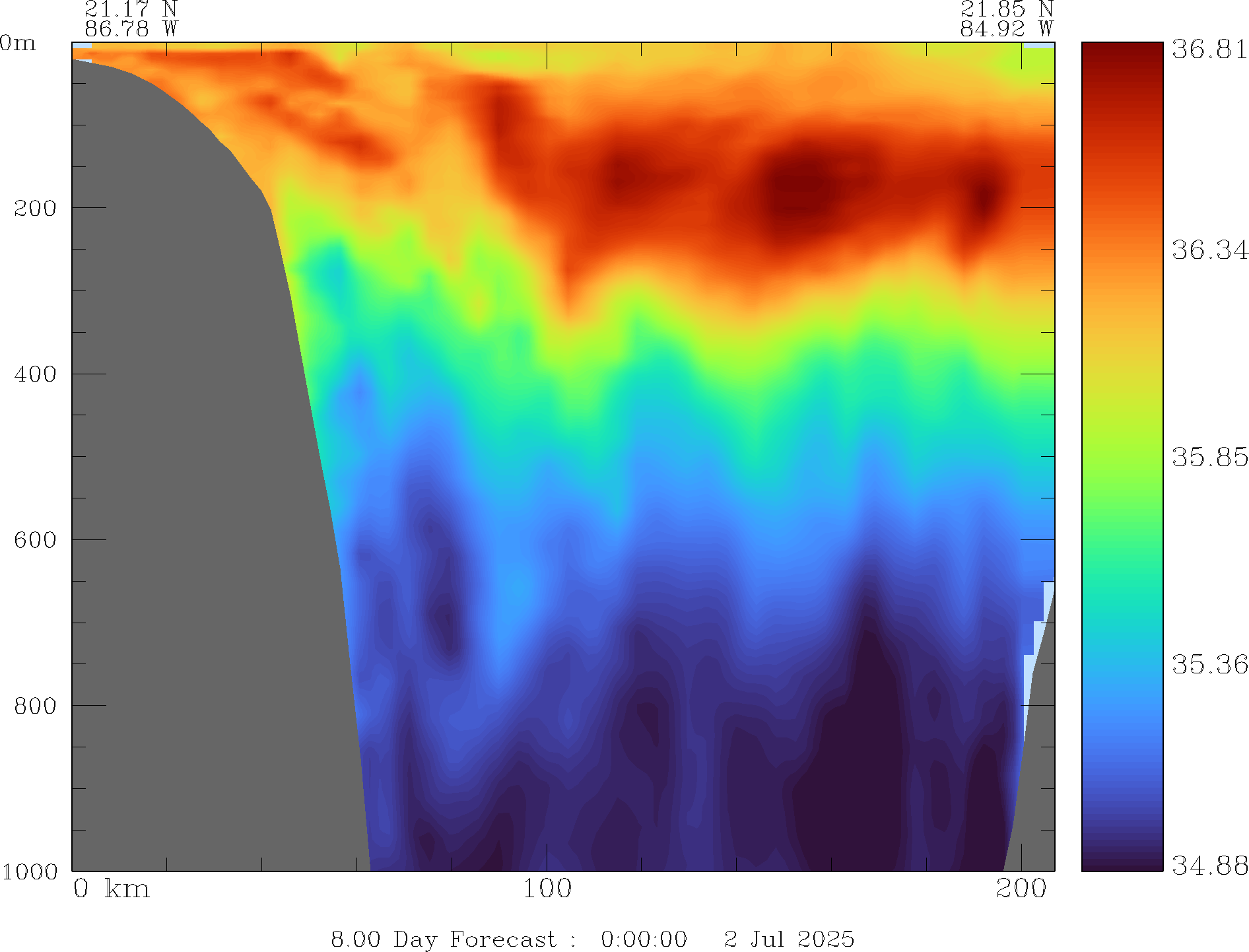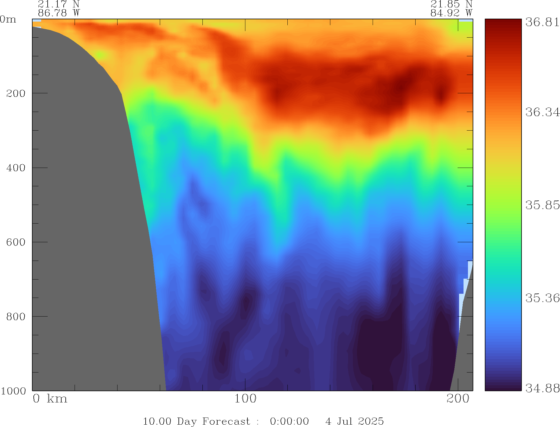 Sigma-T | Across-Section Velocity | Temperature | Salinity |