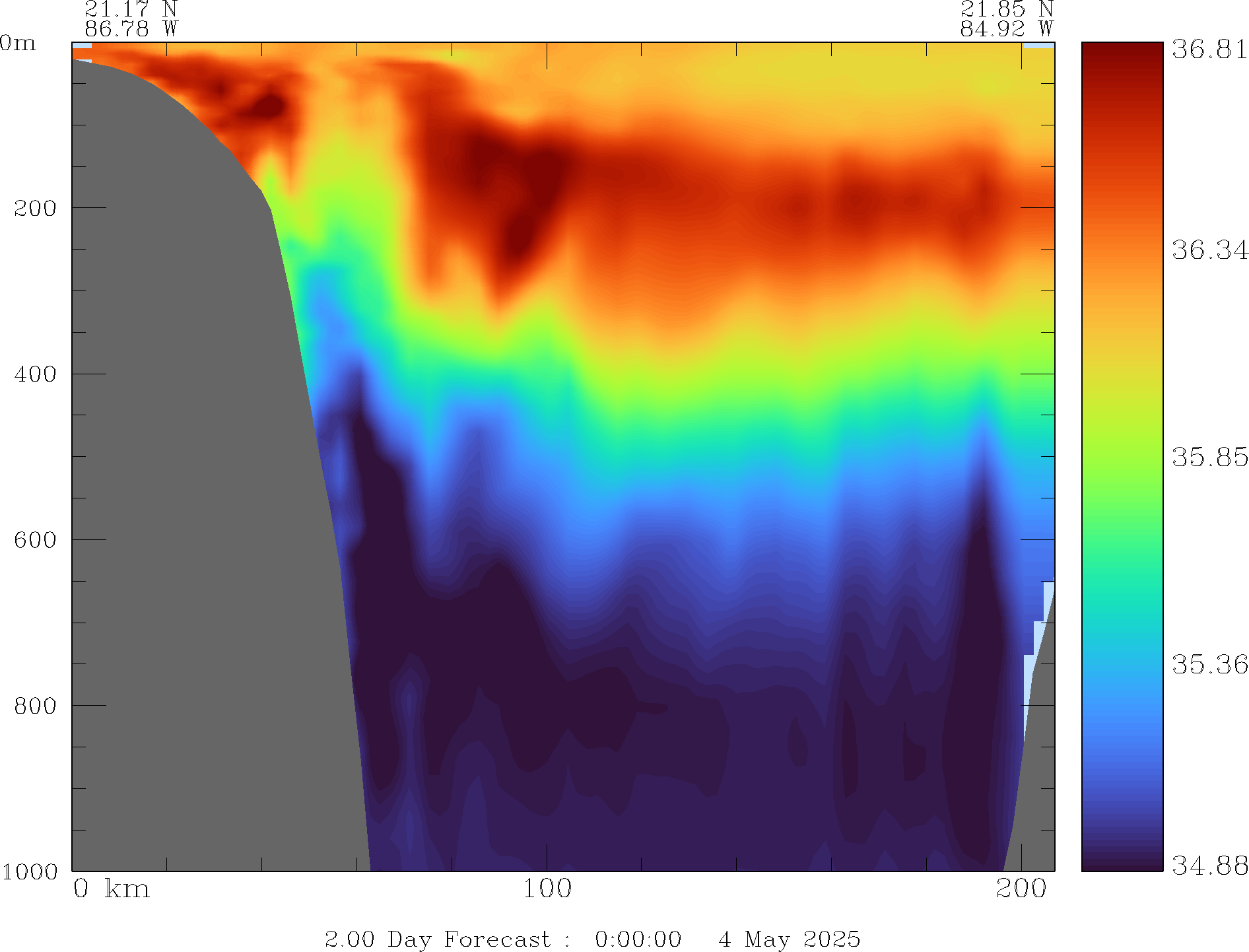 Sigma-T | Across-Section Velocity | Temperature | Salinity |