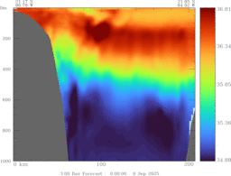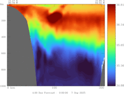 Sigma-T | Across-Section Velocity | Temperature | Salinity |