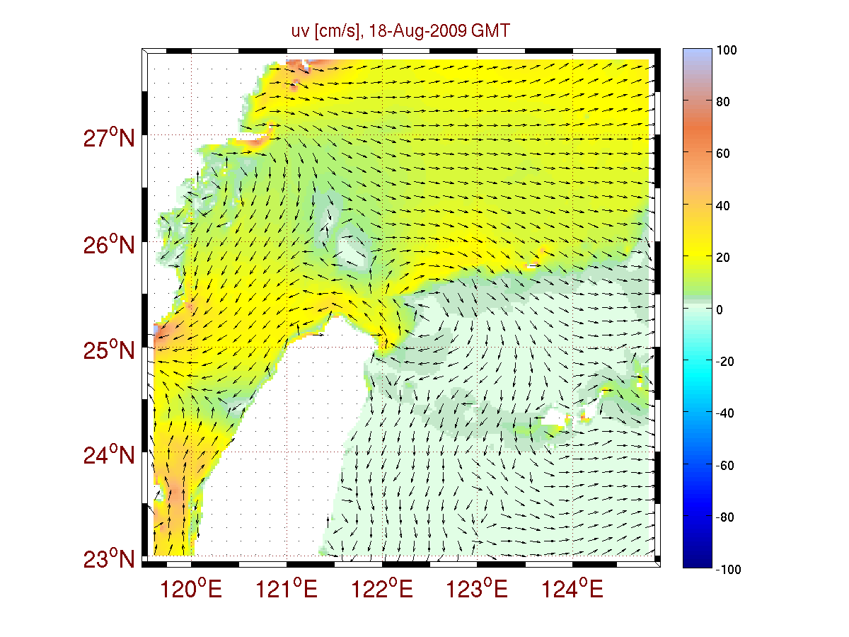 The barotropic tidal flow field over the period 18 Aug 00Z - 3 Sep 00Z is shown in these two movies: QPE region Taiwan-Kuroshio domain