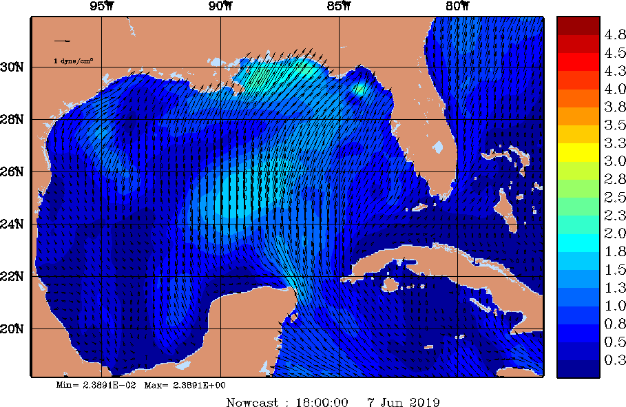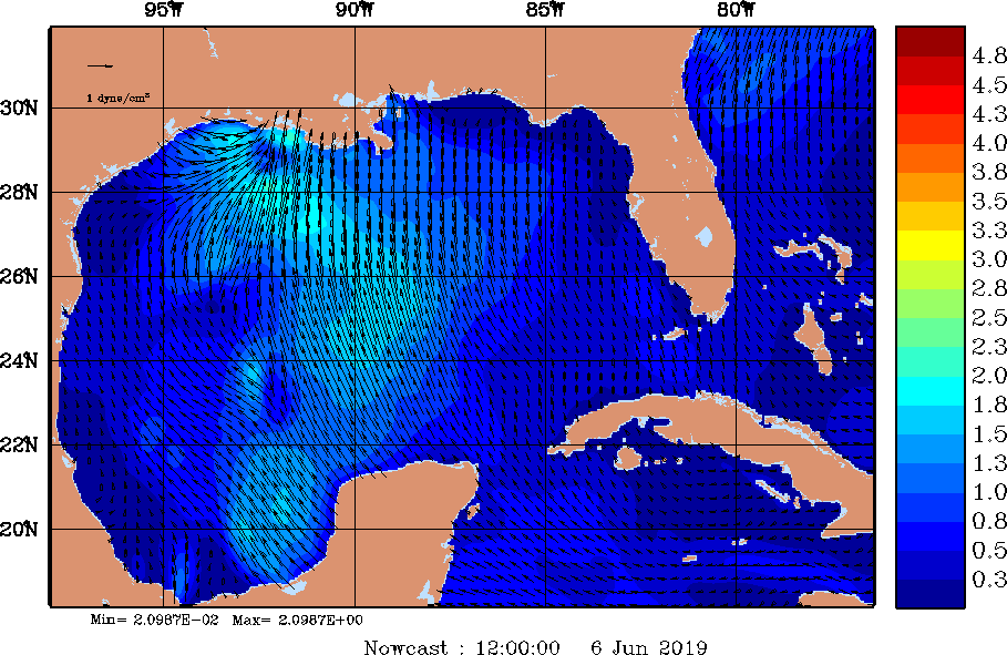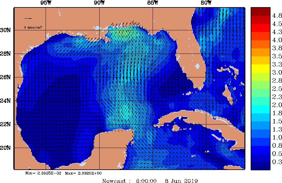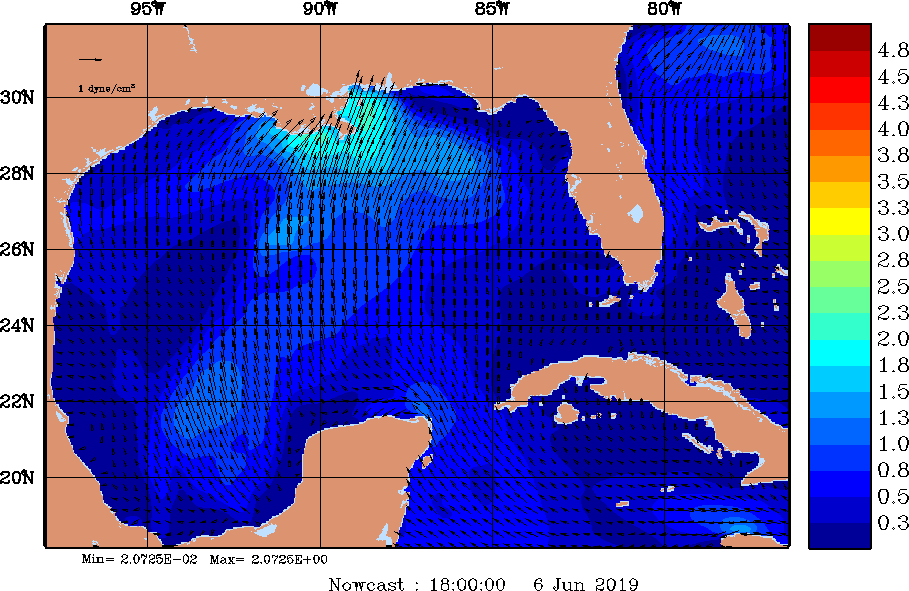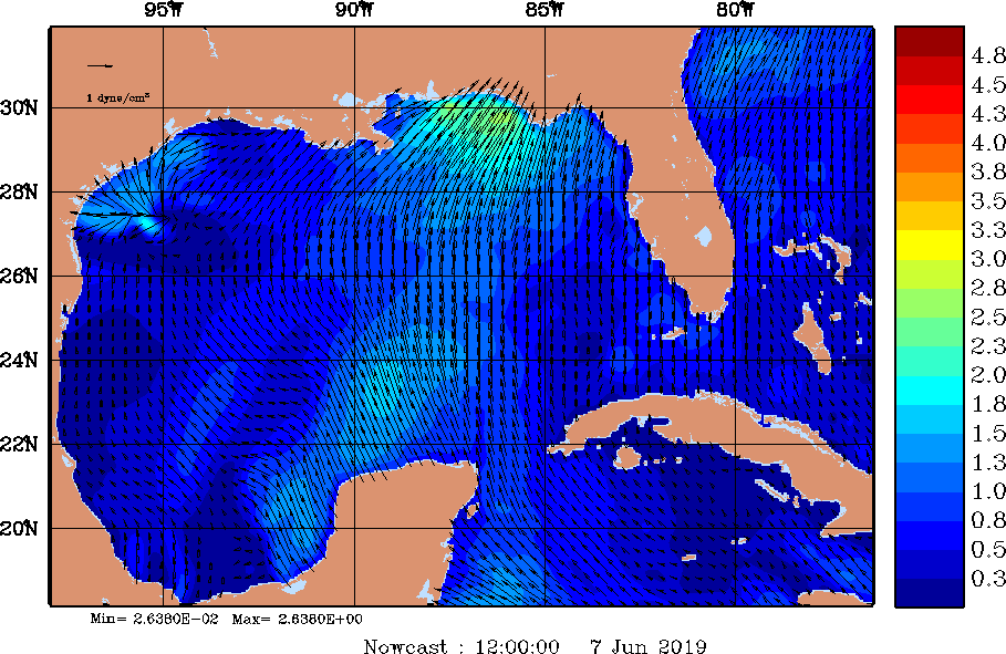 Wind Stress Snapshots (dynes/cm2); processed by MSEAS from NCEP NAM fields |