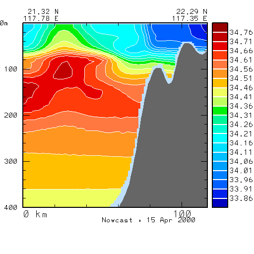 Animation Salinity Field - 1610Z, 15 April 2000 - center