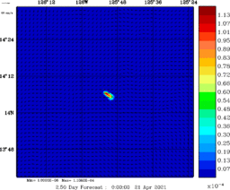 The plume concentrations are normalized for a point source with a concentration of 1. The point source is also assumed to have a flow rate of 0.56 m3/s.