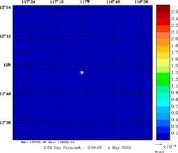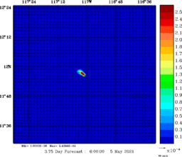 The plume concentrations are normalized for a point source with a concentration of 1. The point source is also assumed to have a flow rate of 0.56 m3/s.