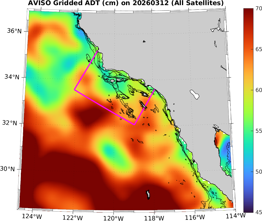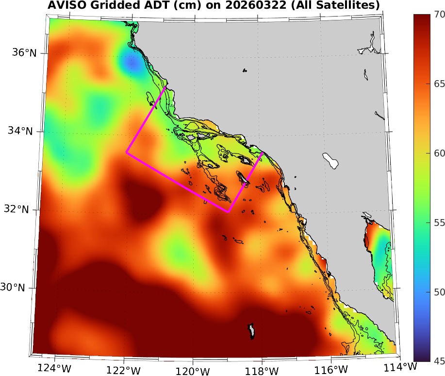 AVISO NRT Gridded ADT (0.125° resolution), Southern California–Baja California domain