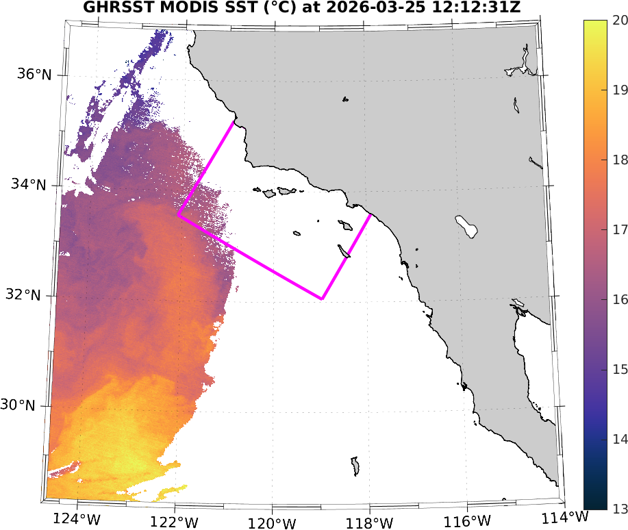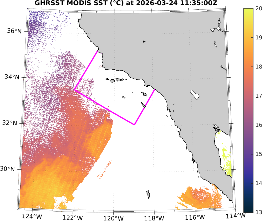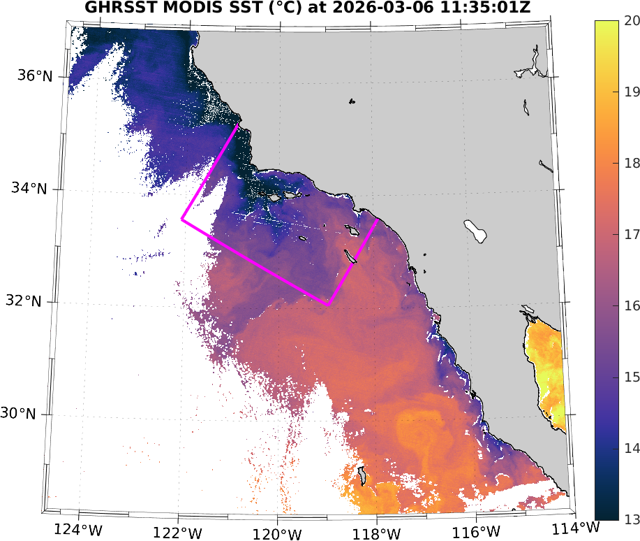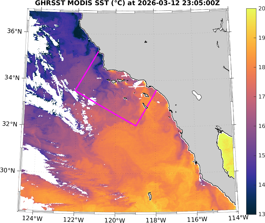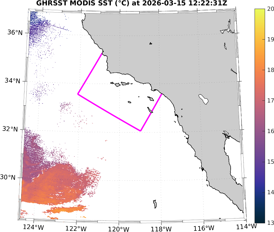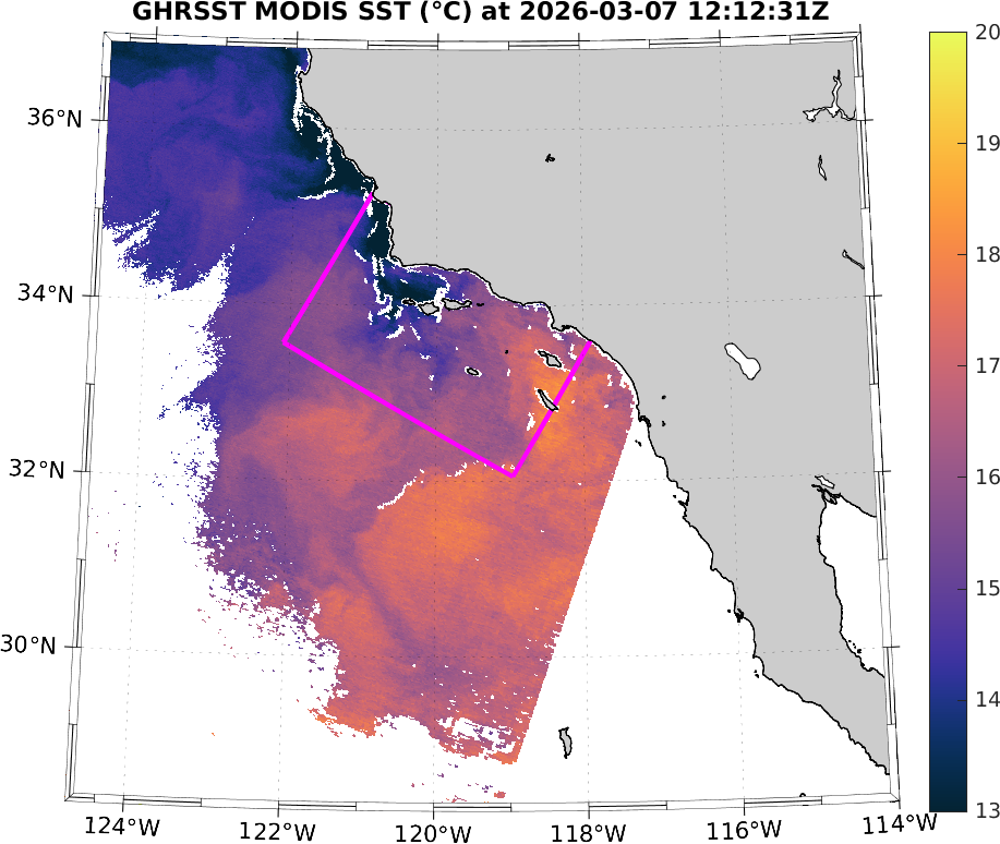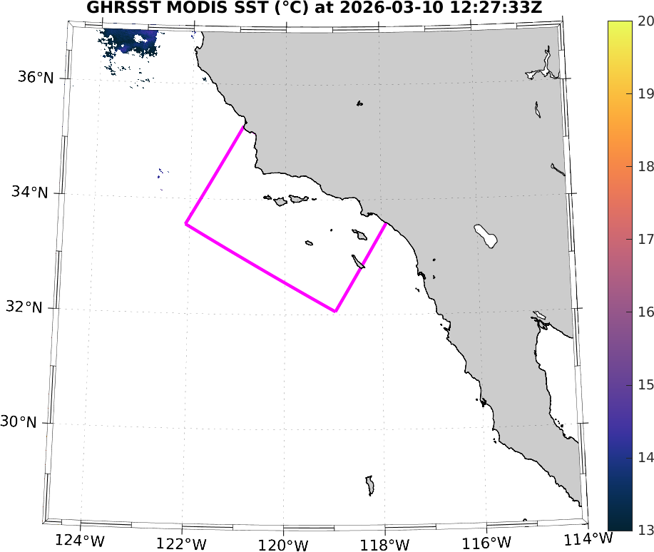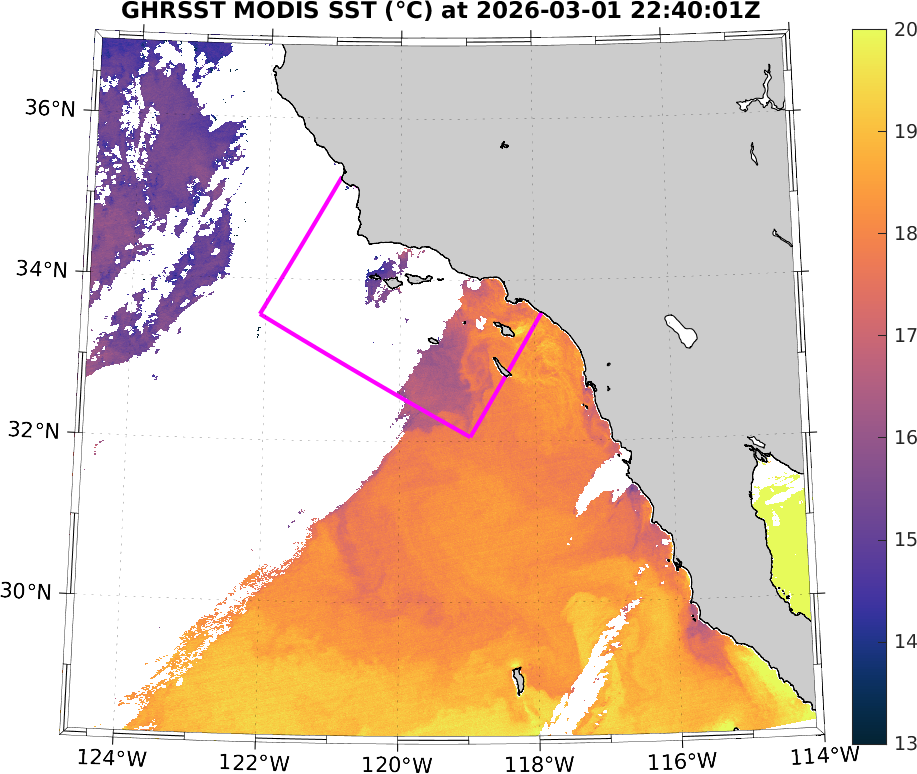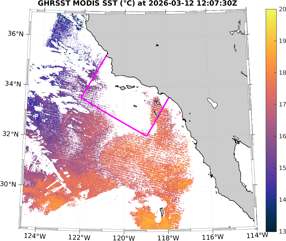 GHRSST MODIS Near-Real-Time SST Imagery, Southern California–Baja California domain