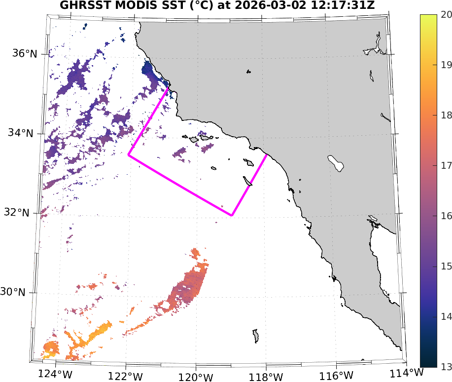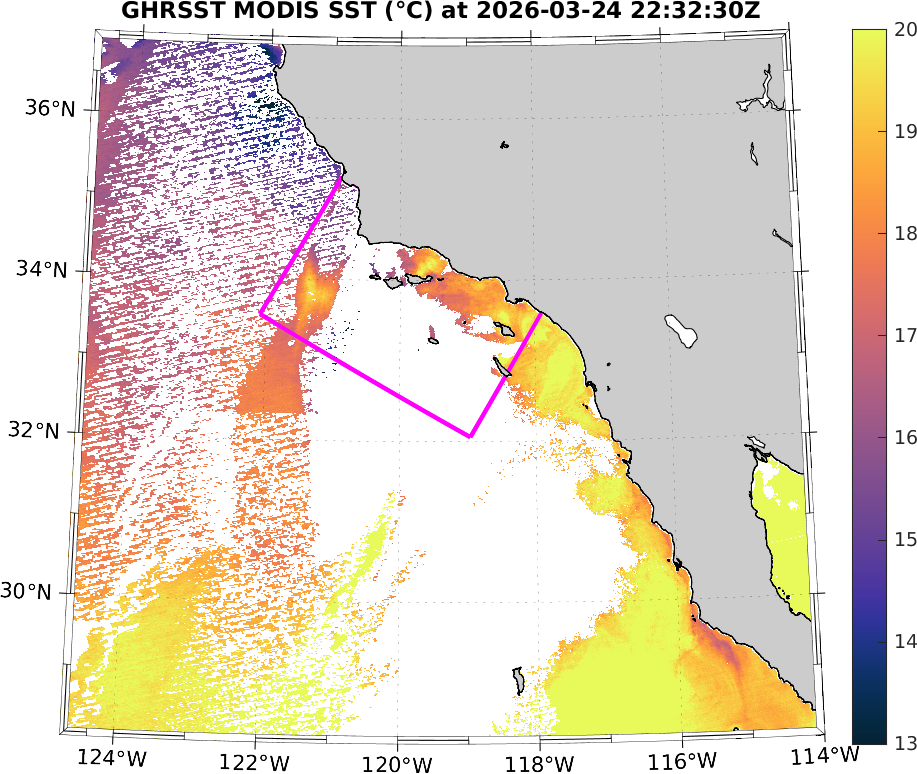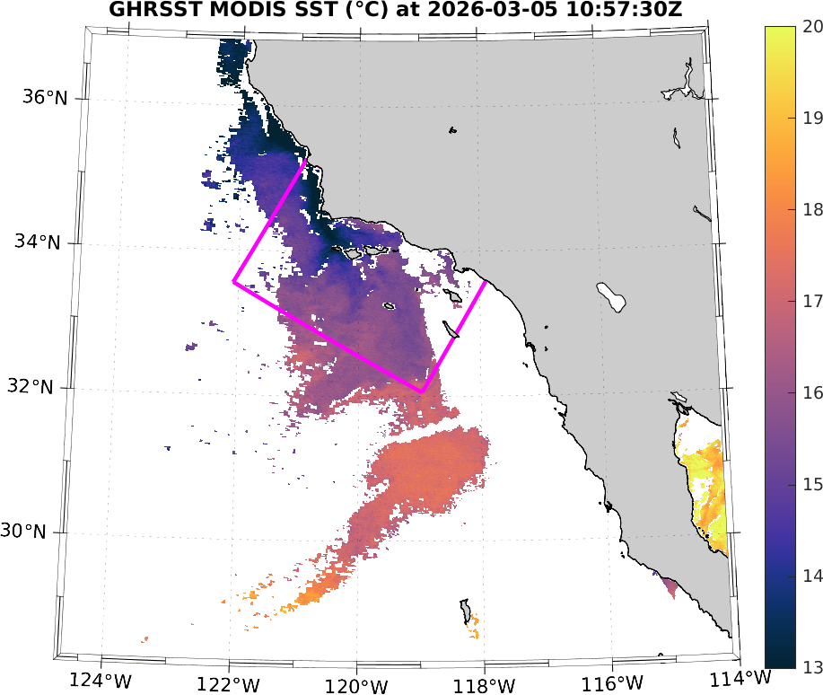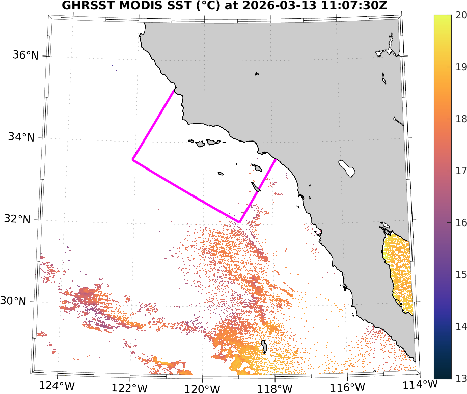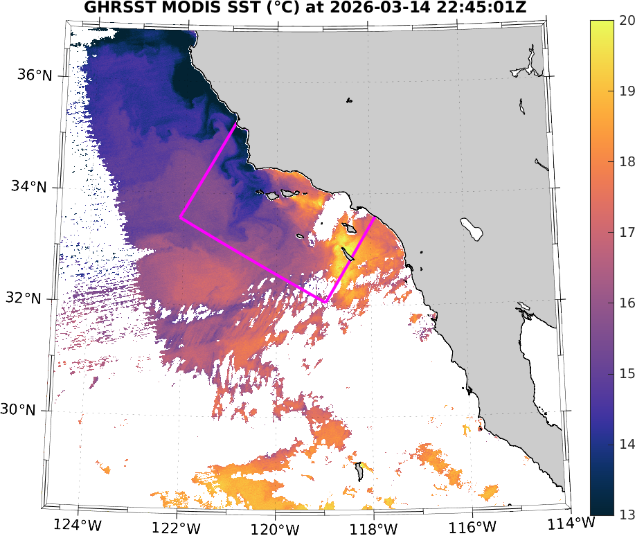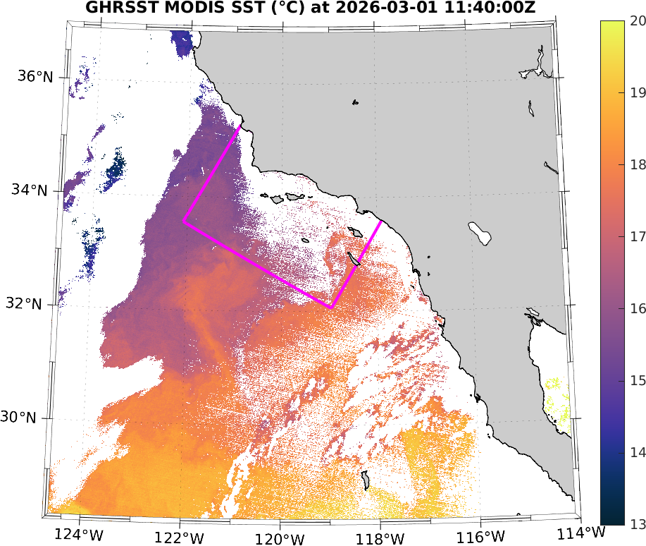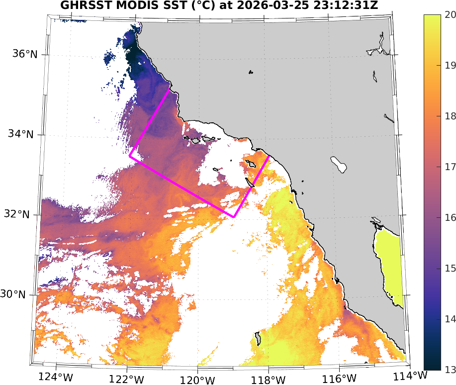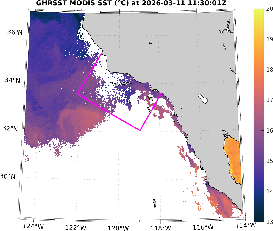 GHRSST MODIS Near-Real-Time SST Imagery, Southern California–Baja California domain