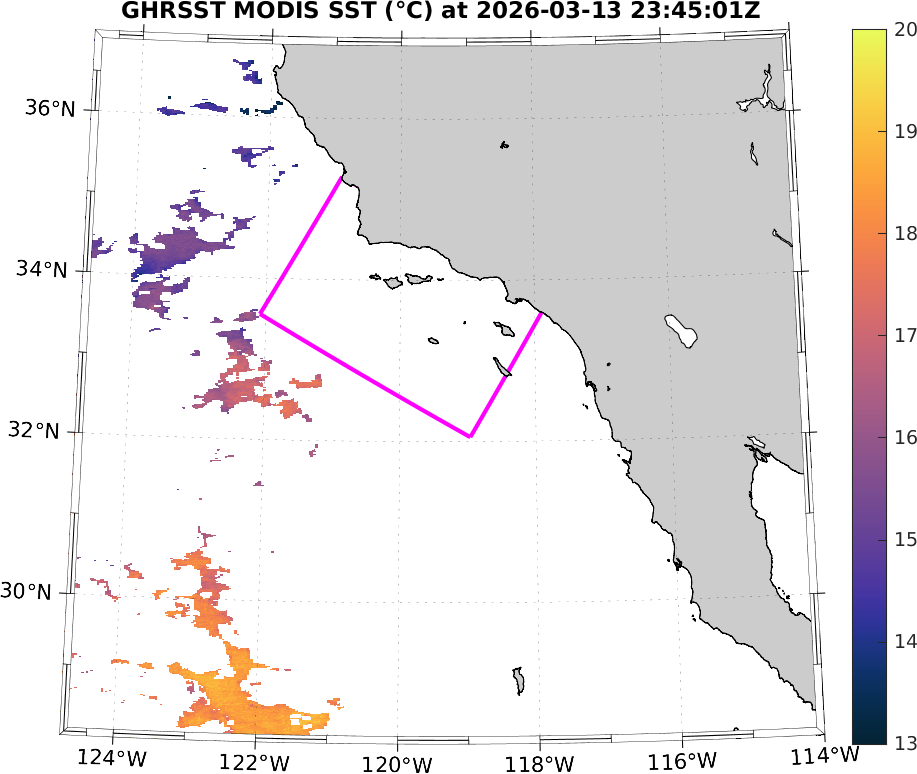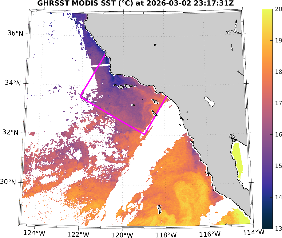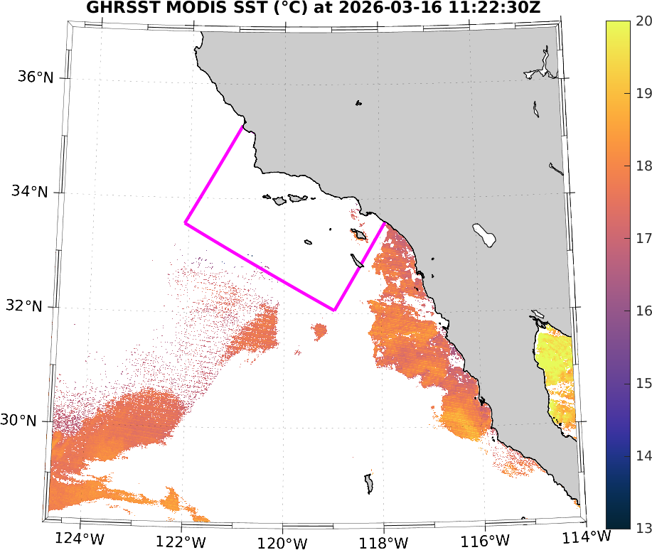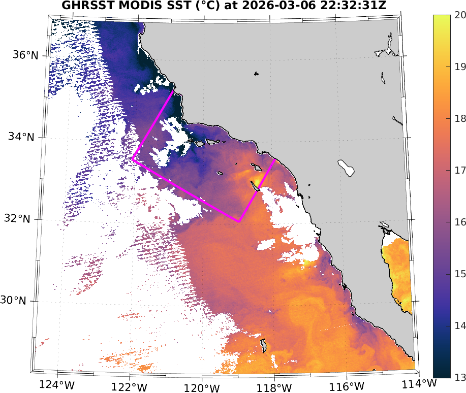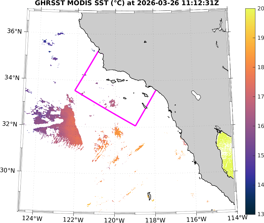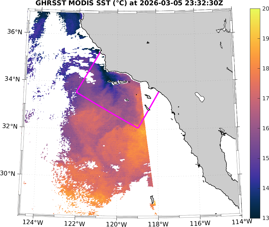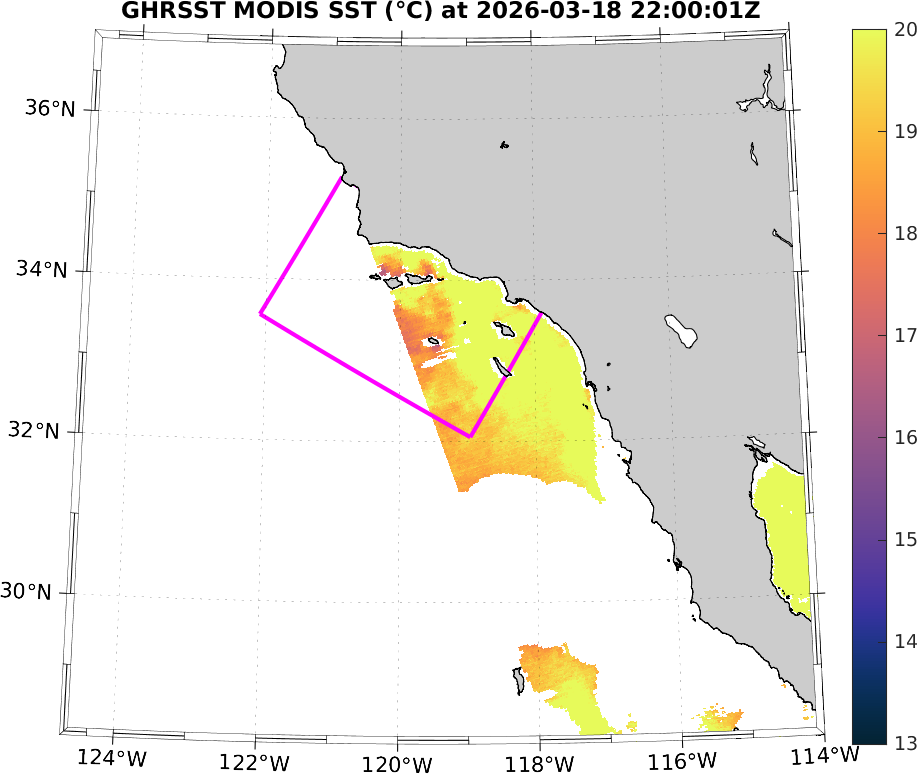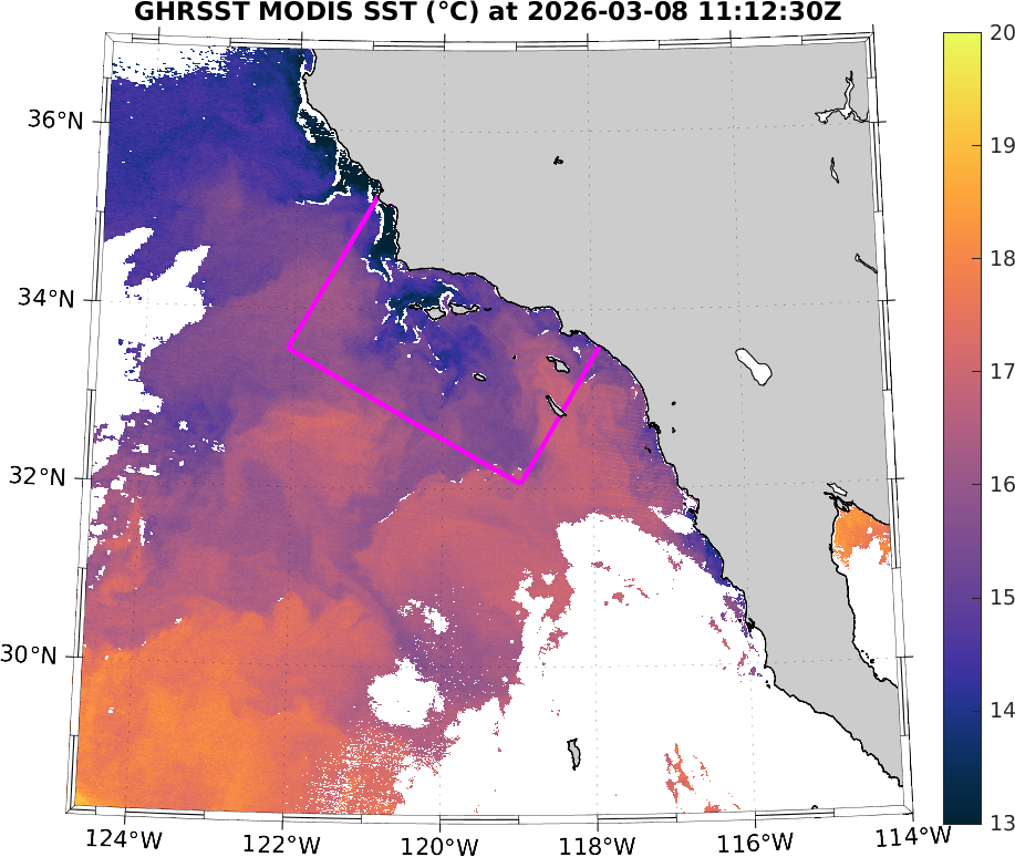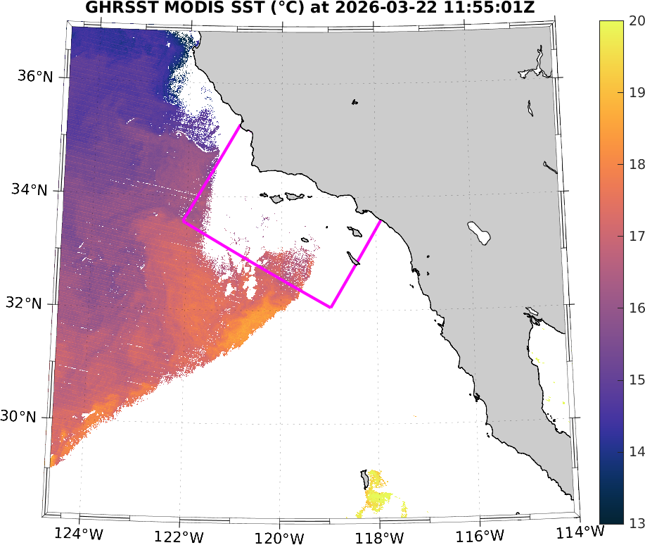 GHRSST MODIS Near-Real-Time SST Imagery, Southern California–Baja California domain
