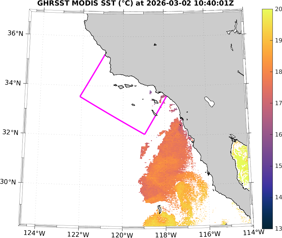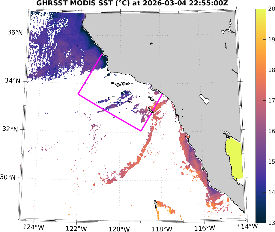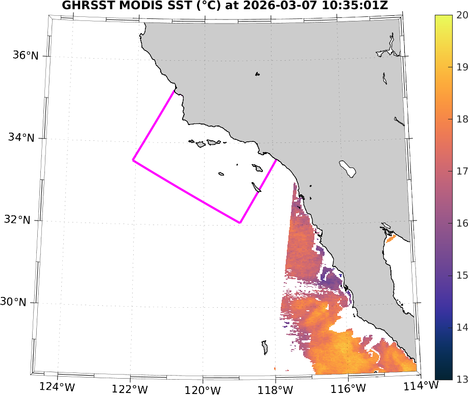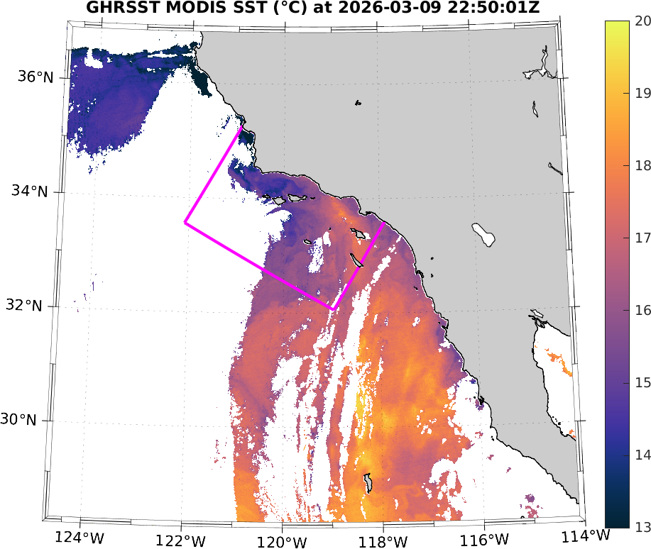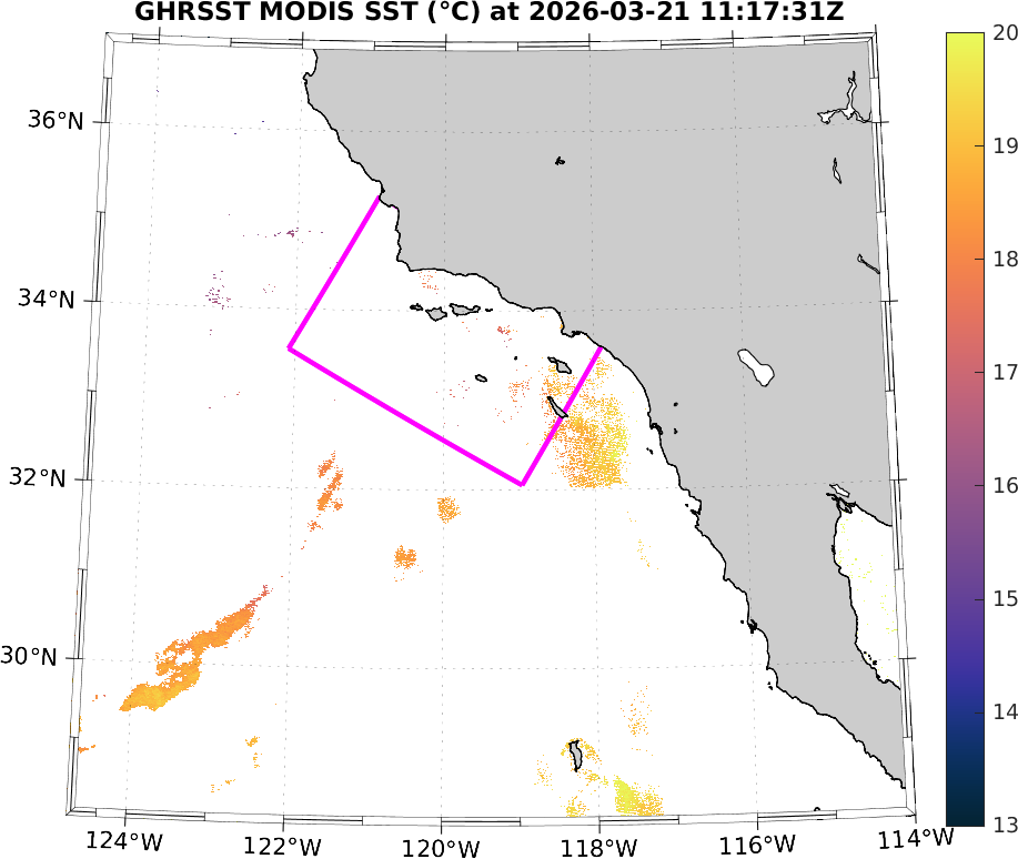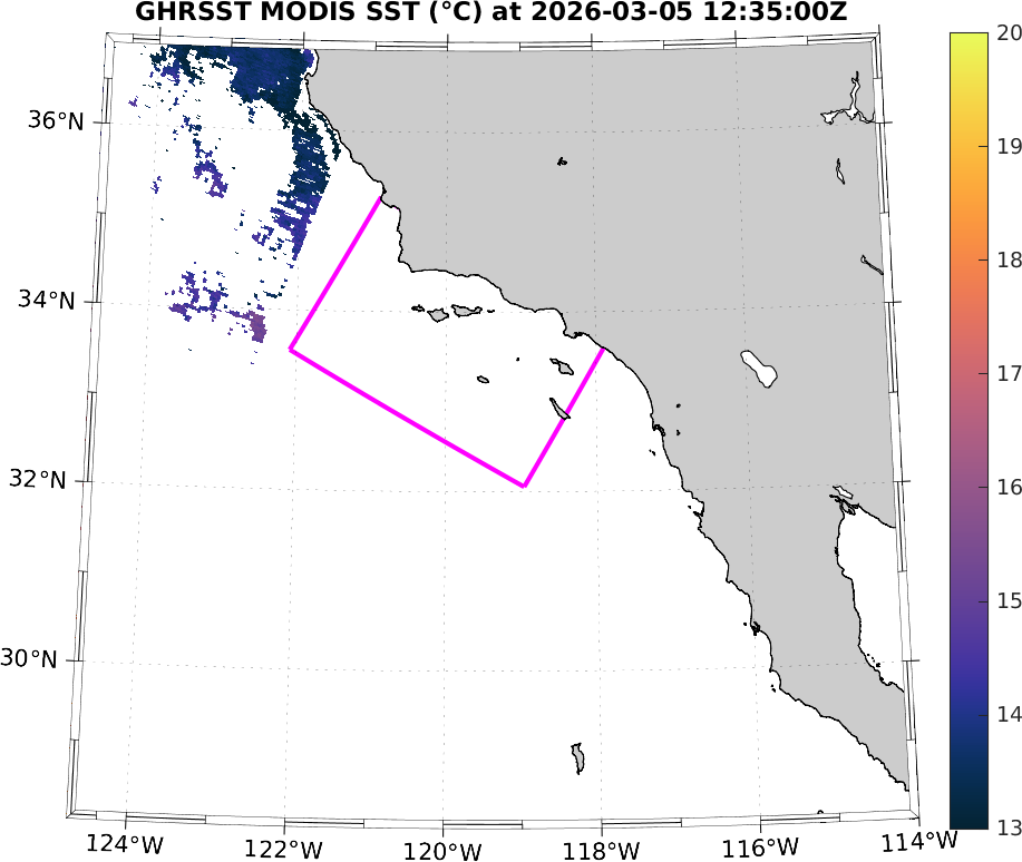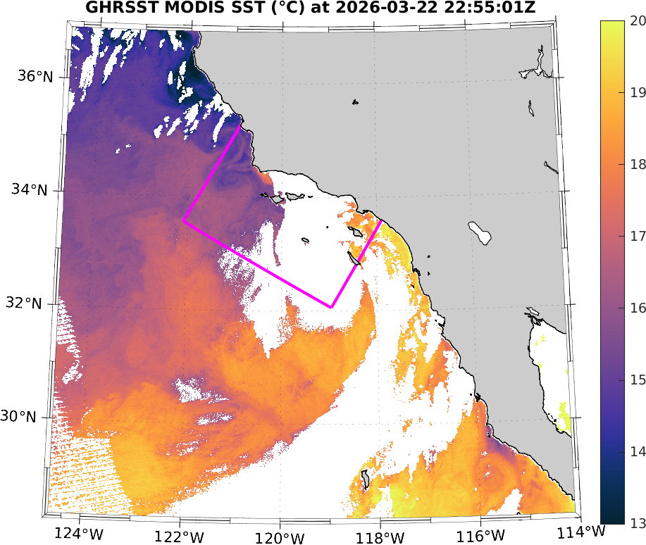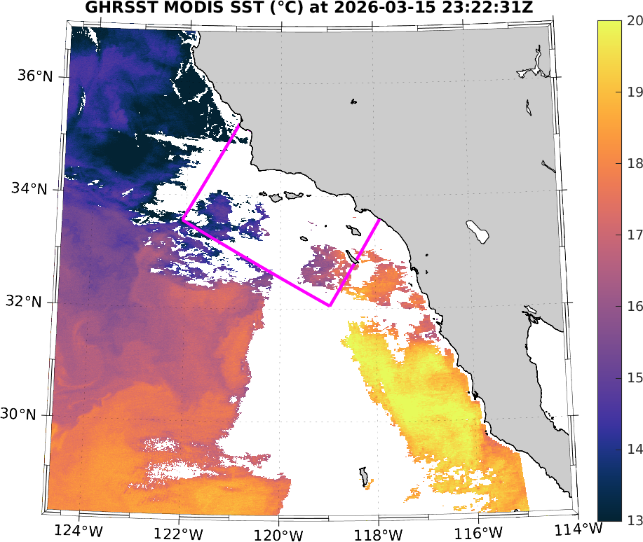 GHRSST MODIS Near-Real-Time SST Imagery, Southern California–Baja California domain