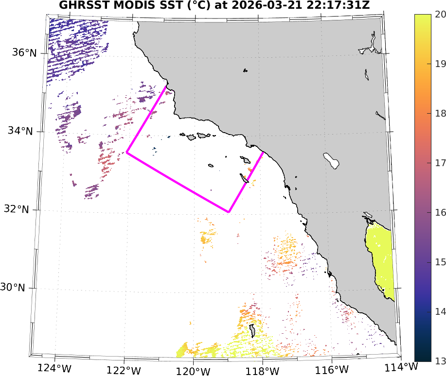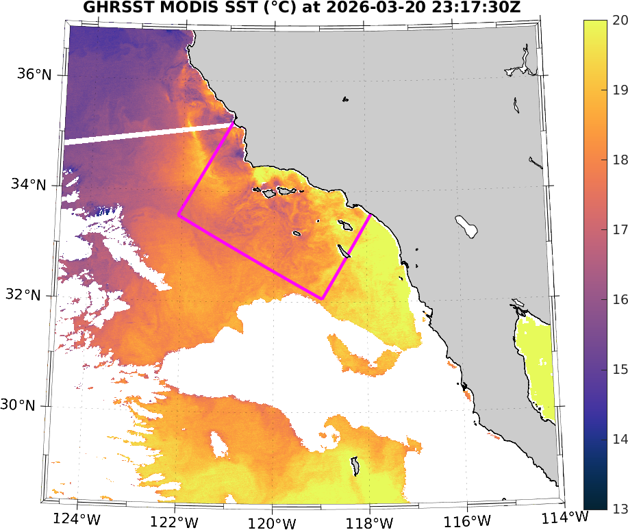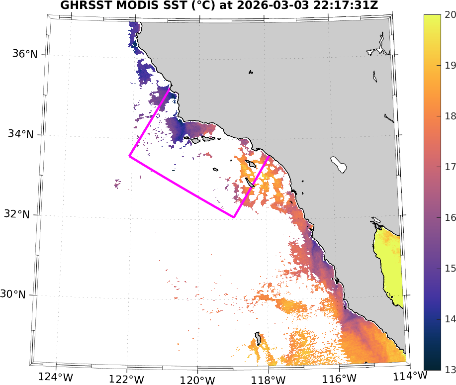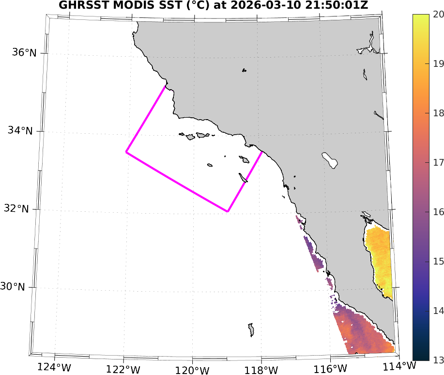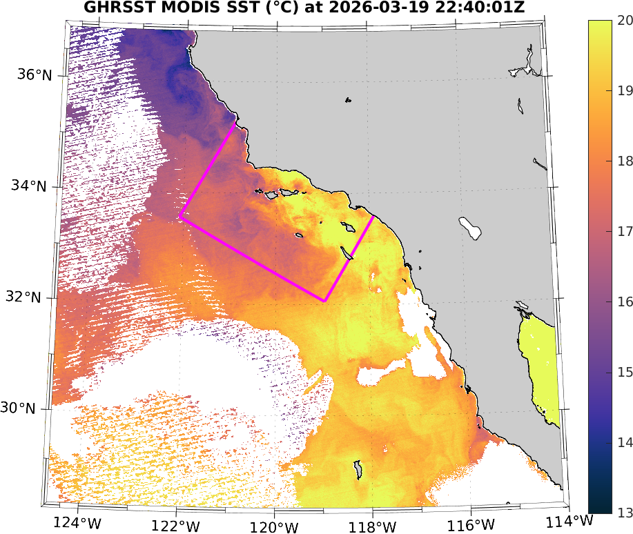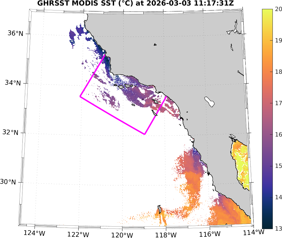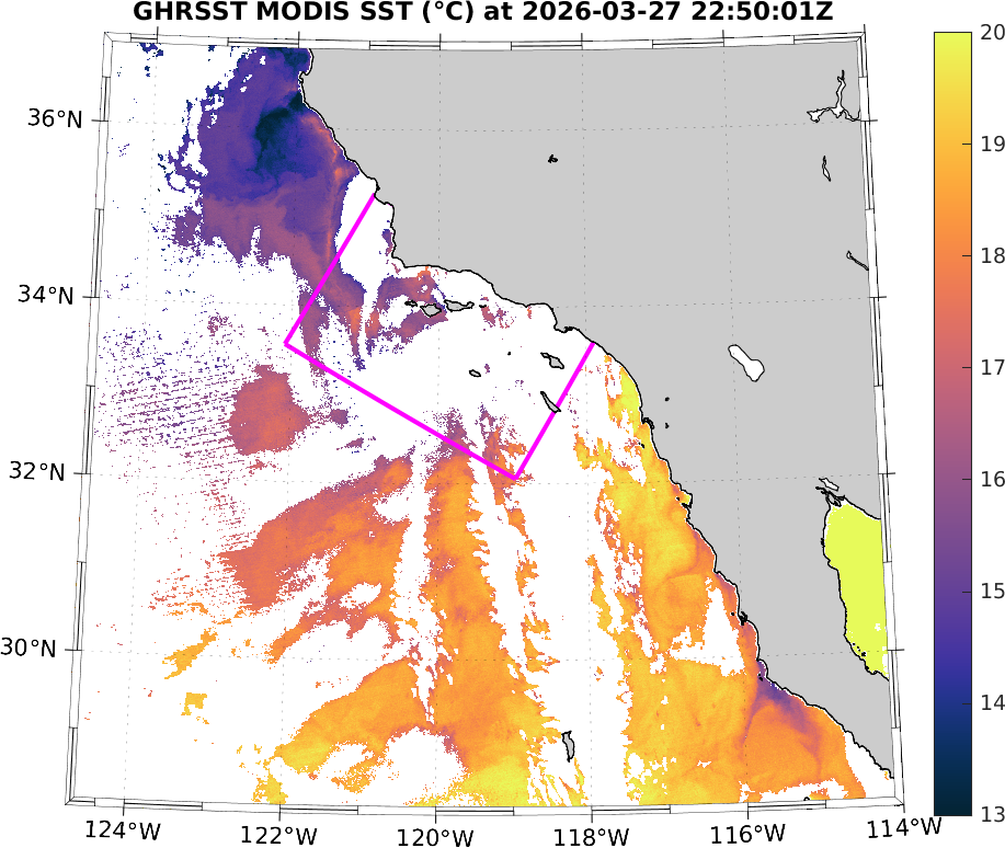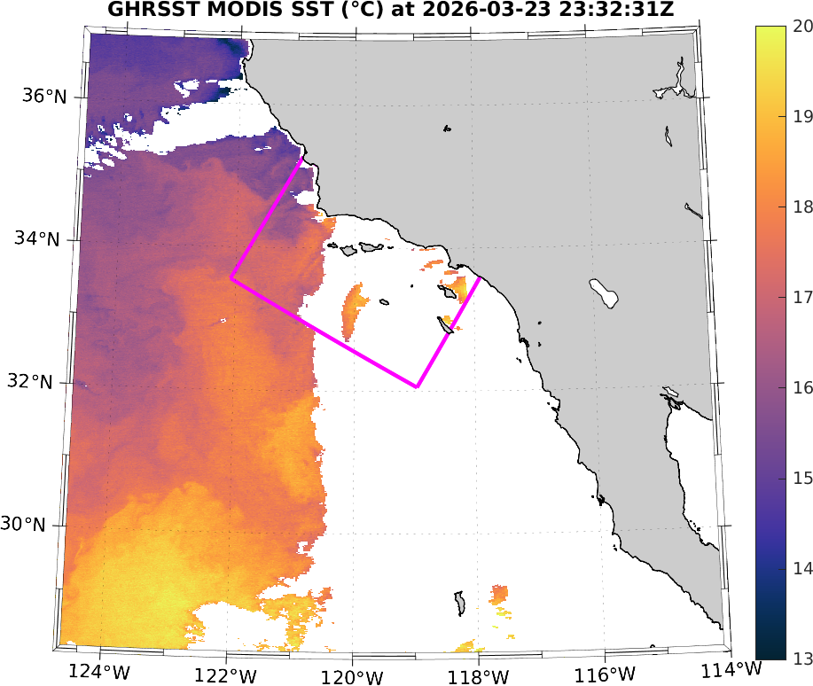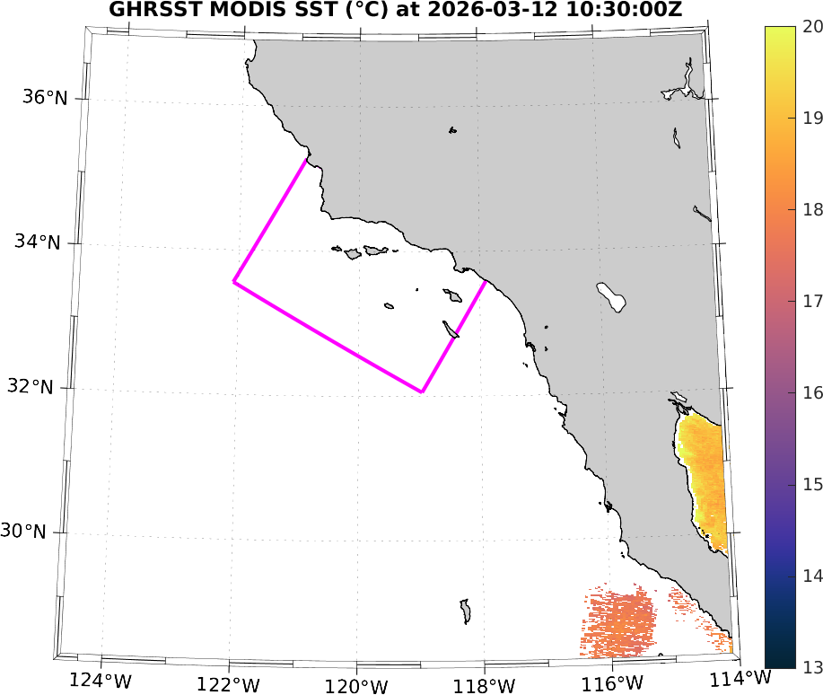 GHRSST MODIS Near-Real-Time SST Imagery, Southern California–Baja California domain